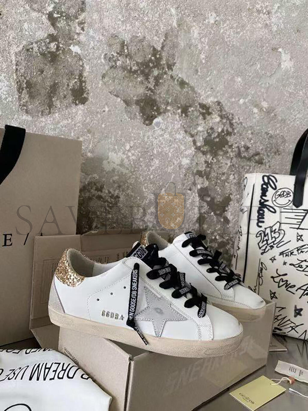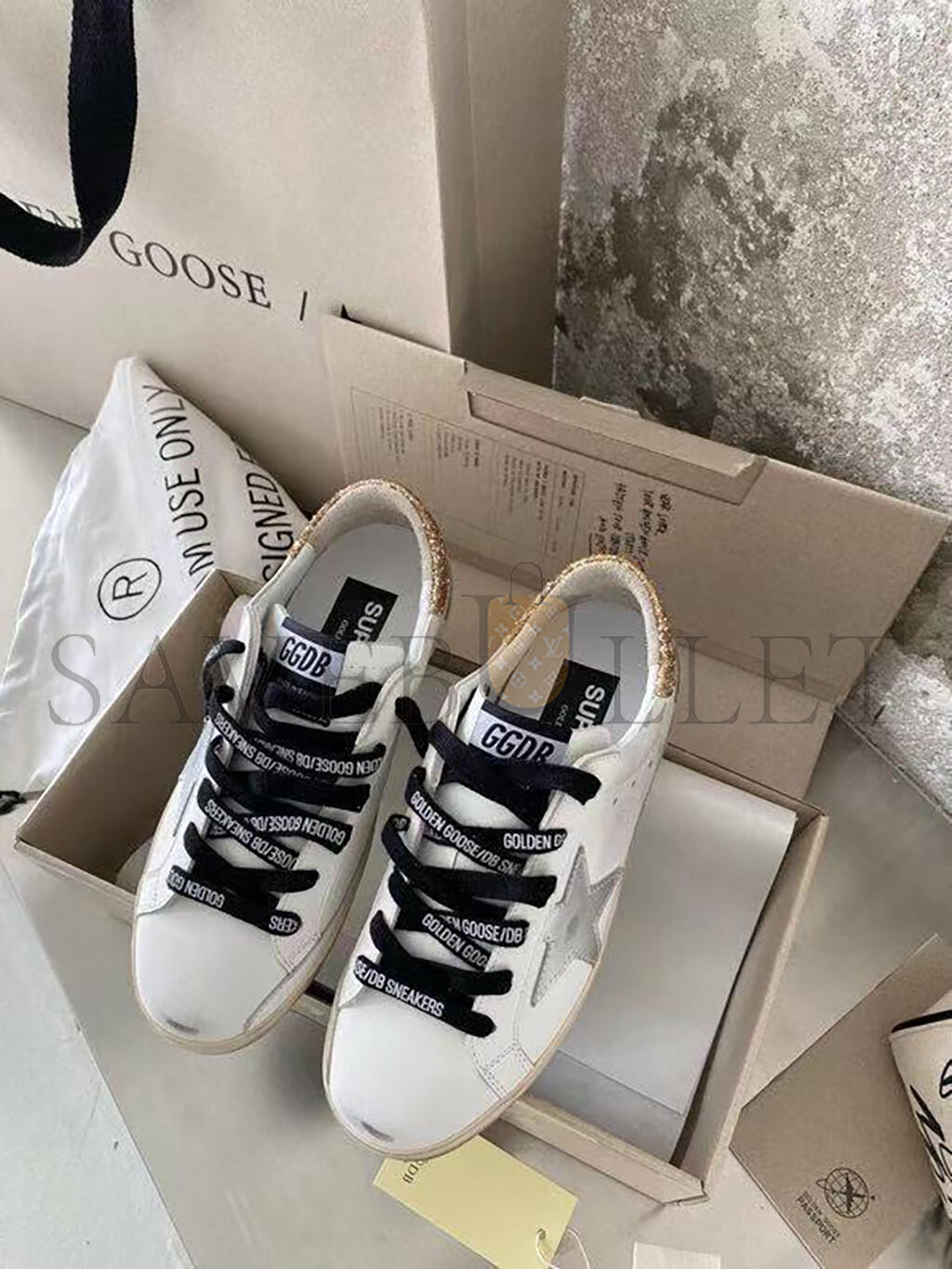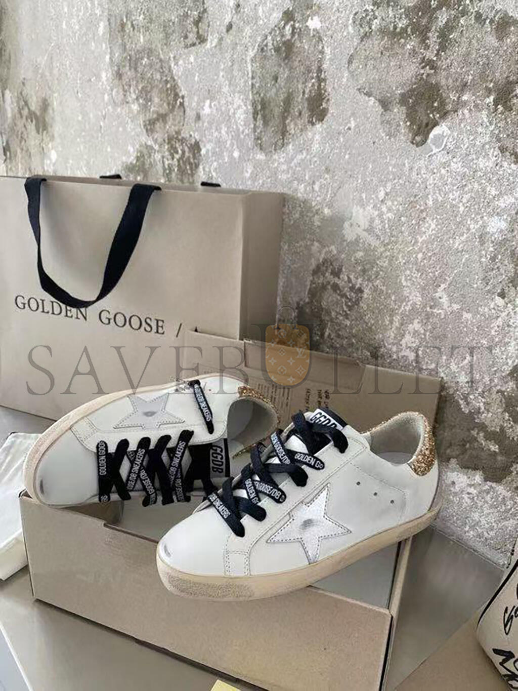 GOLDEN GOOSE WOMEN'S WHITE LEATHER SUPER-STAR WITH GLITTERY HEEL TAB GWF00102