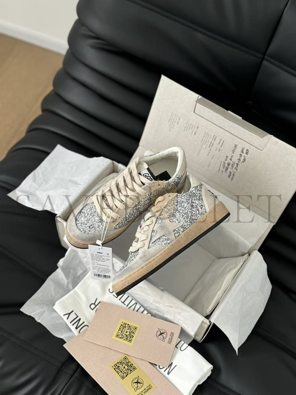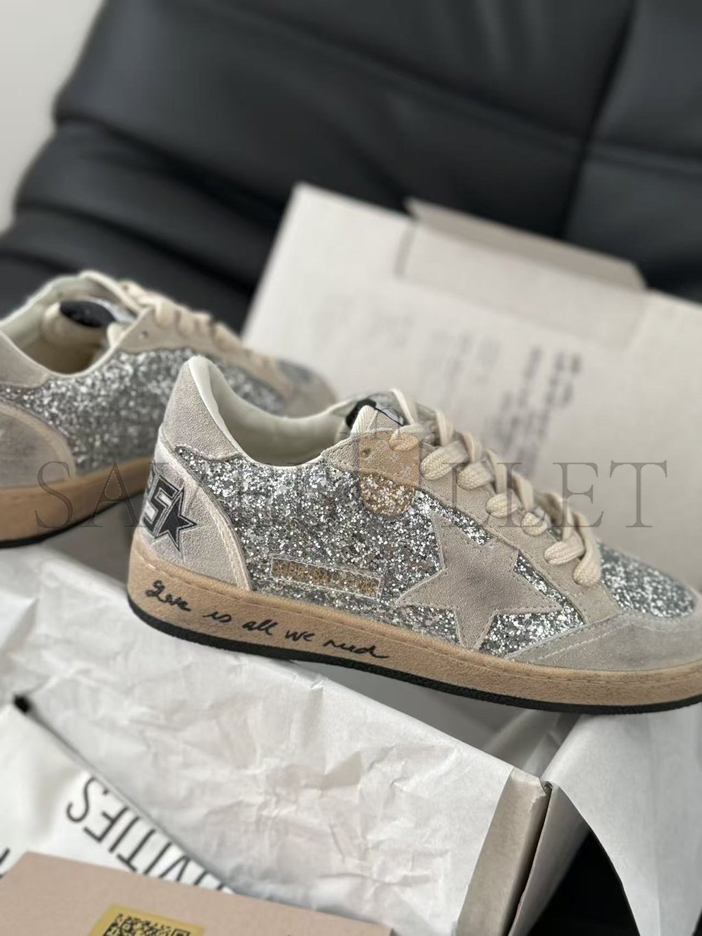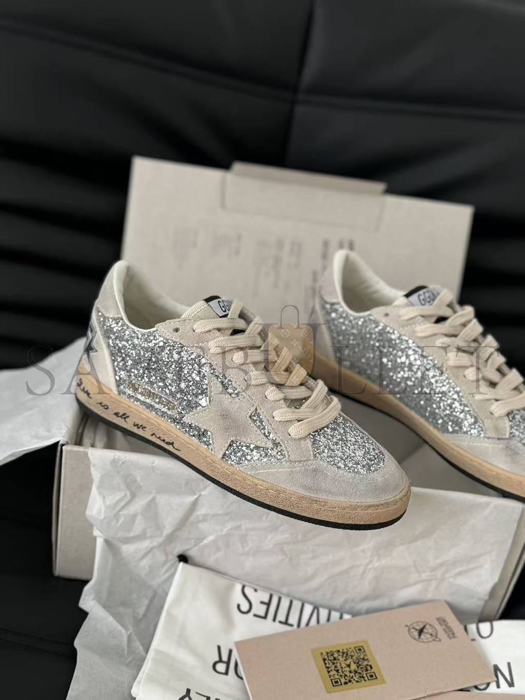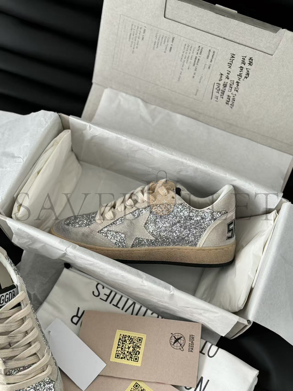 GOLDEN GOOSE WOMEN’S BALL STAR IN SILVER GLITTER WITH ICE-GRAY SUEDE INSERTS GWF00117