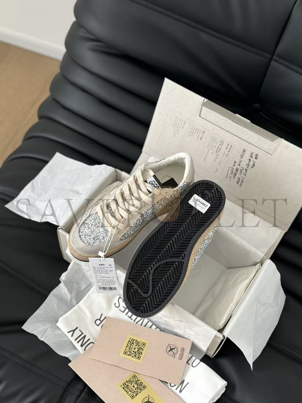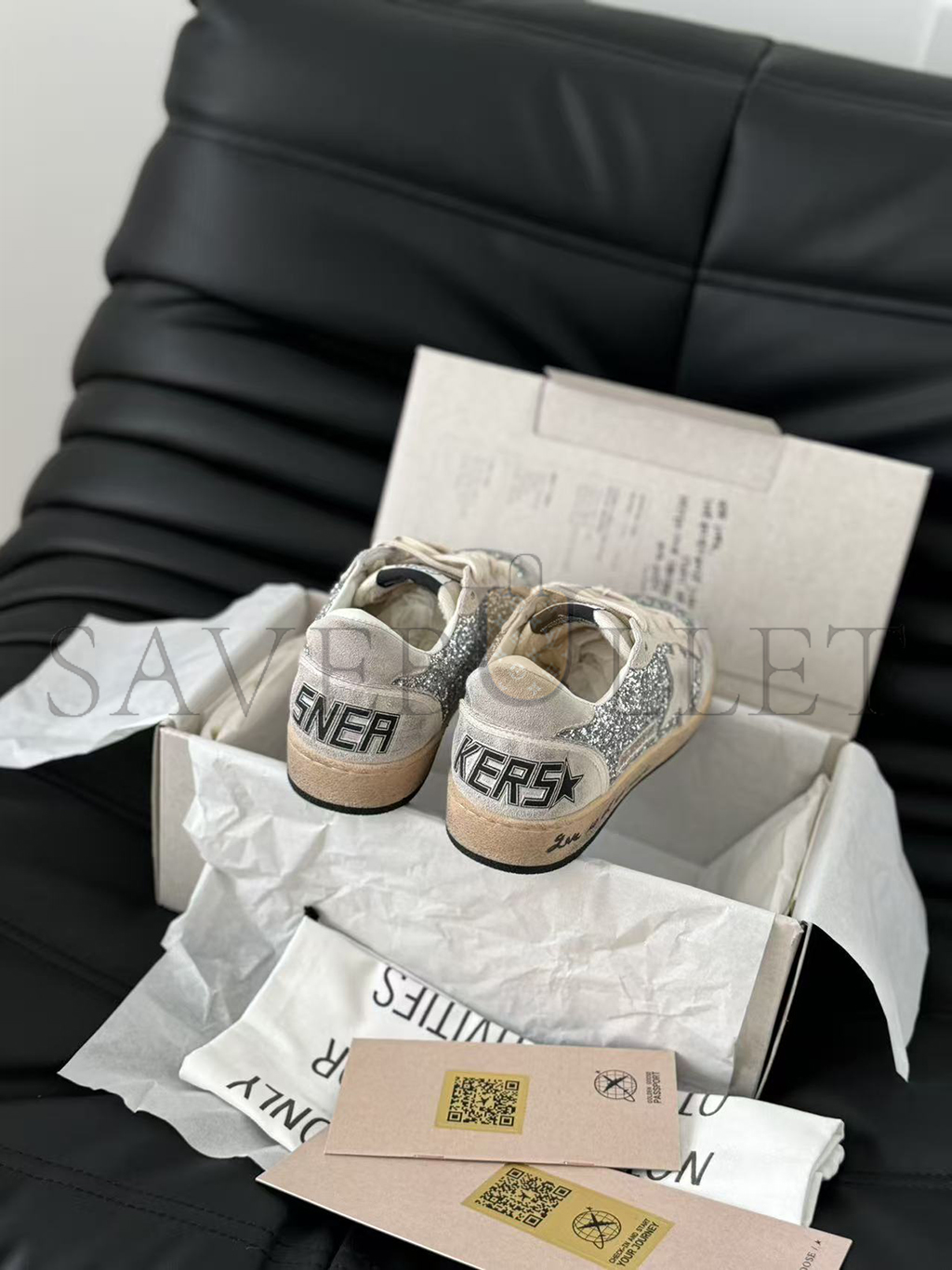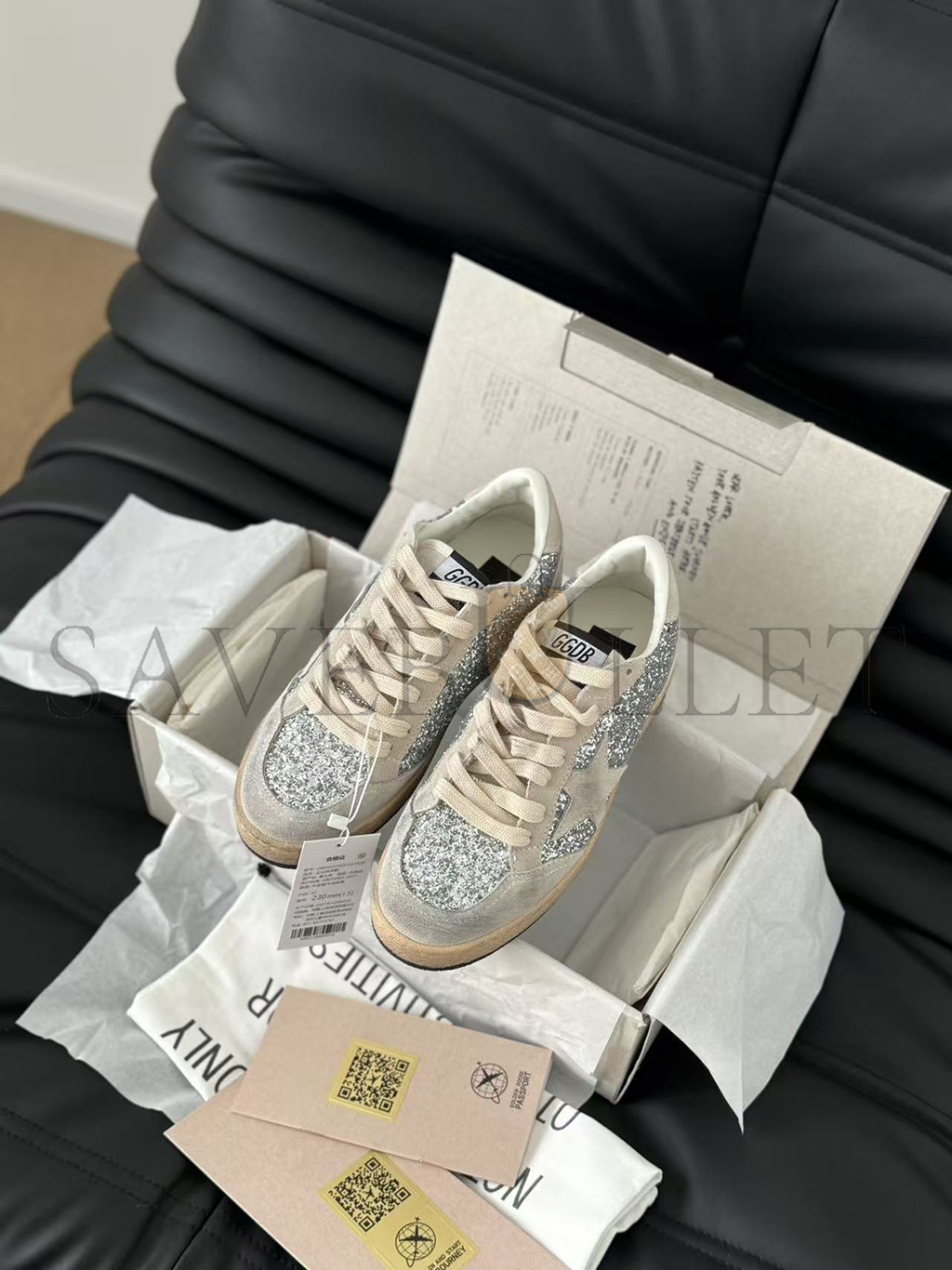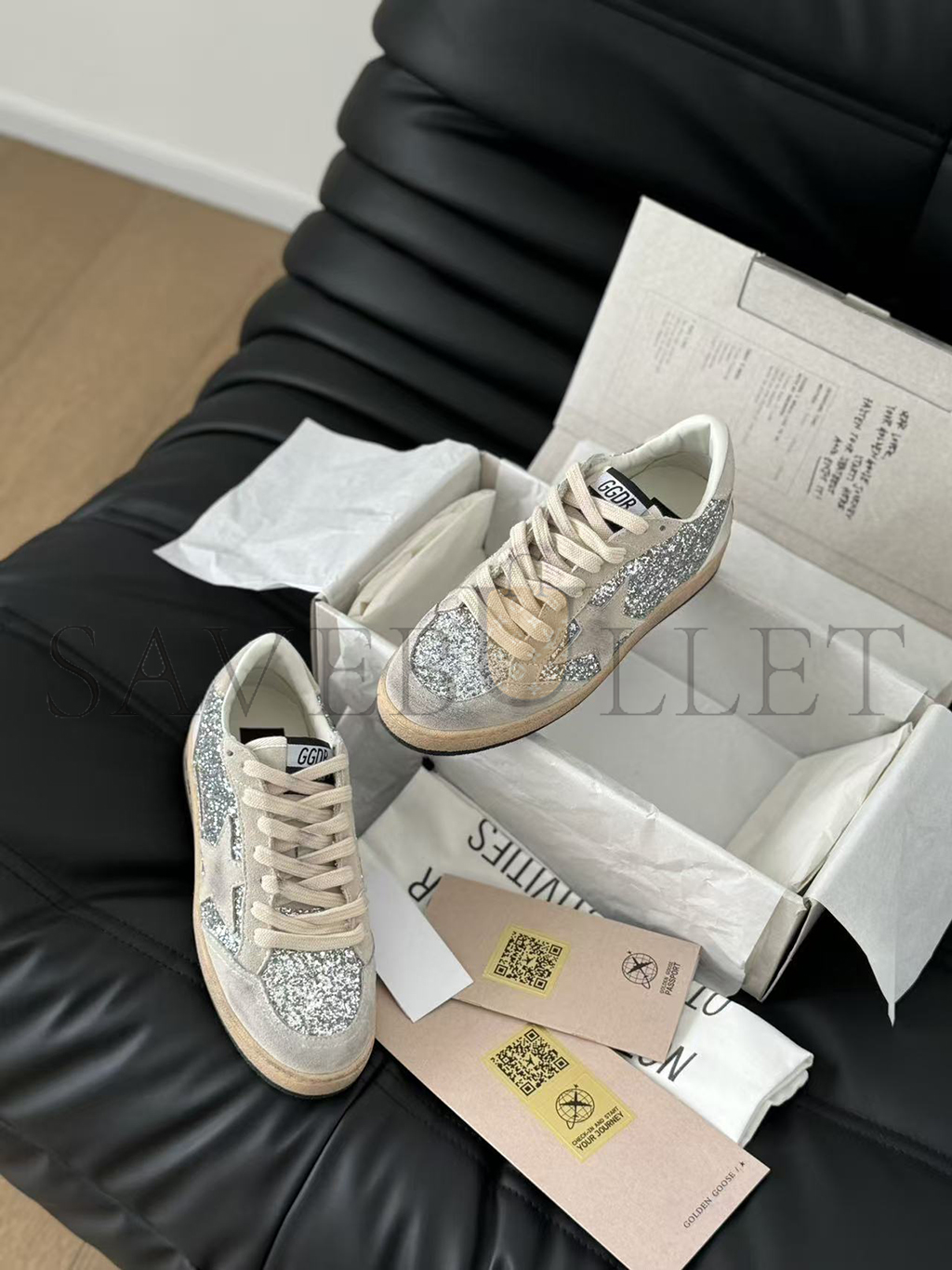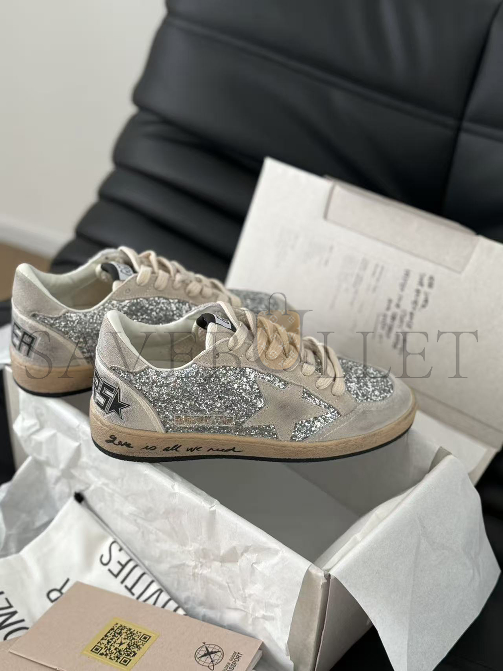 GOLDEN GOOSE WOMEN’S BALL STAR IN SILVER GLITTER WITH ICE-GRAY SUEDE INSERTS GWF00117