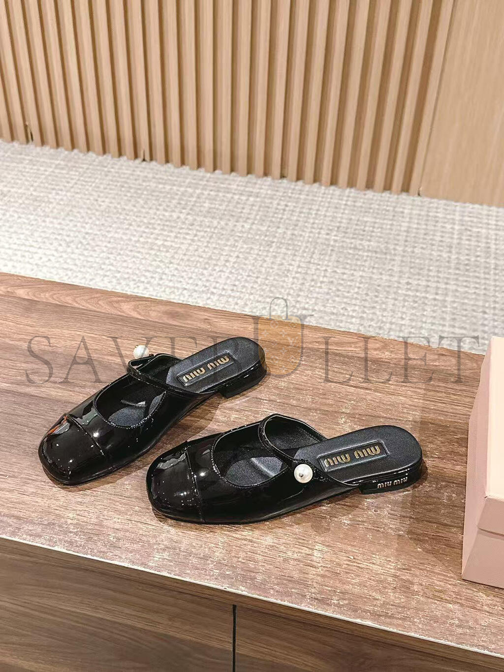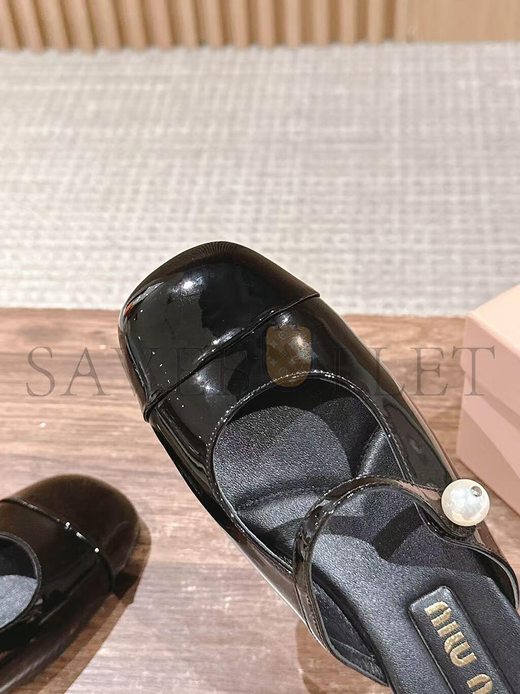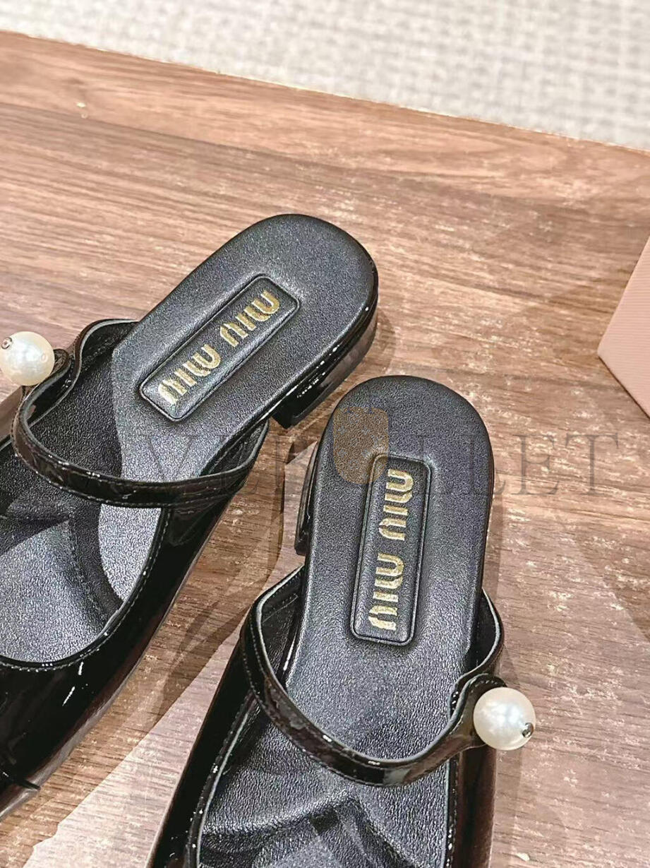 MIU MIU MARY JANE PATENT LEATHER FLAT MULES