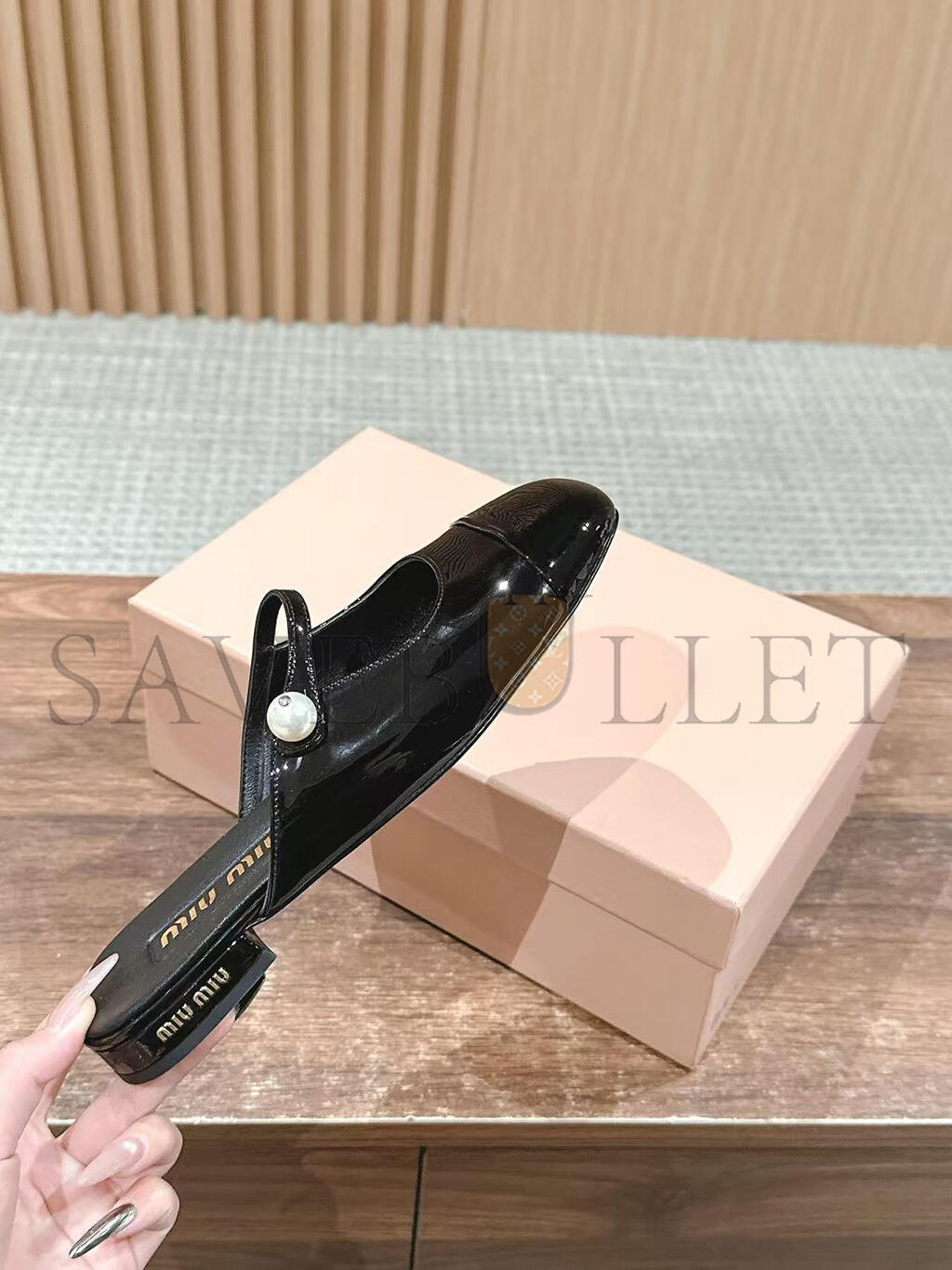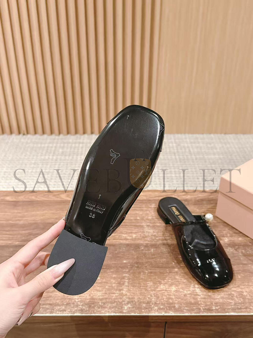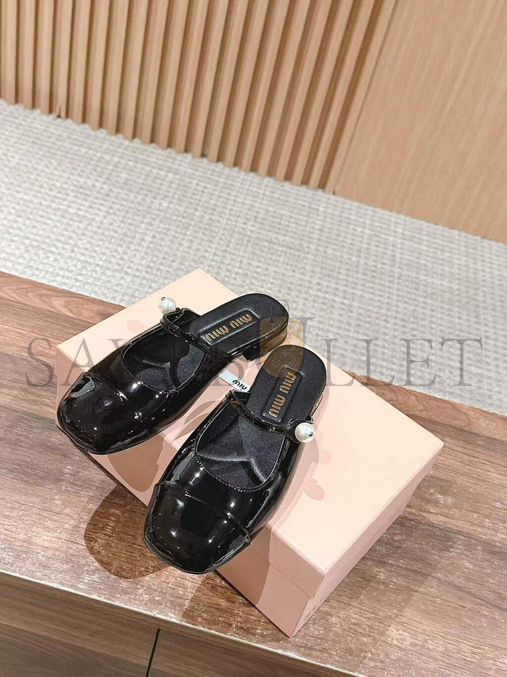 MIU MIU MARY JANE PATENT LEATHER FLAT MULES