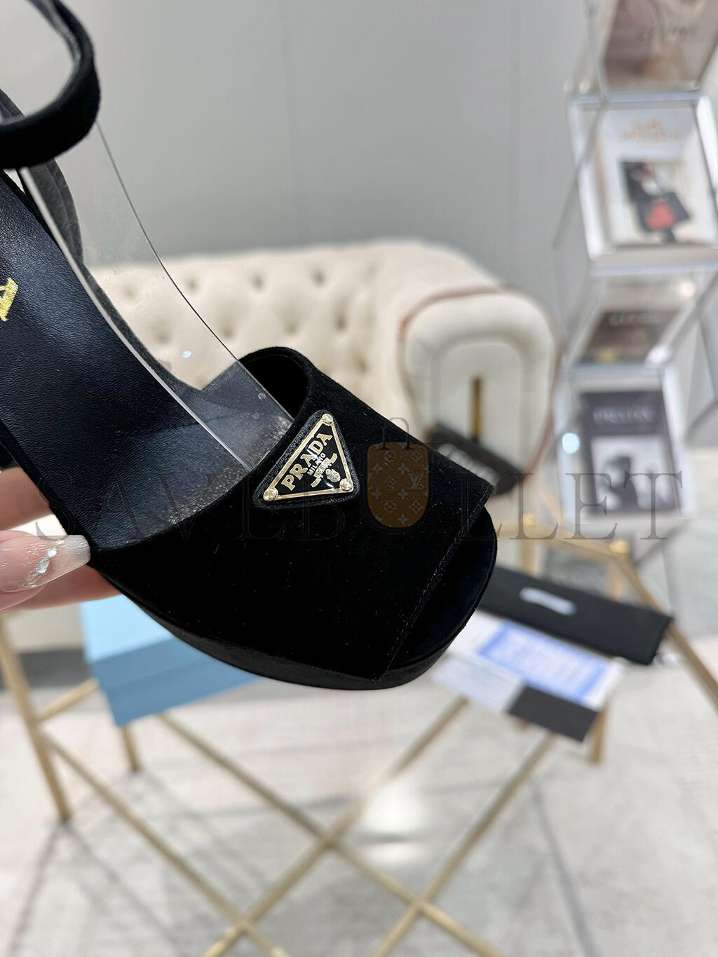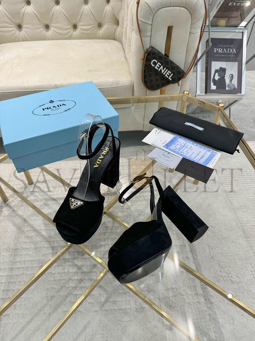 PRADA SUEDE PLATFORM SANDALS 1XP48B