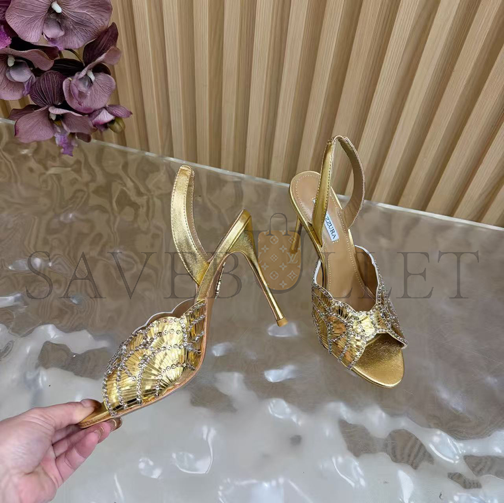 AQUAZZURACE SOIR 105 EMBELLISHED LEATHER SANDALS