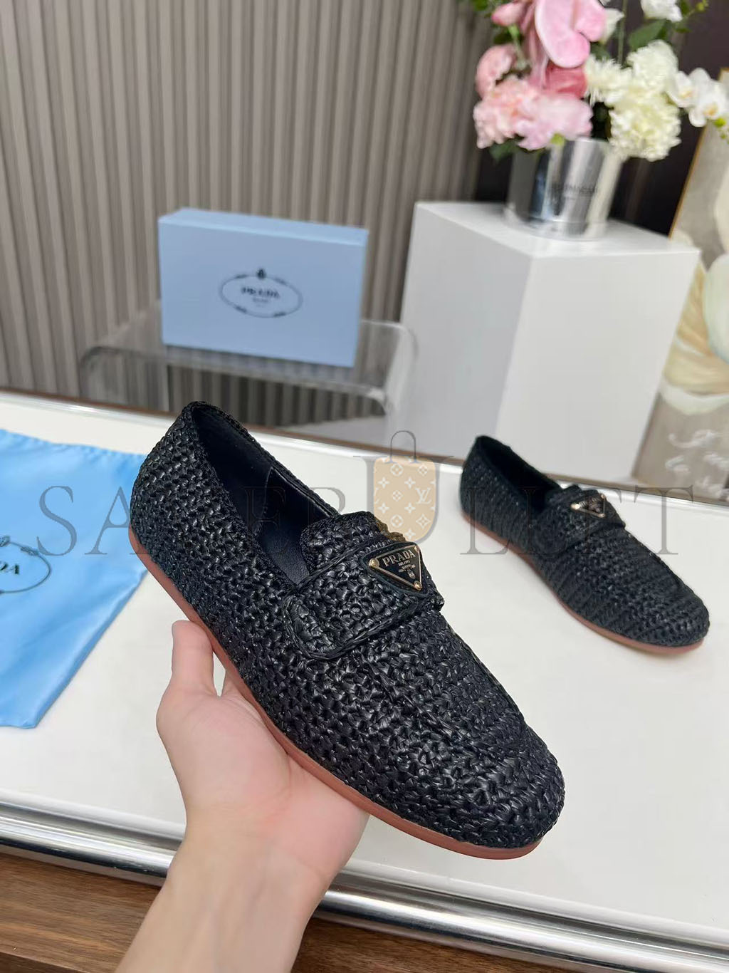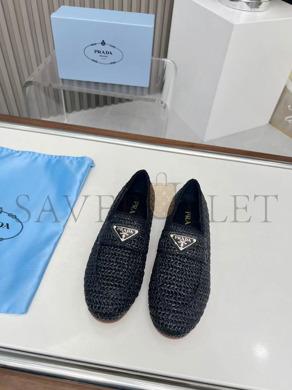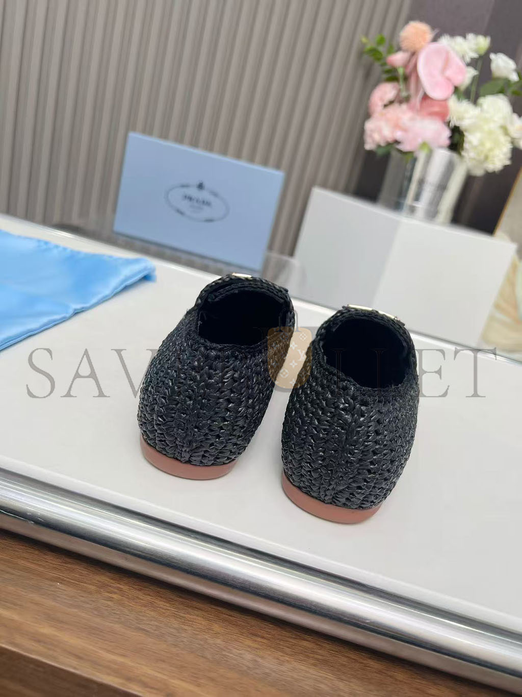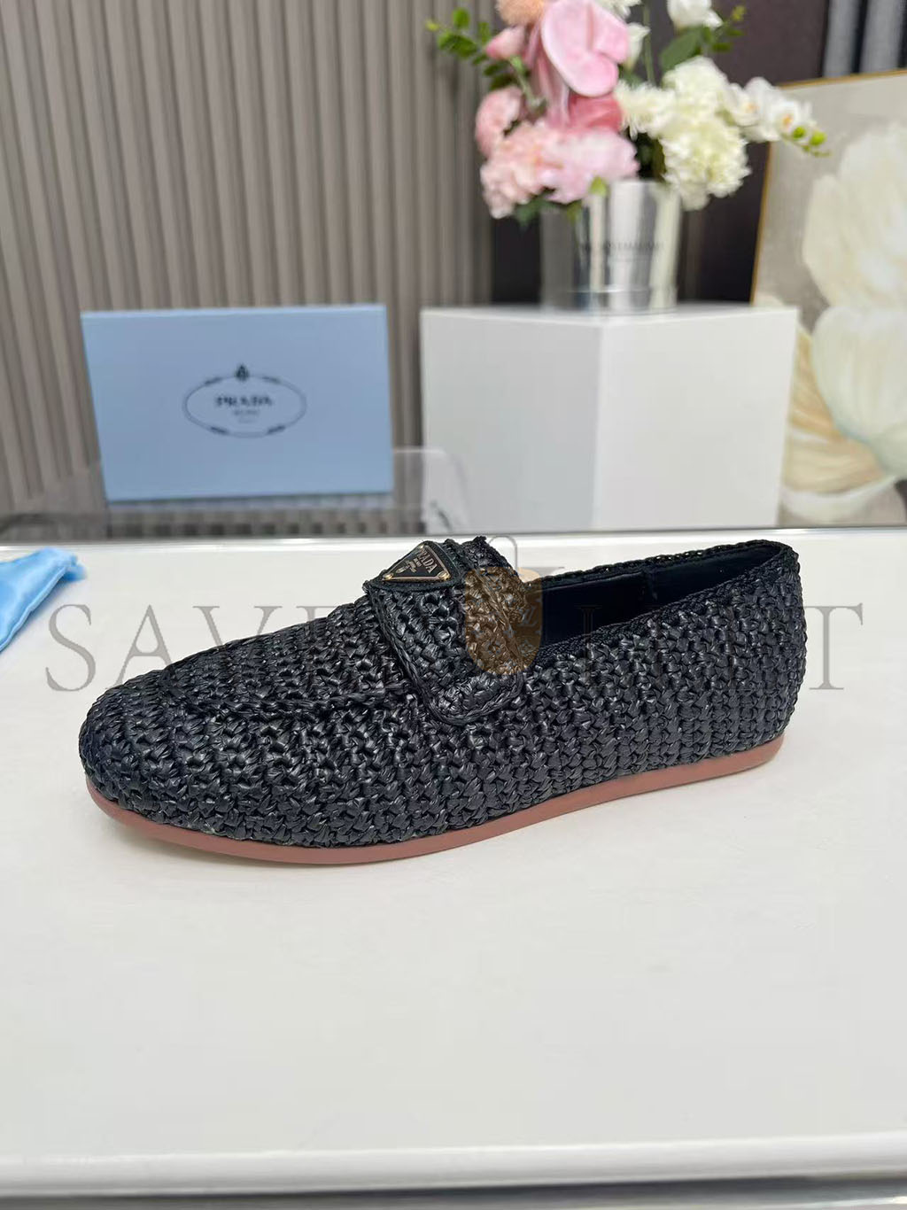 PRADA BLACK RAFFIA LOAFER WITH LOGO TRIANGLE