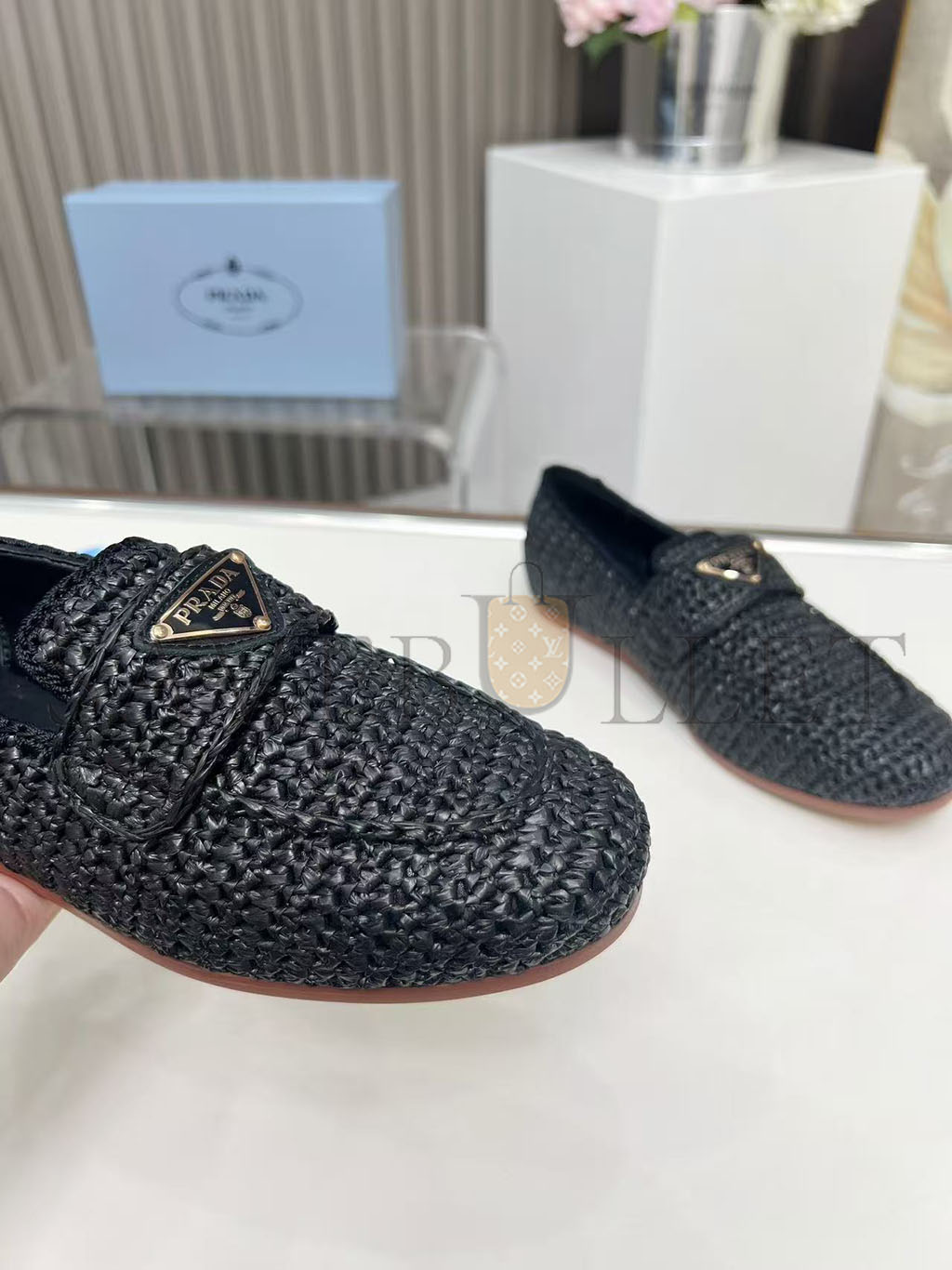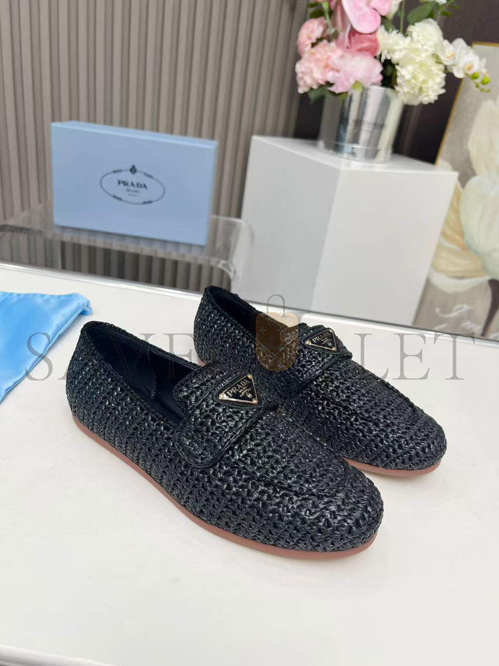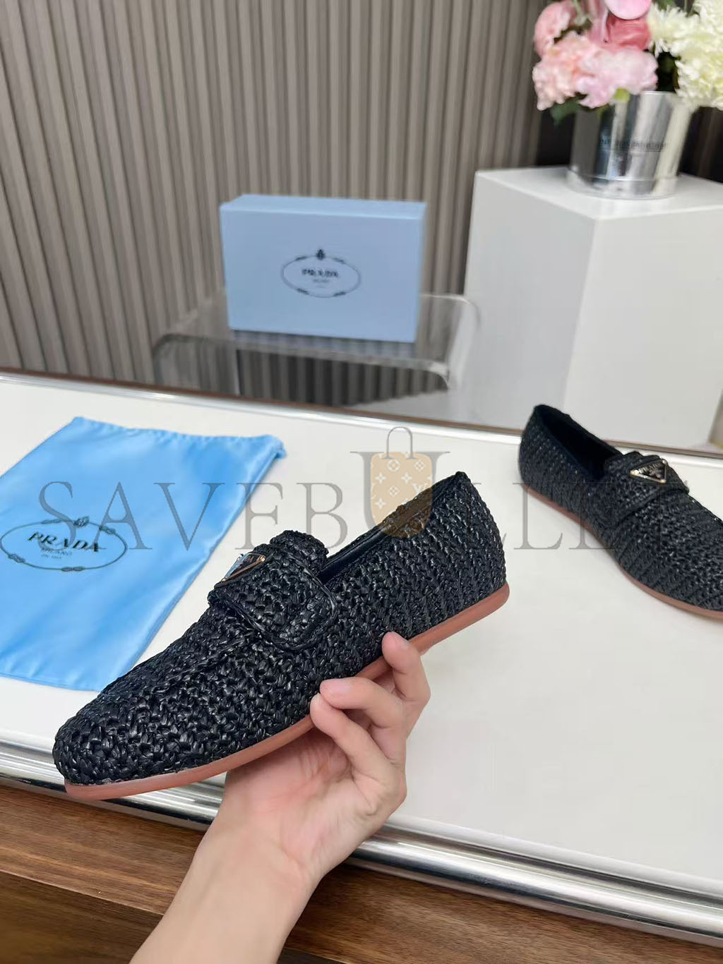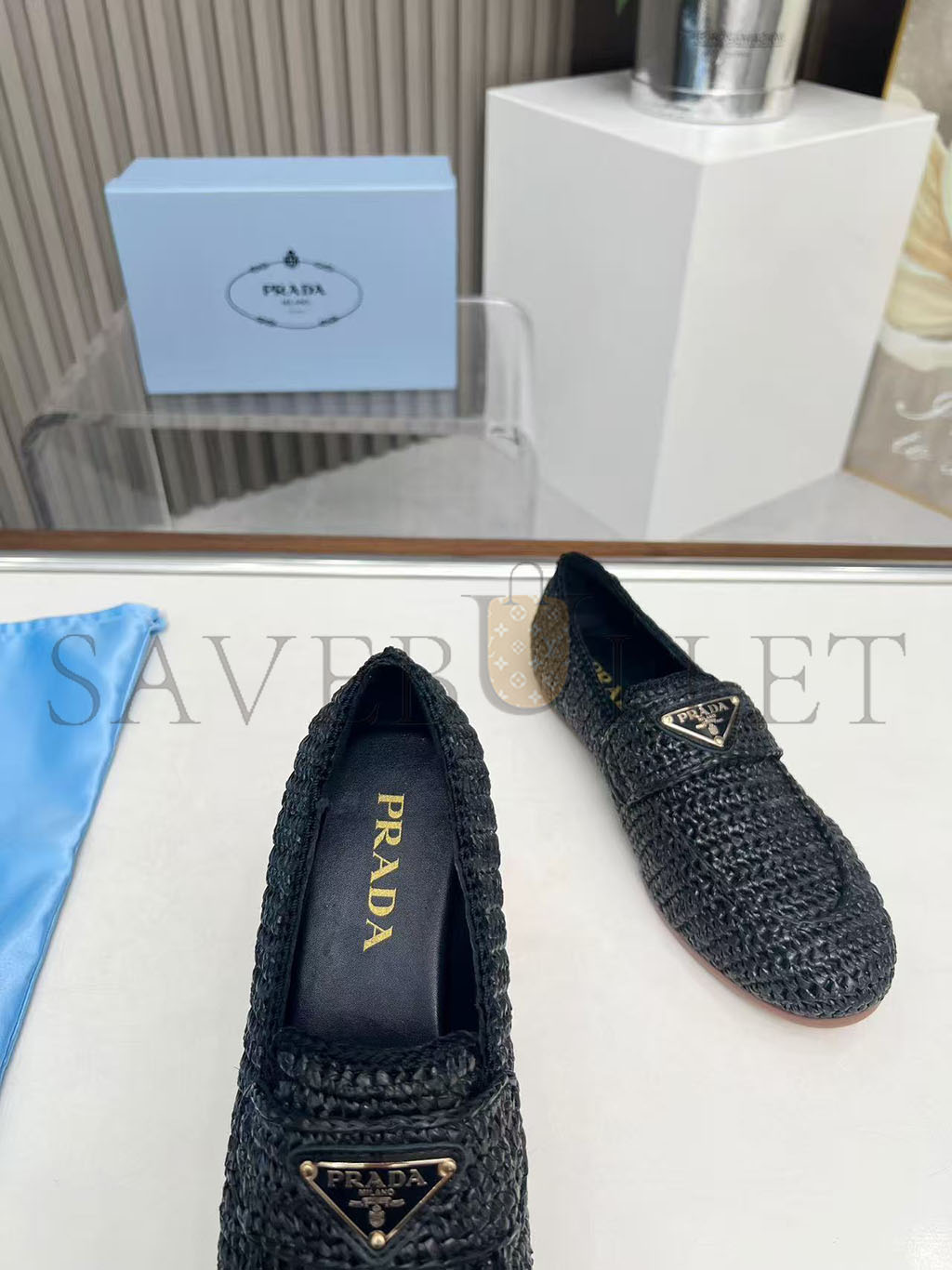 PRADA BLACK RAFFIA LOAFER WITH LOGO TRIANGLE