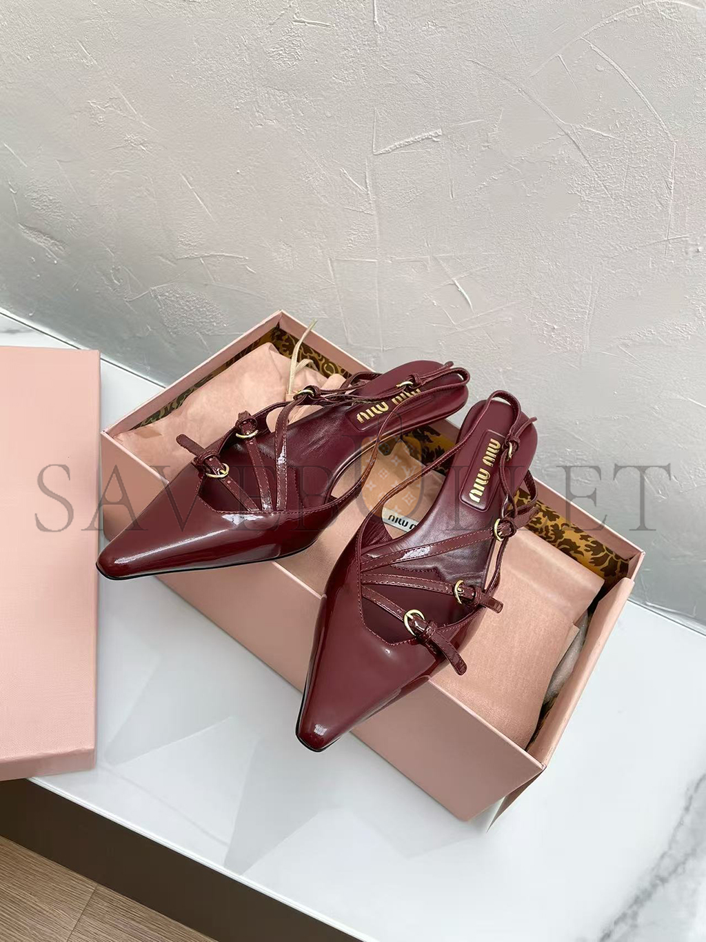 MIU MIU PATENT LEATHER SLINGBACKS WITH BUCKLES 5I013E