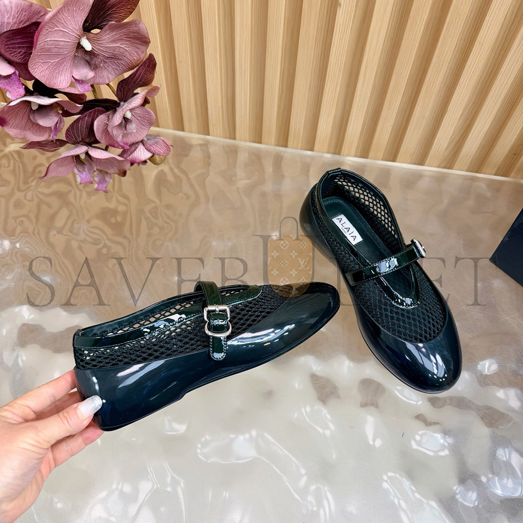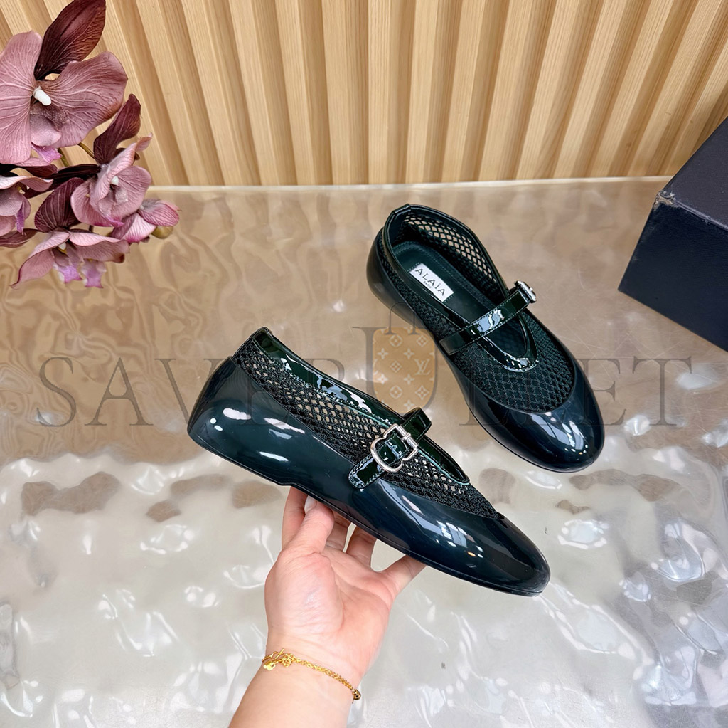 ALAIA LEATHER FLAT CASUAL SHOES BLACK AA3A029TK007
