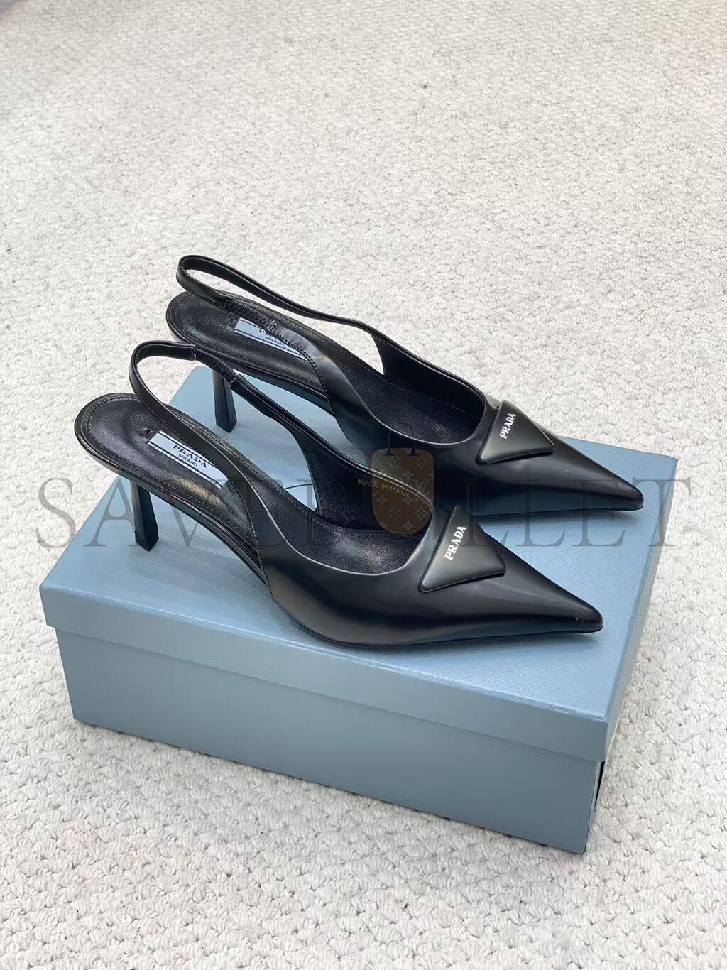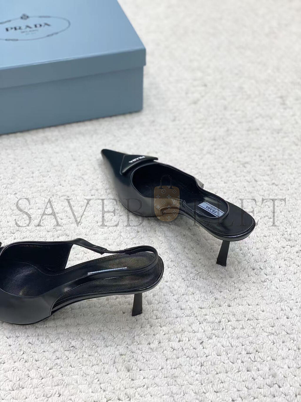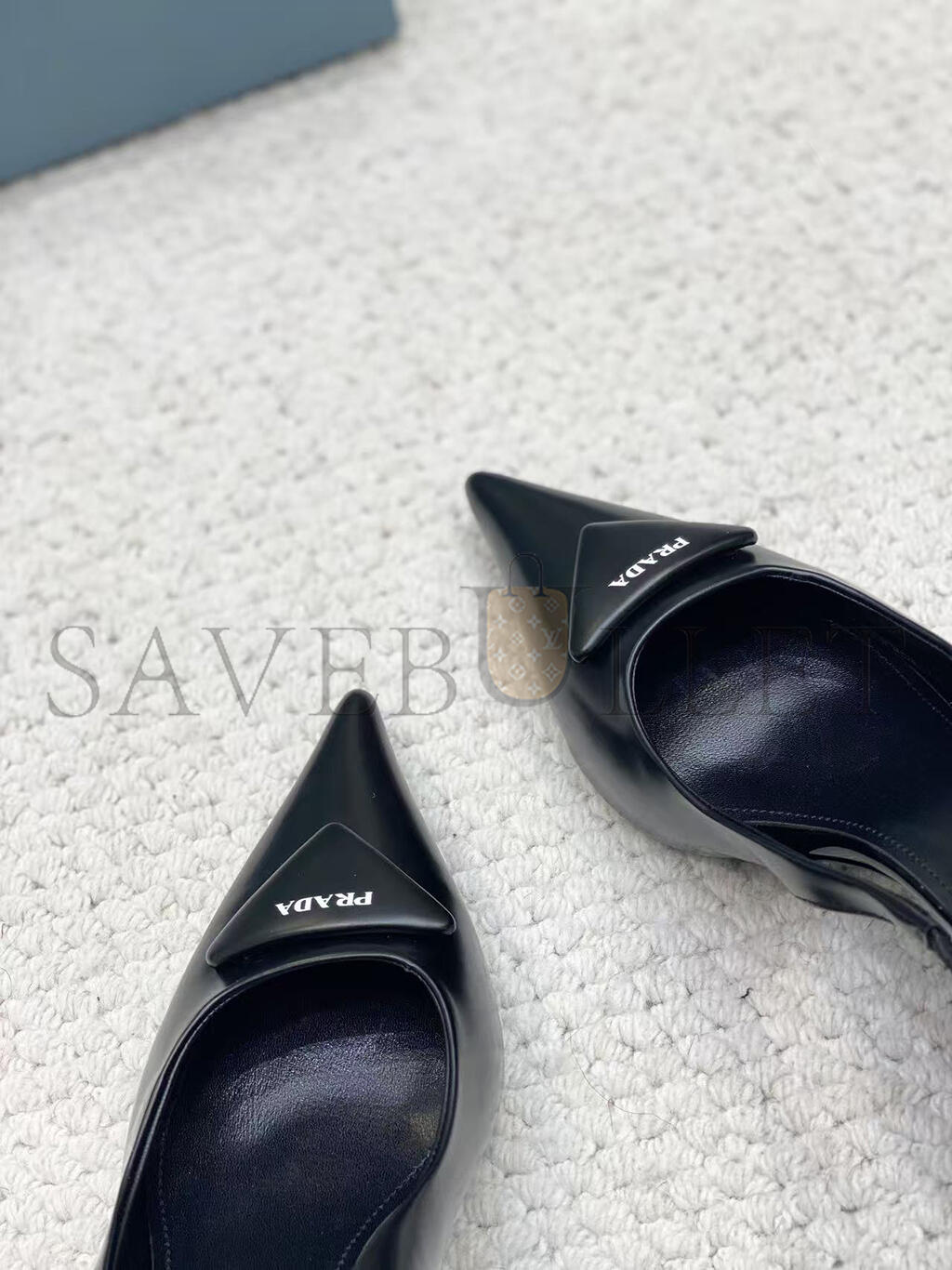 PRADA TRIANGLE LOGO LEATHER HIGH HEELS