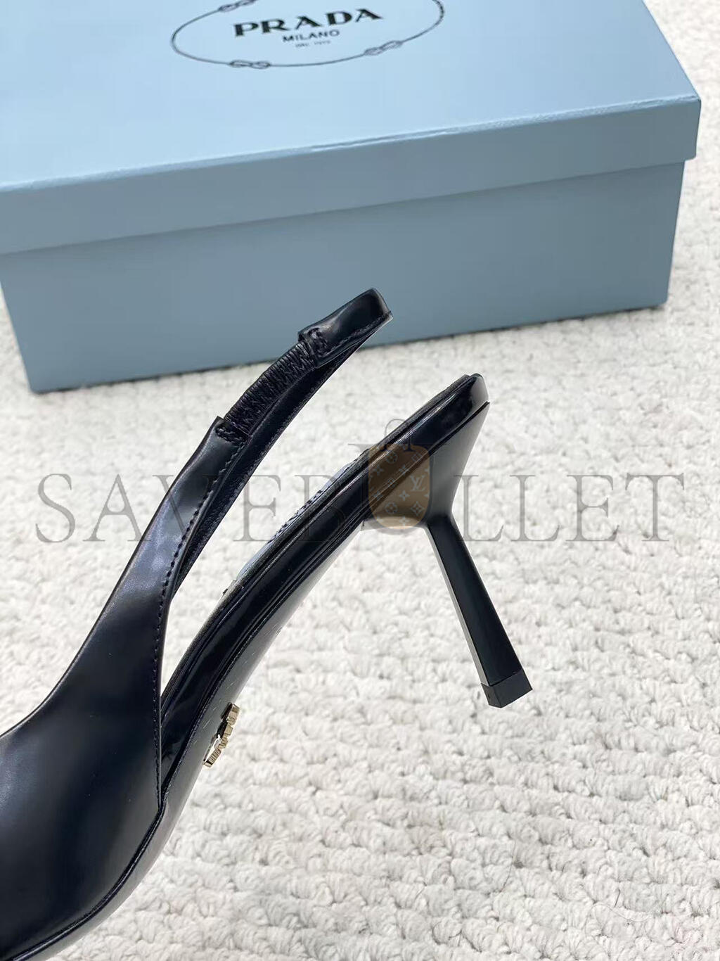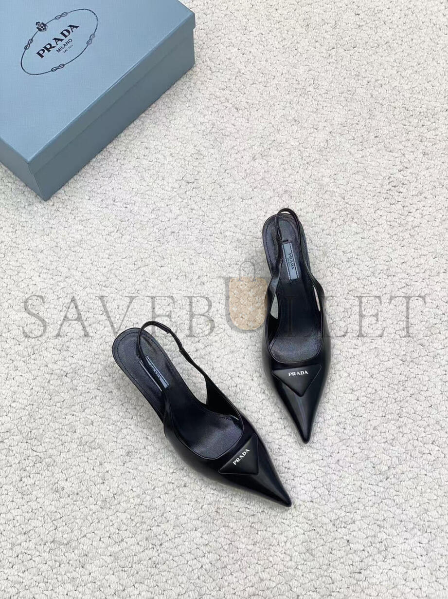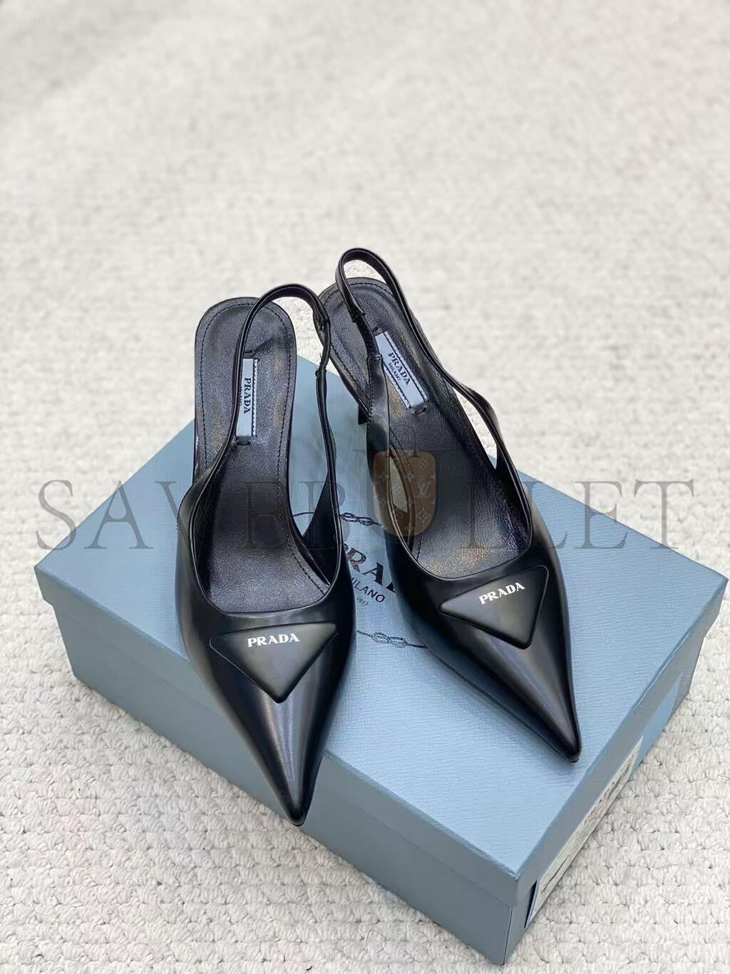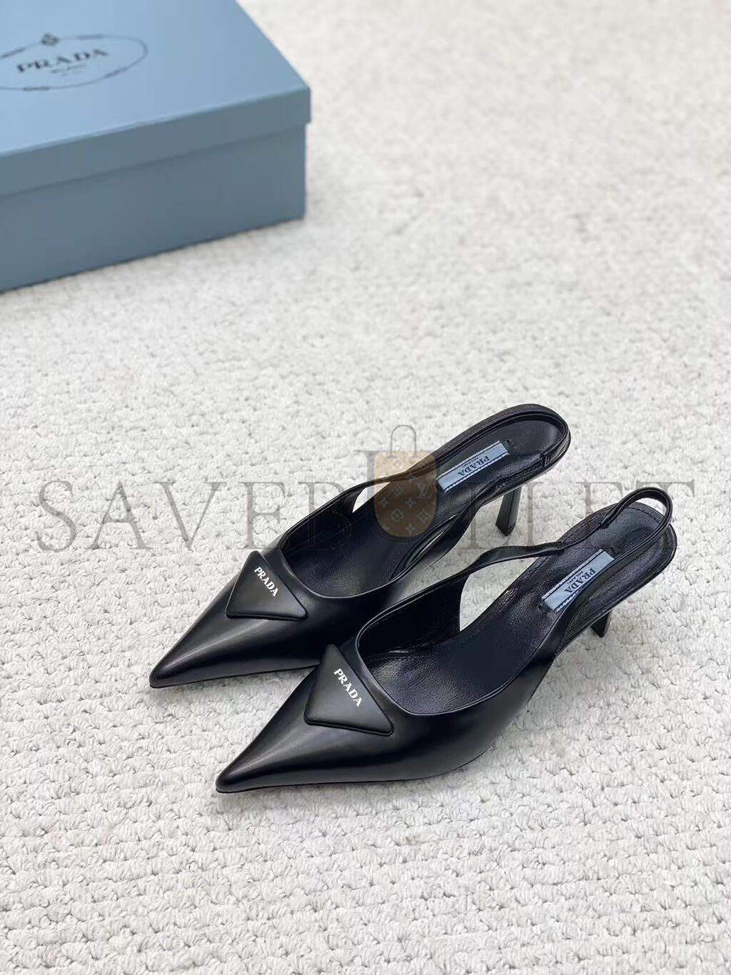 PRADA TRIANGLE LOGO LEATHER HIGH HEELS