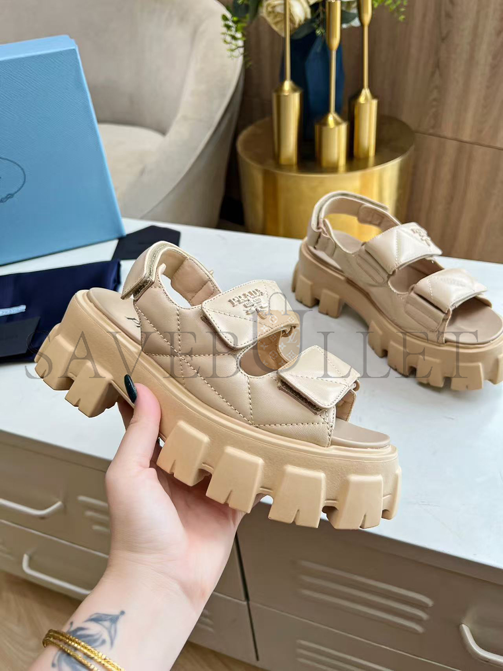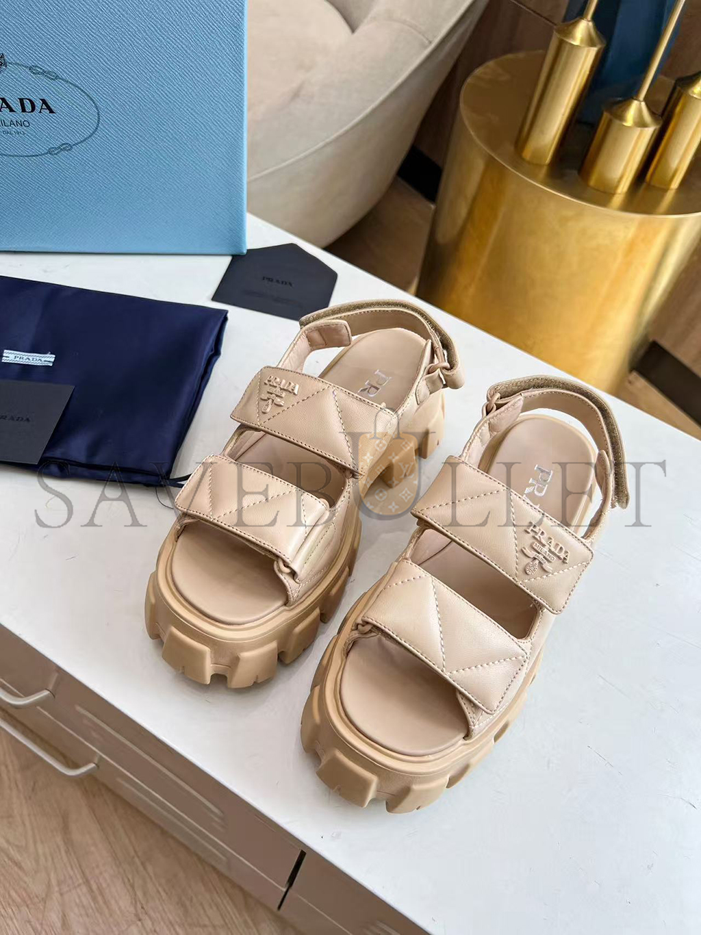 PRADA MONOLITH LEATHER SANDALS