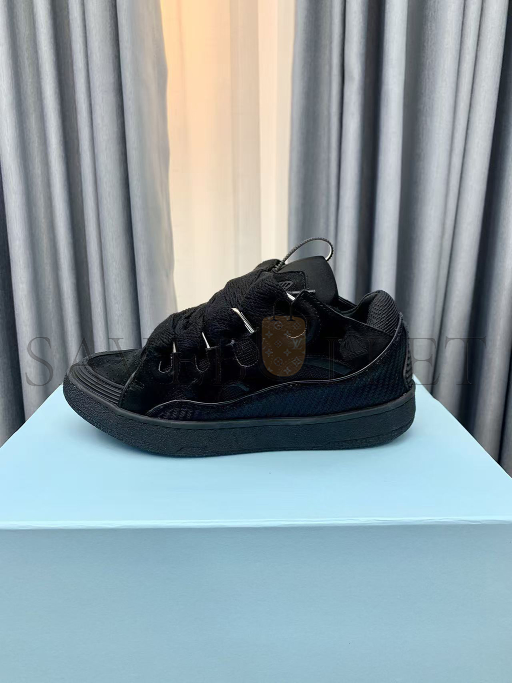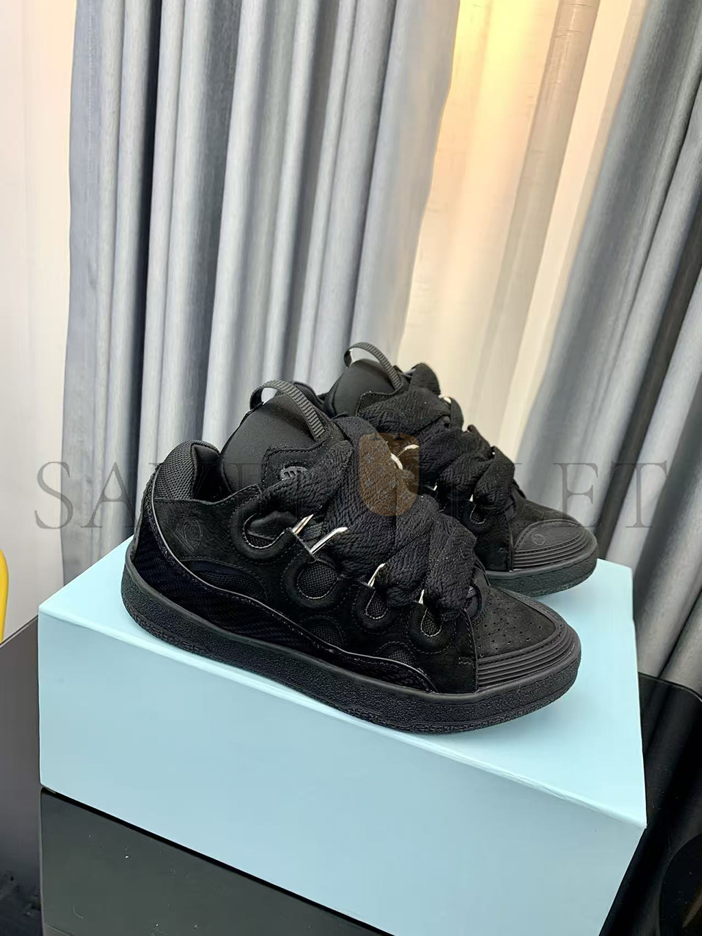 LANVIN BLACK LEATHER CURB SNEAKERS FU-SKDK12-DRAG-P25101035