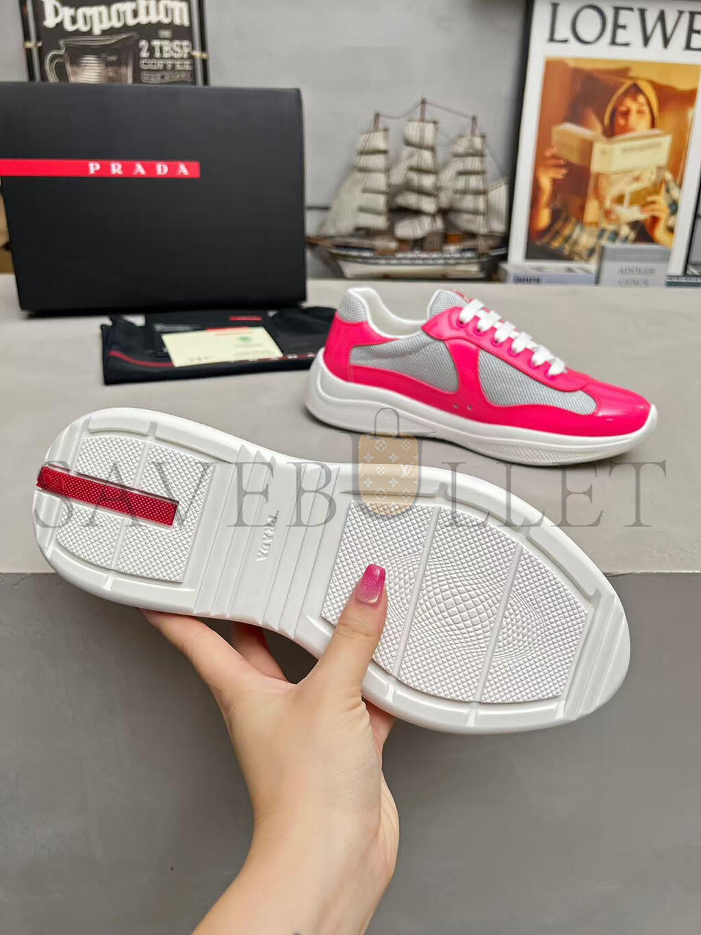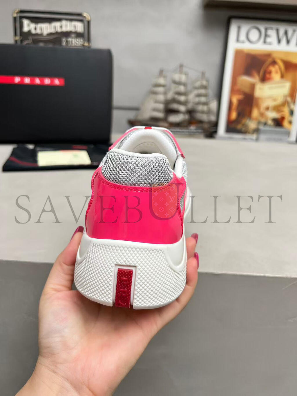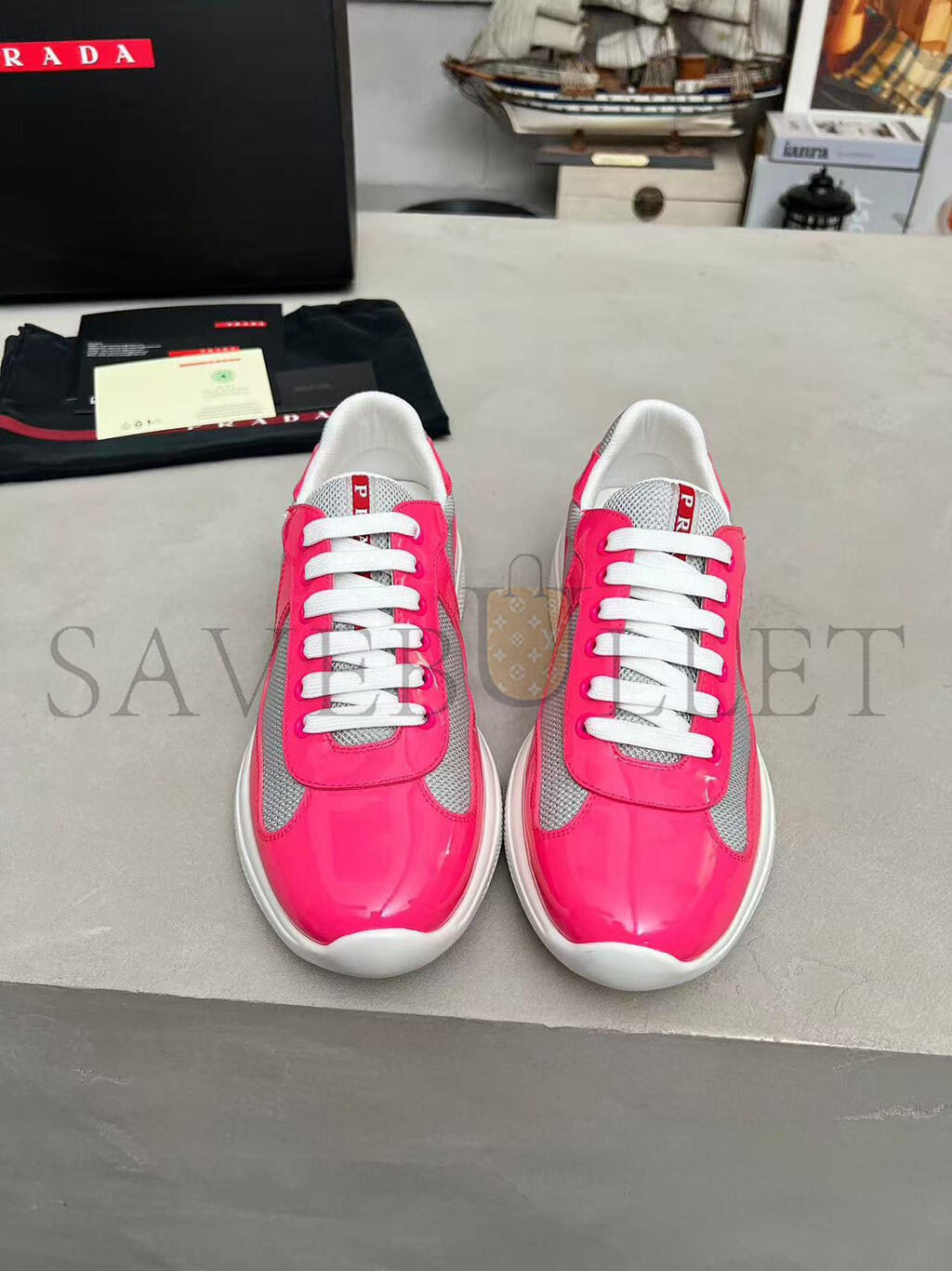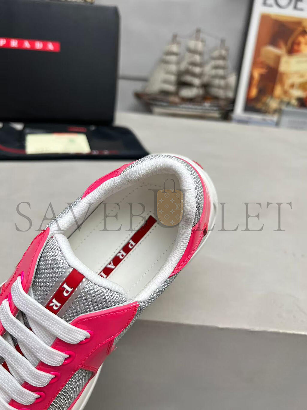 Prada Linea Rossa latex logo badge