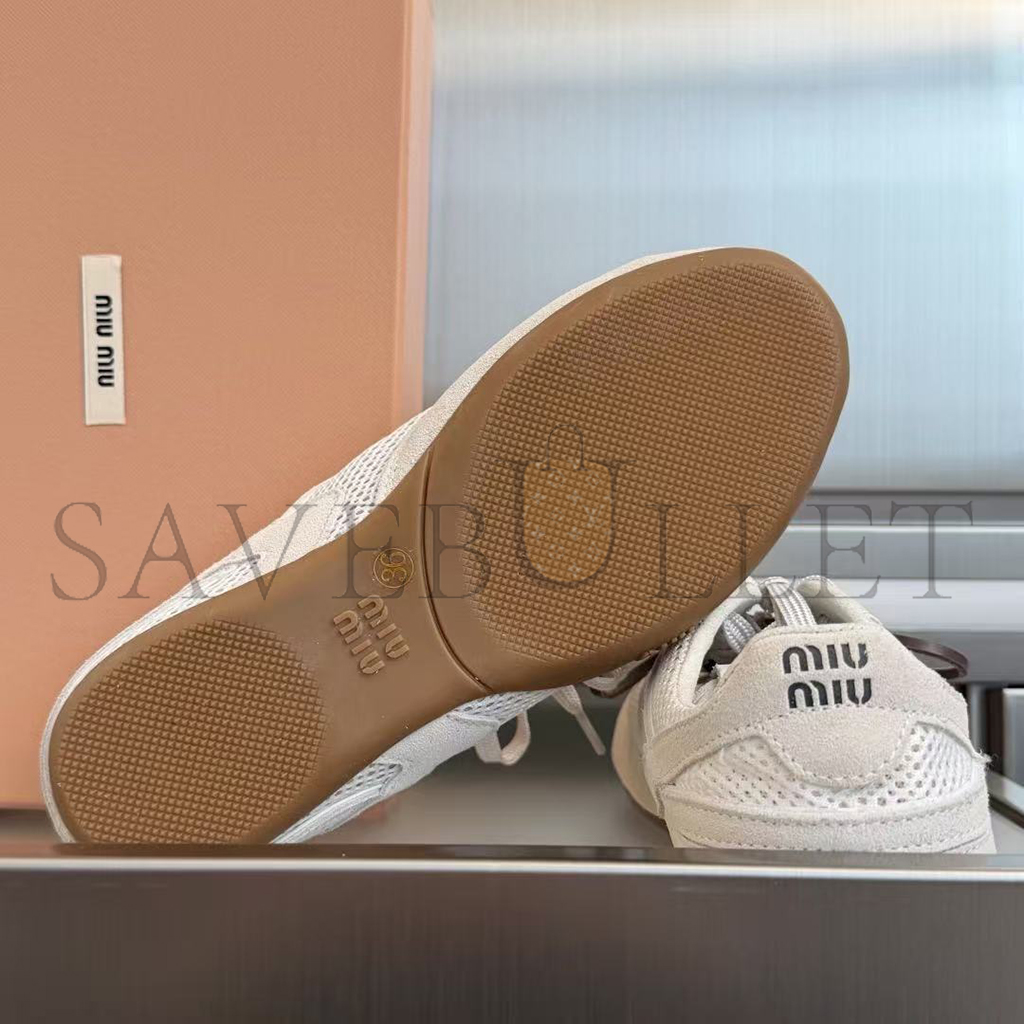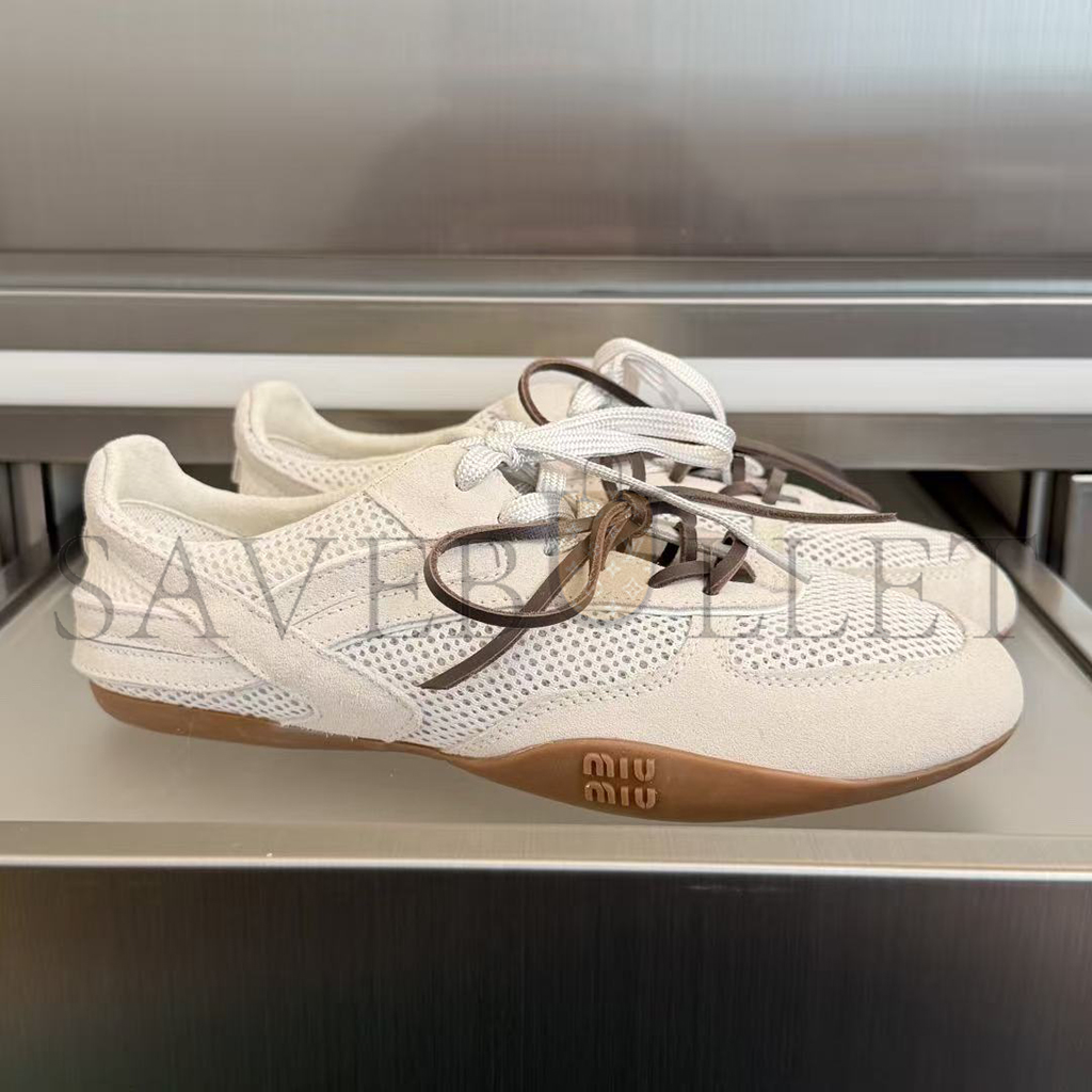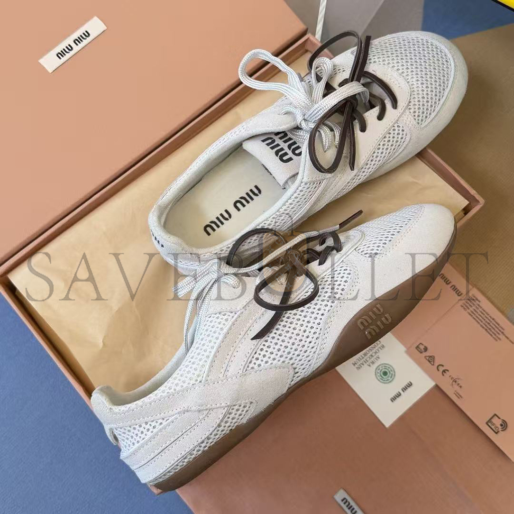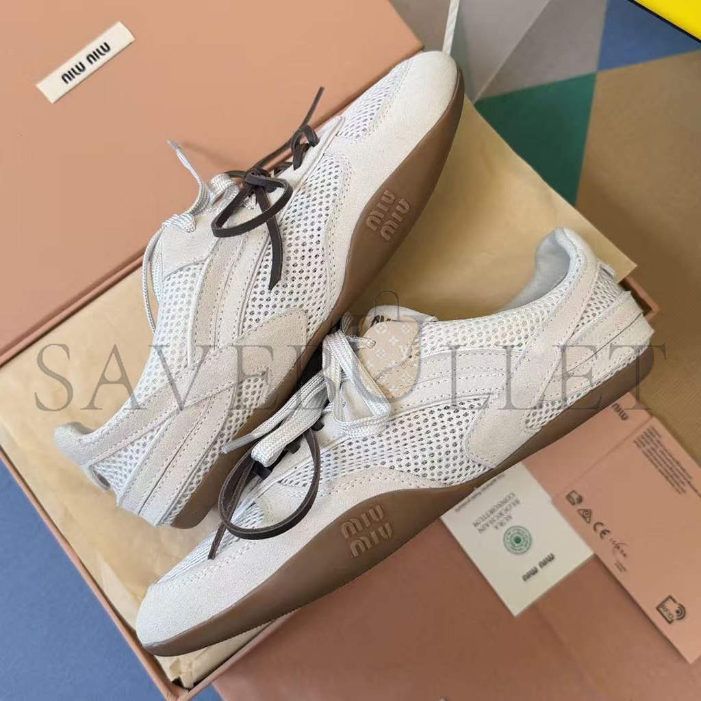 MIU MIU GYMNASIUM MESH AND SUEDE SNEAKERS 5E589E
