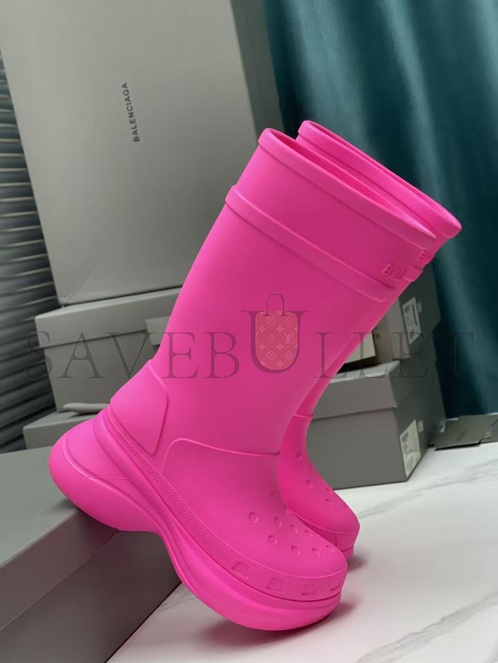 BALENCIAGA WOMEN'S CROCS™ BOOT IN BRIGHT PINK 677388W1S8E5300