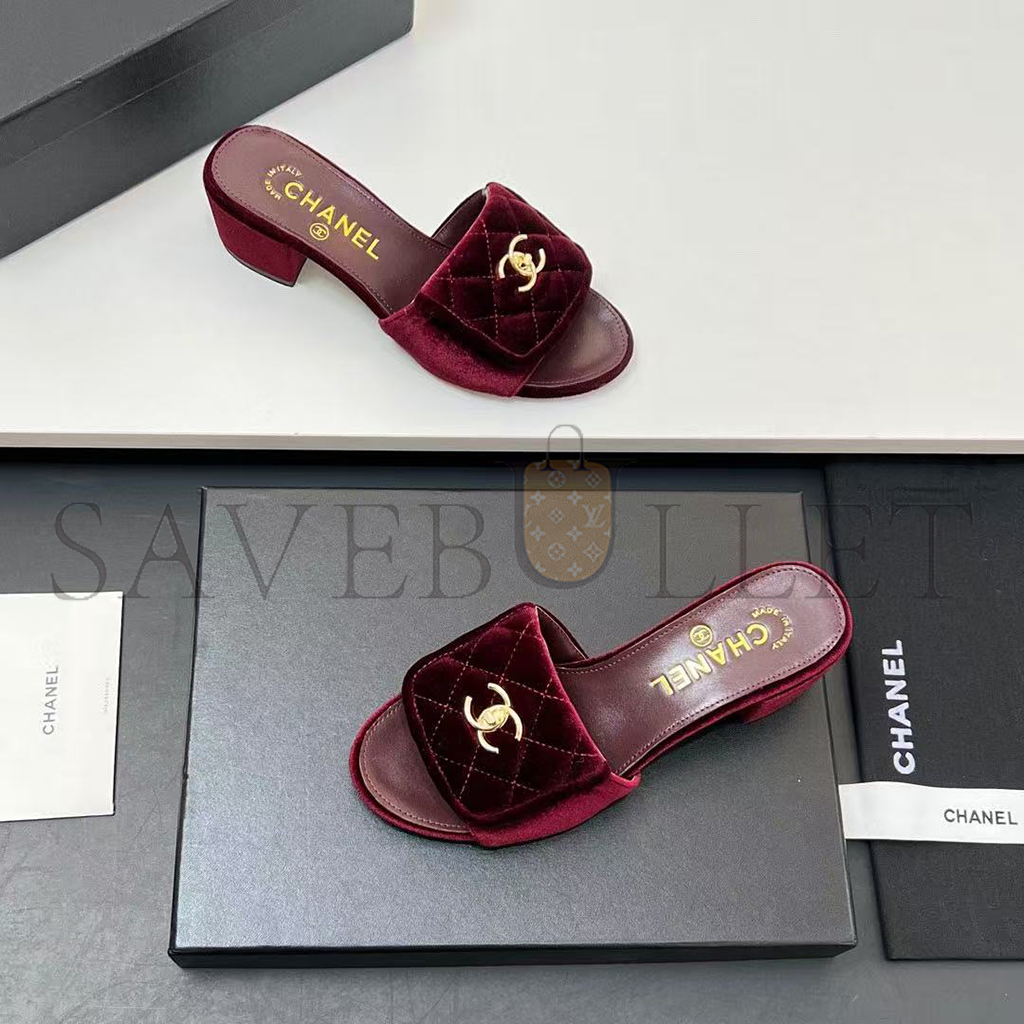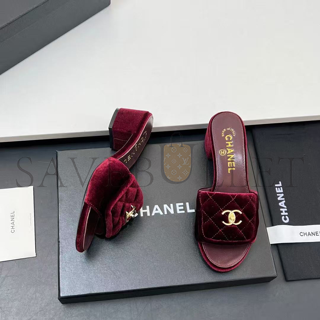 CHANEL QUILTED TURNLOCK SLIPPERS MULES