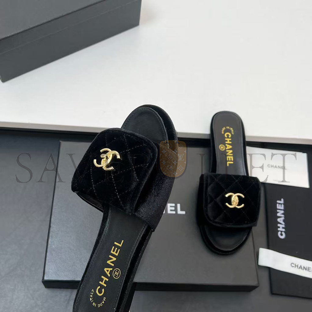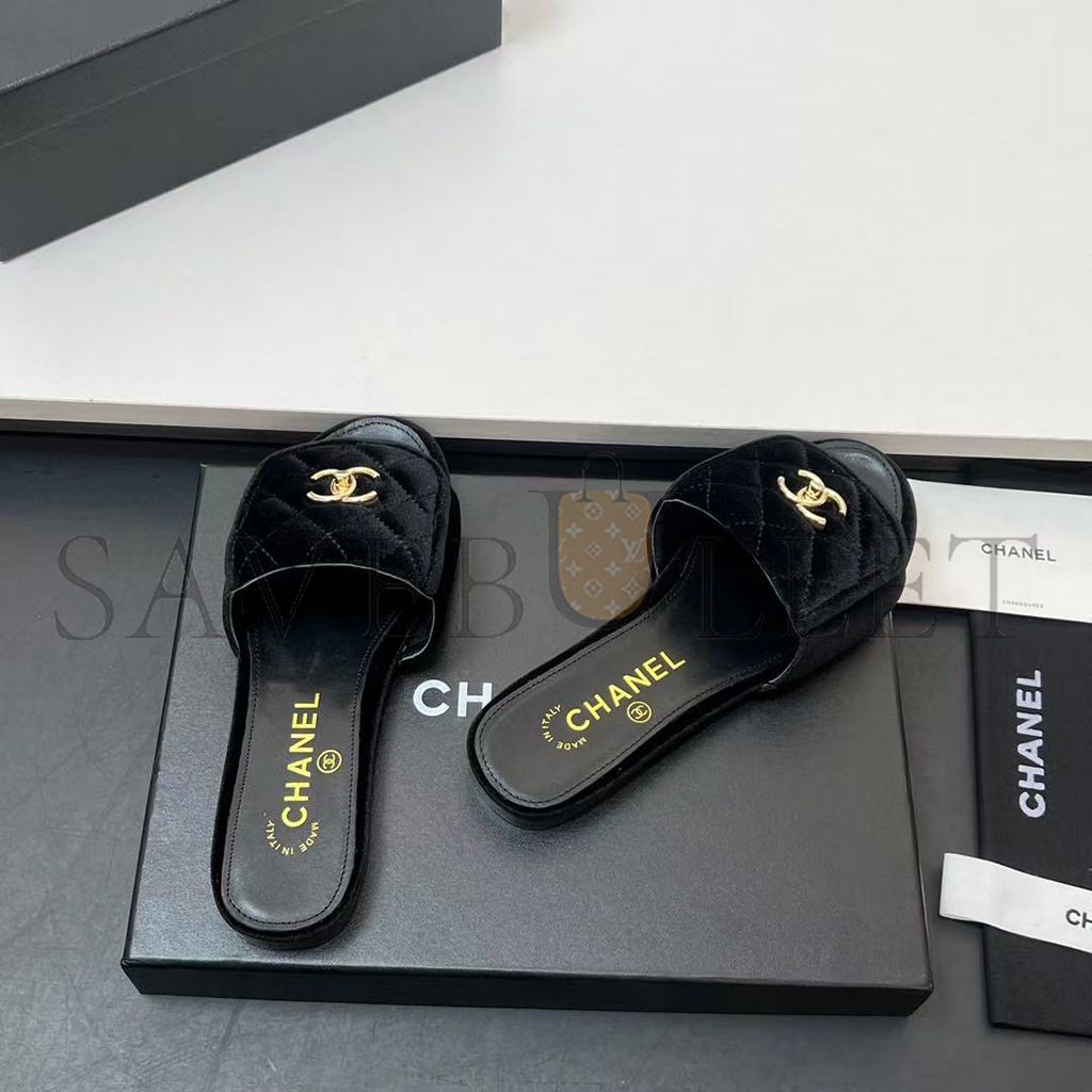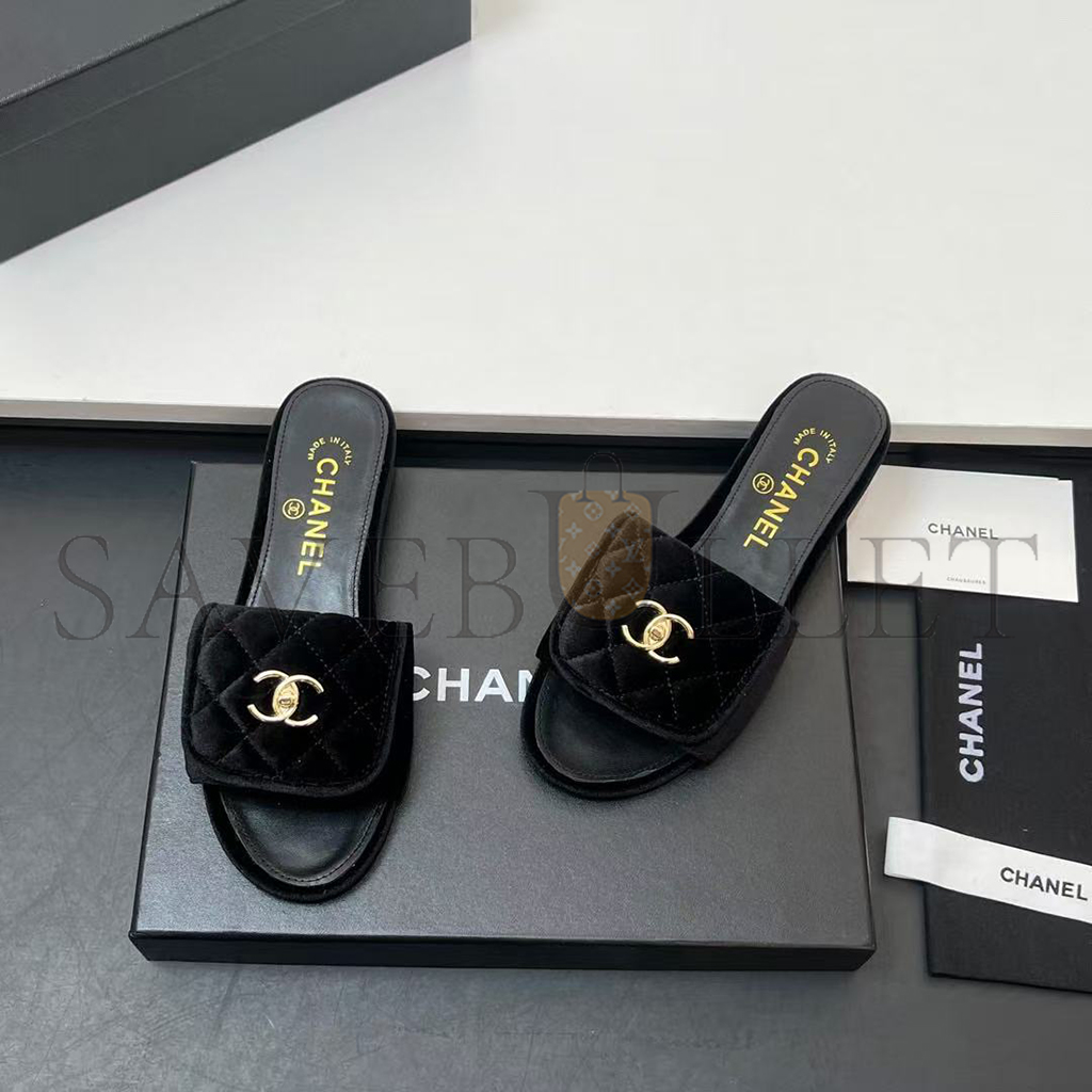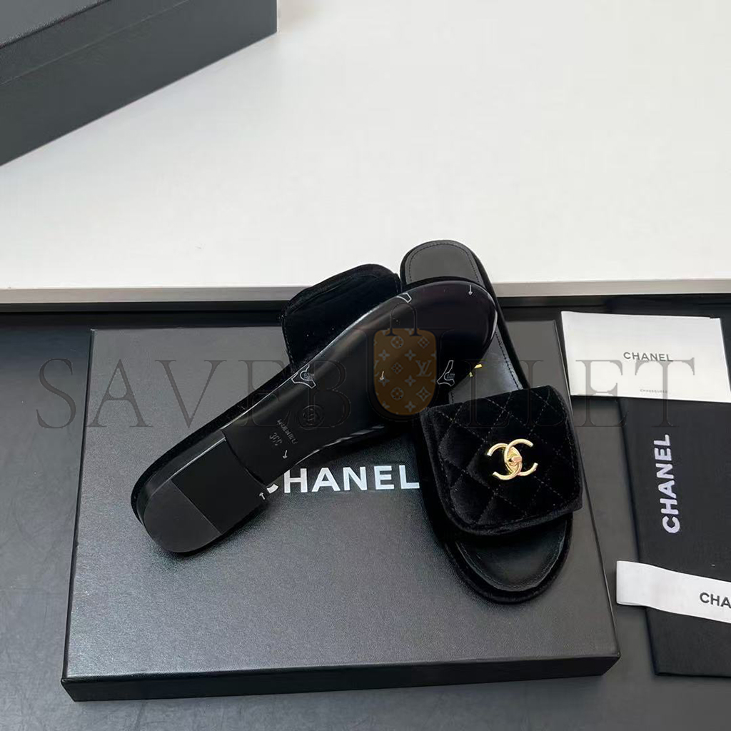 CHANEL QUILTED TURNLOCK FLAT MULES G46119