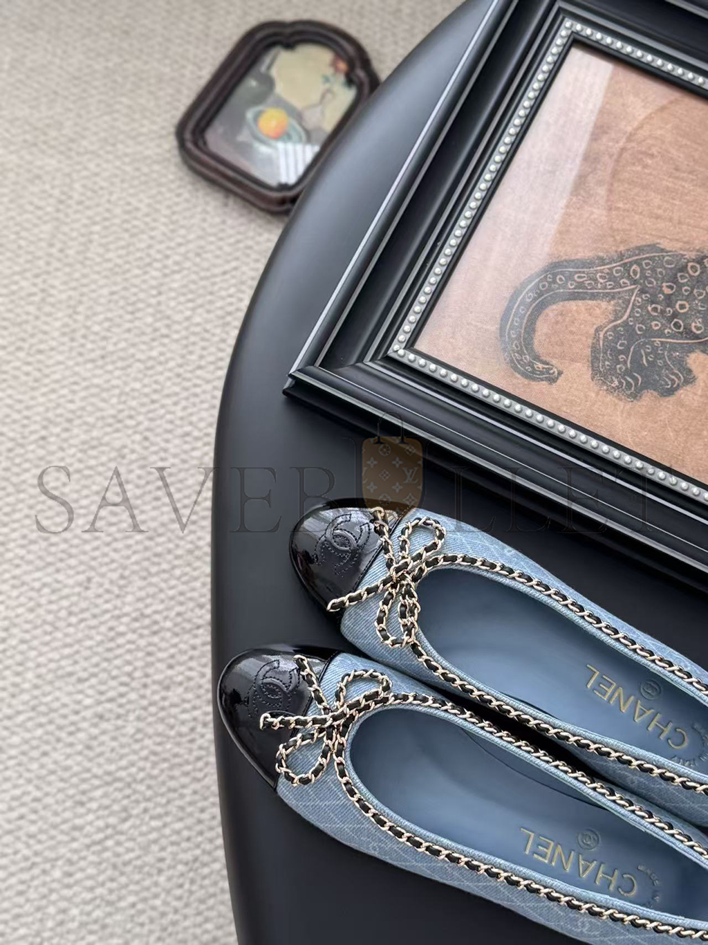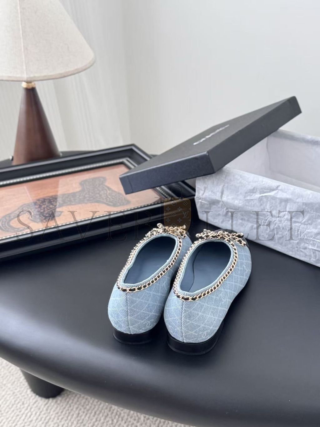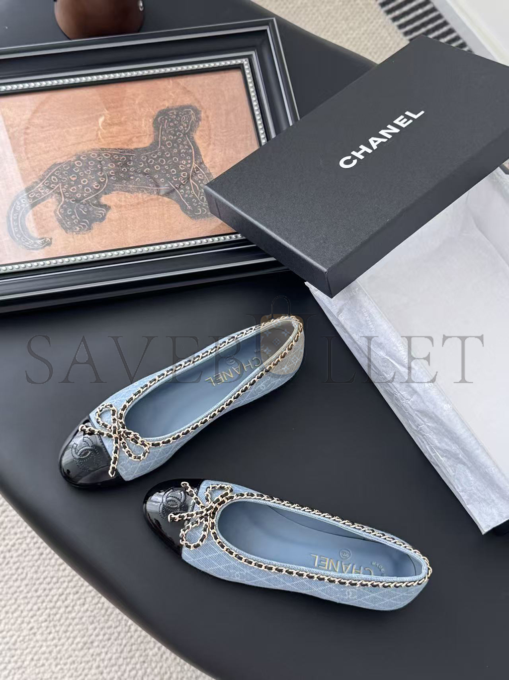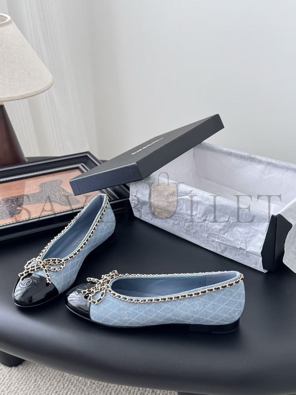 CHANEL DENIM EMBROIDERED GROSGRAIN CC CAP TOE BALLERINA
