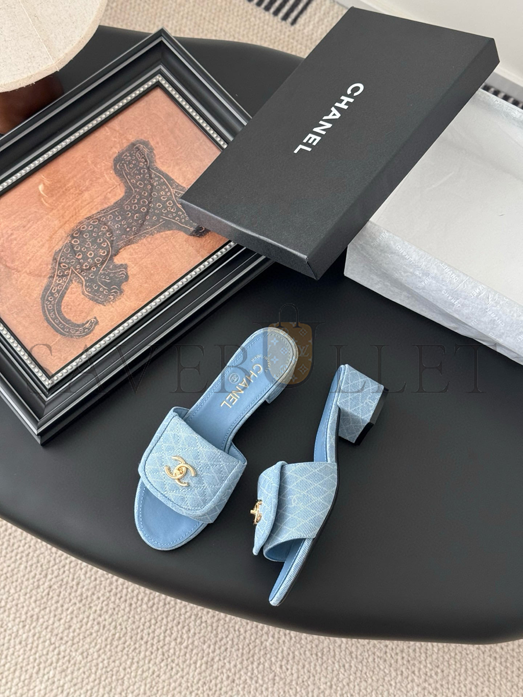 CHANEL DENIM QUILTED TURNLOCK SLIPPERS MULES