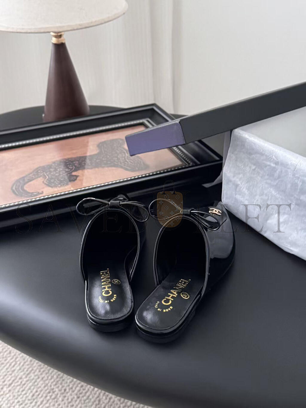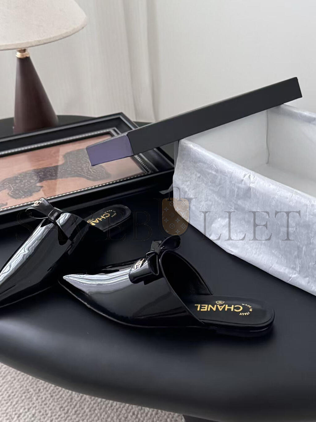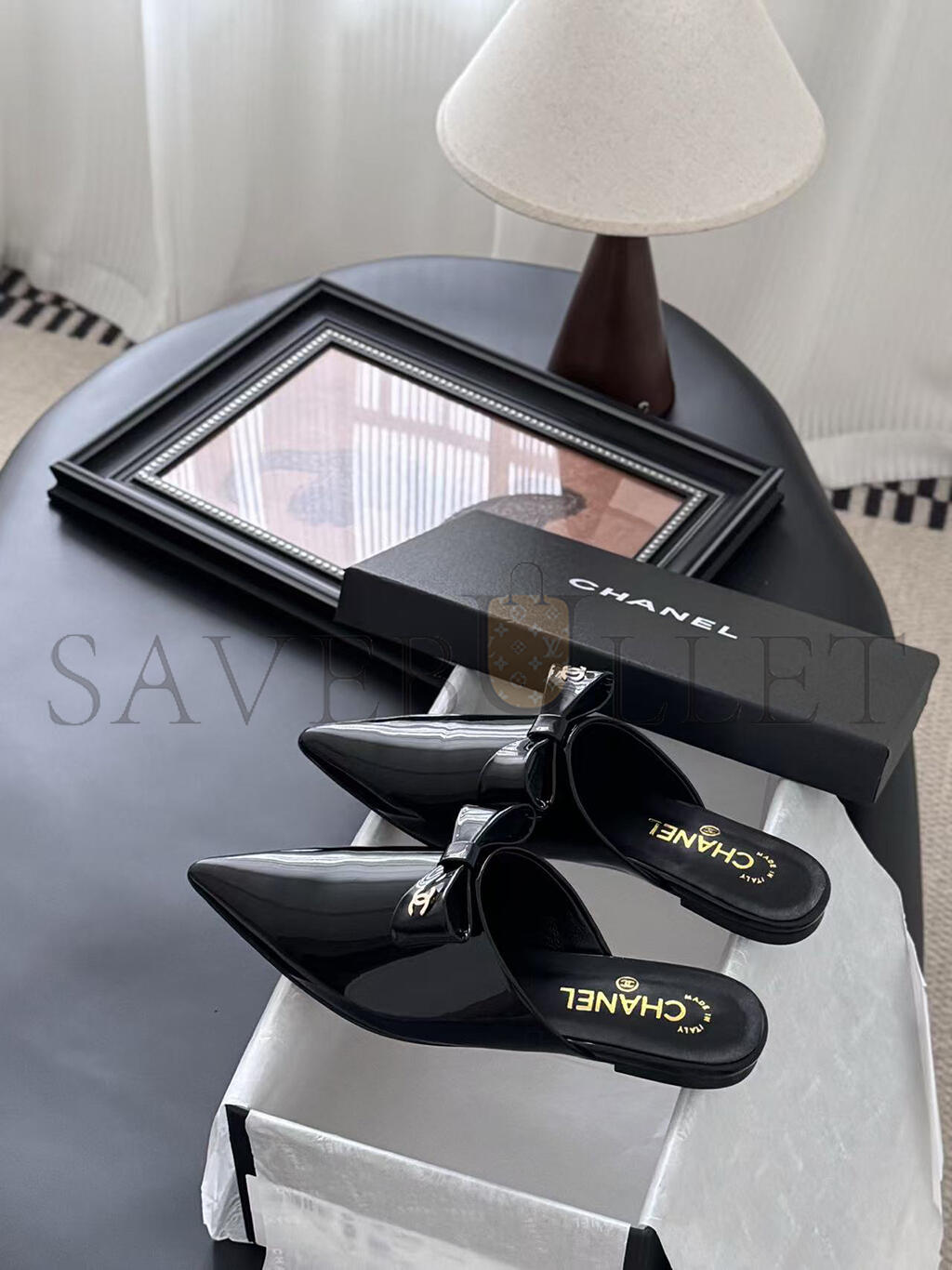 CHANEL MULES PATENT CALFSKIN BLACK G46550