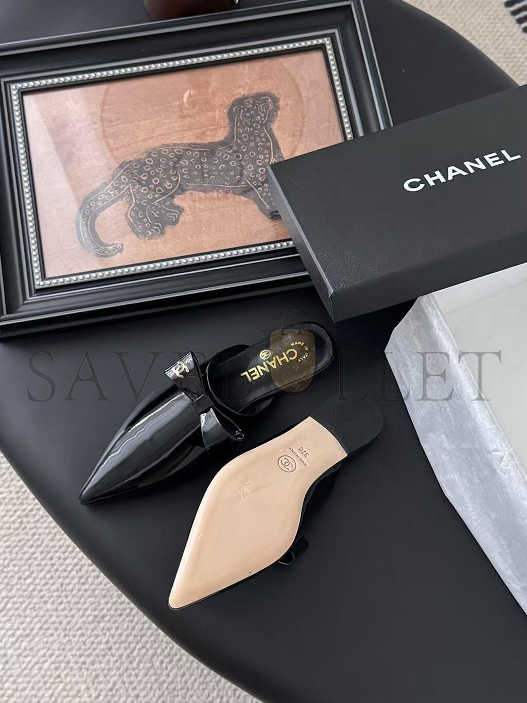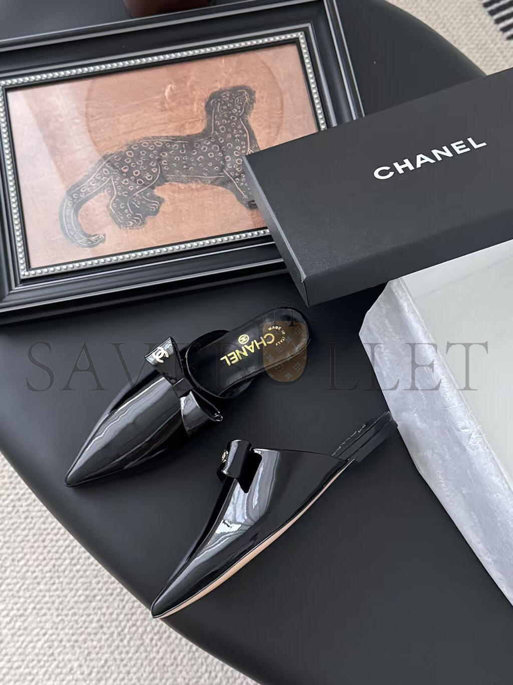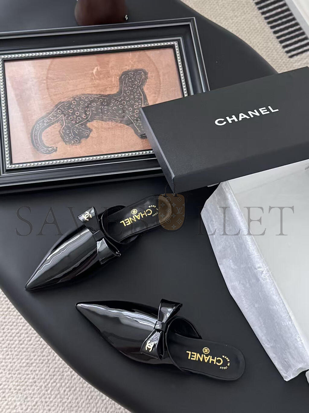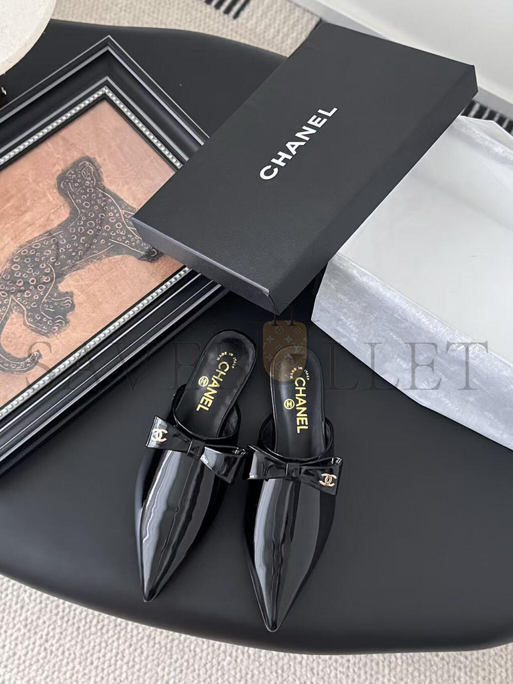 CHANEL MULES PATENT CALFSKIN BLACK G46550