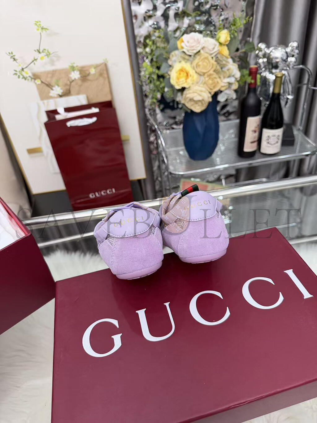 Lilac suede trim