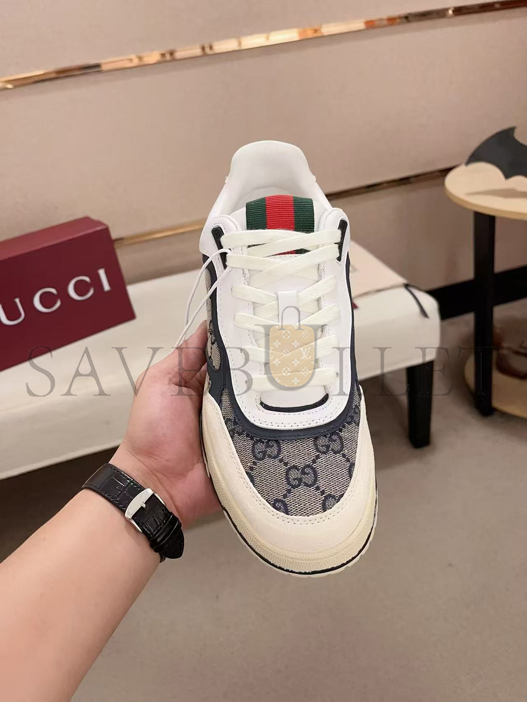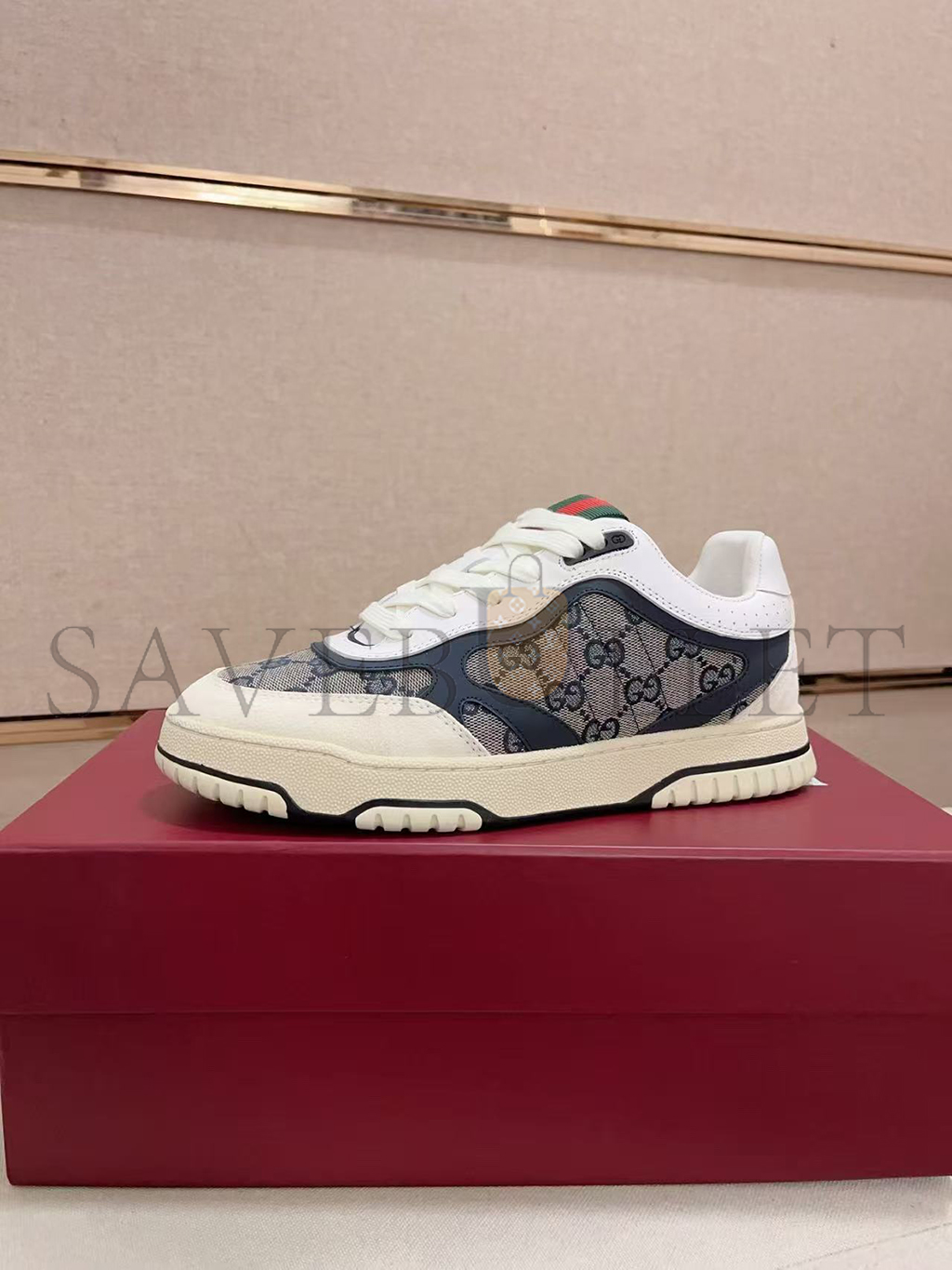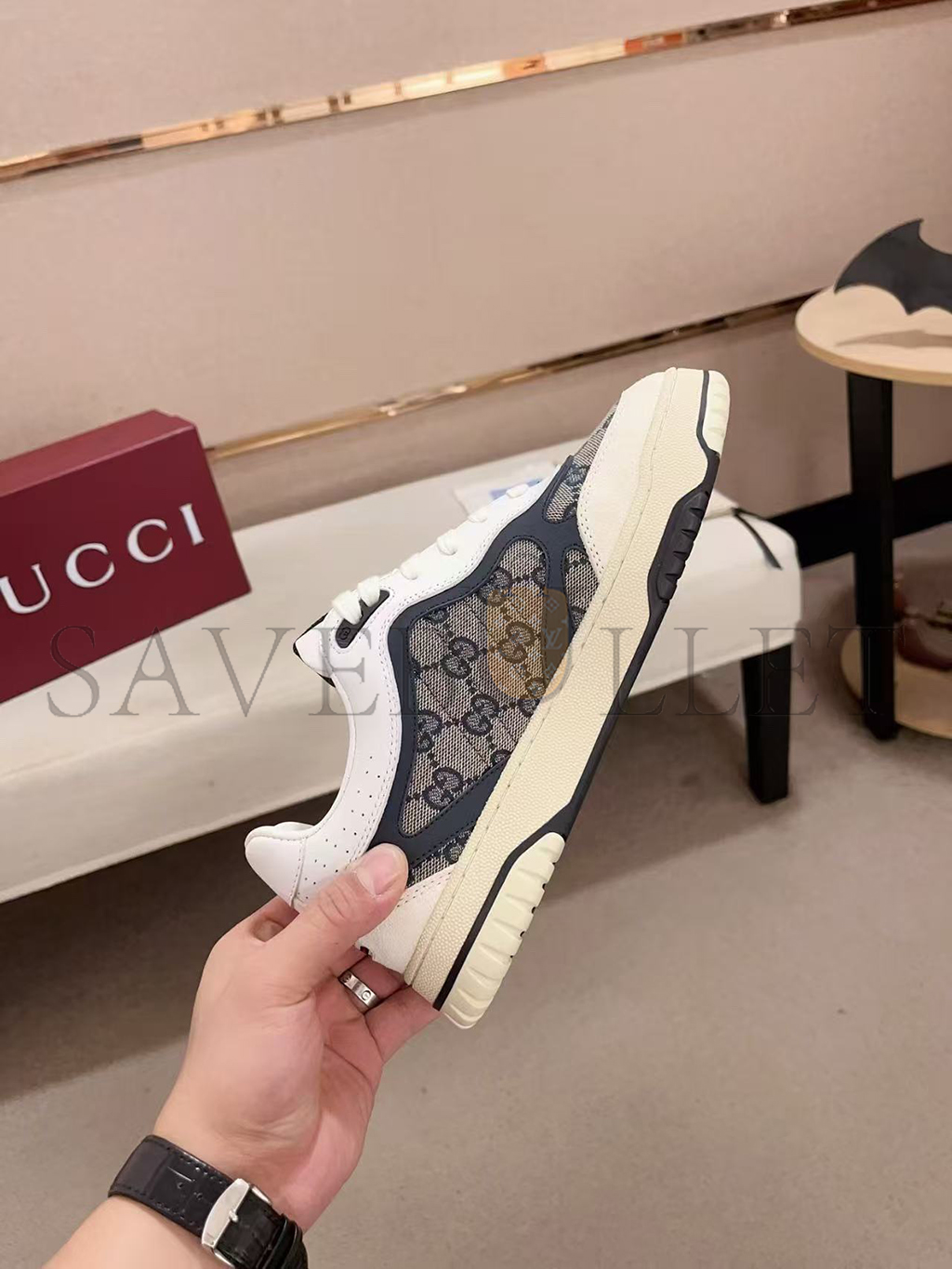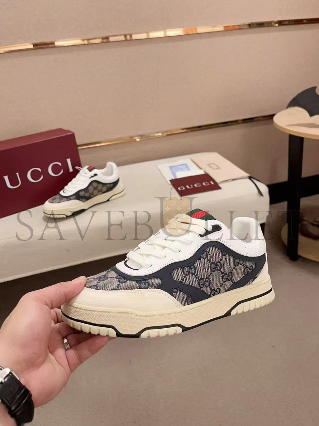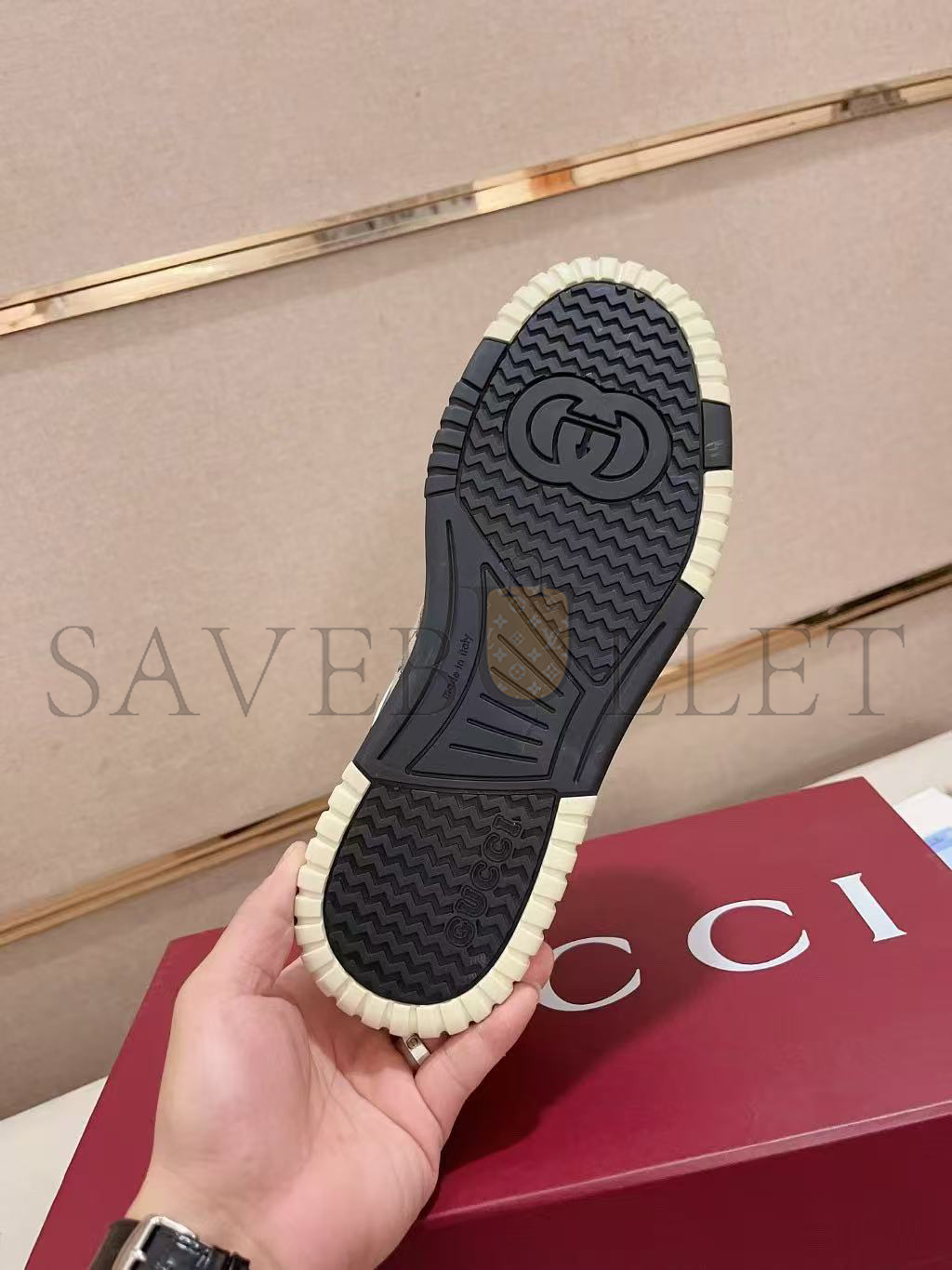 Rubber outsole with Interlocking G and Gucci script logo