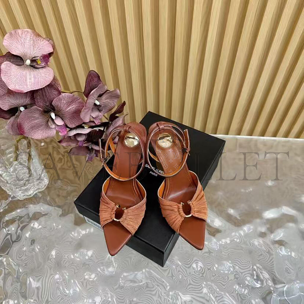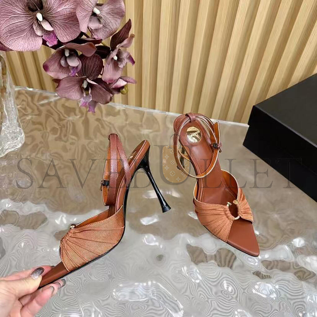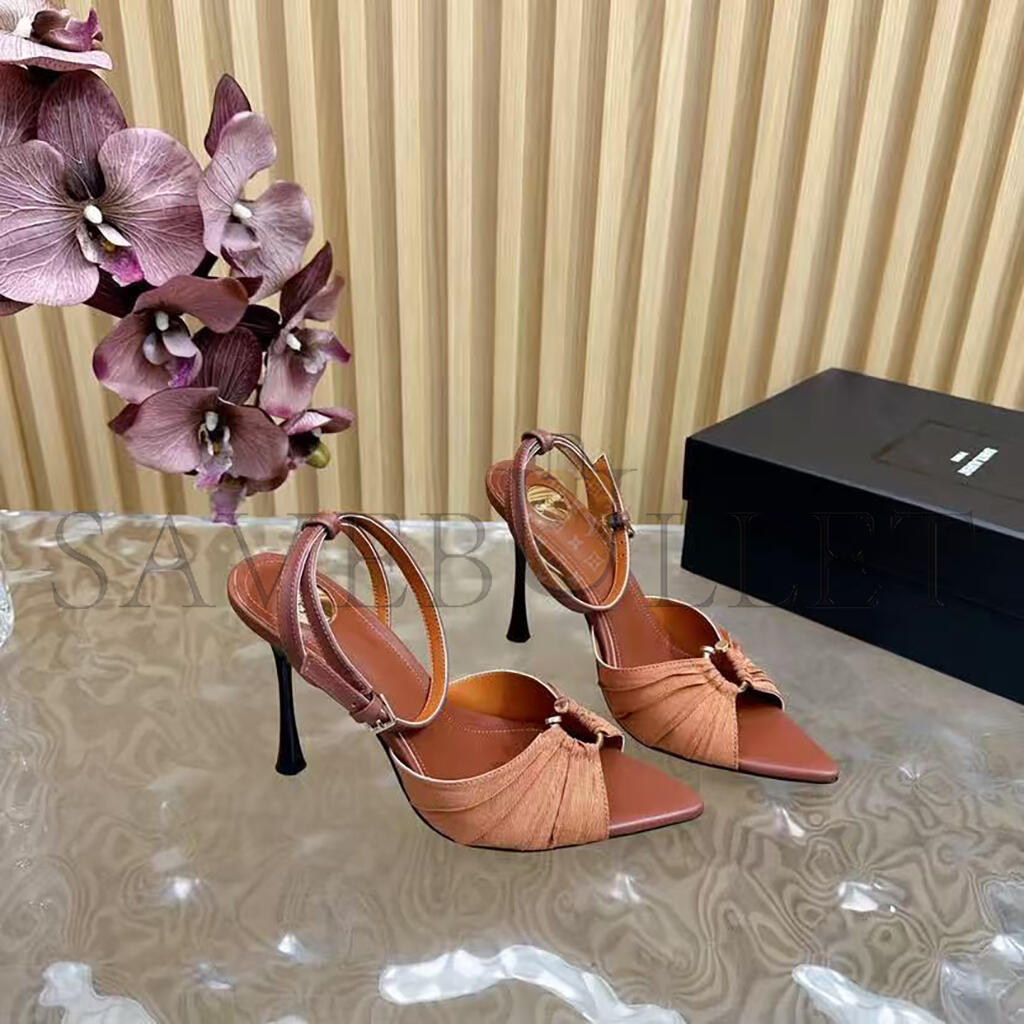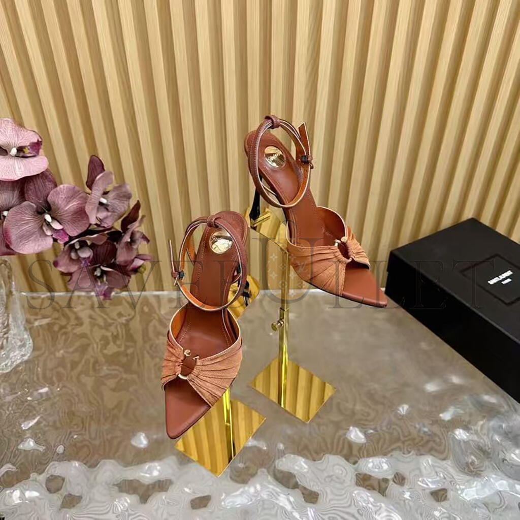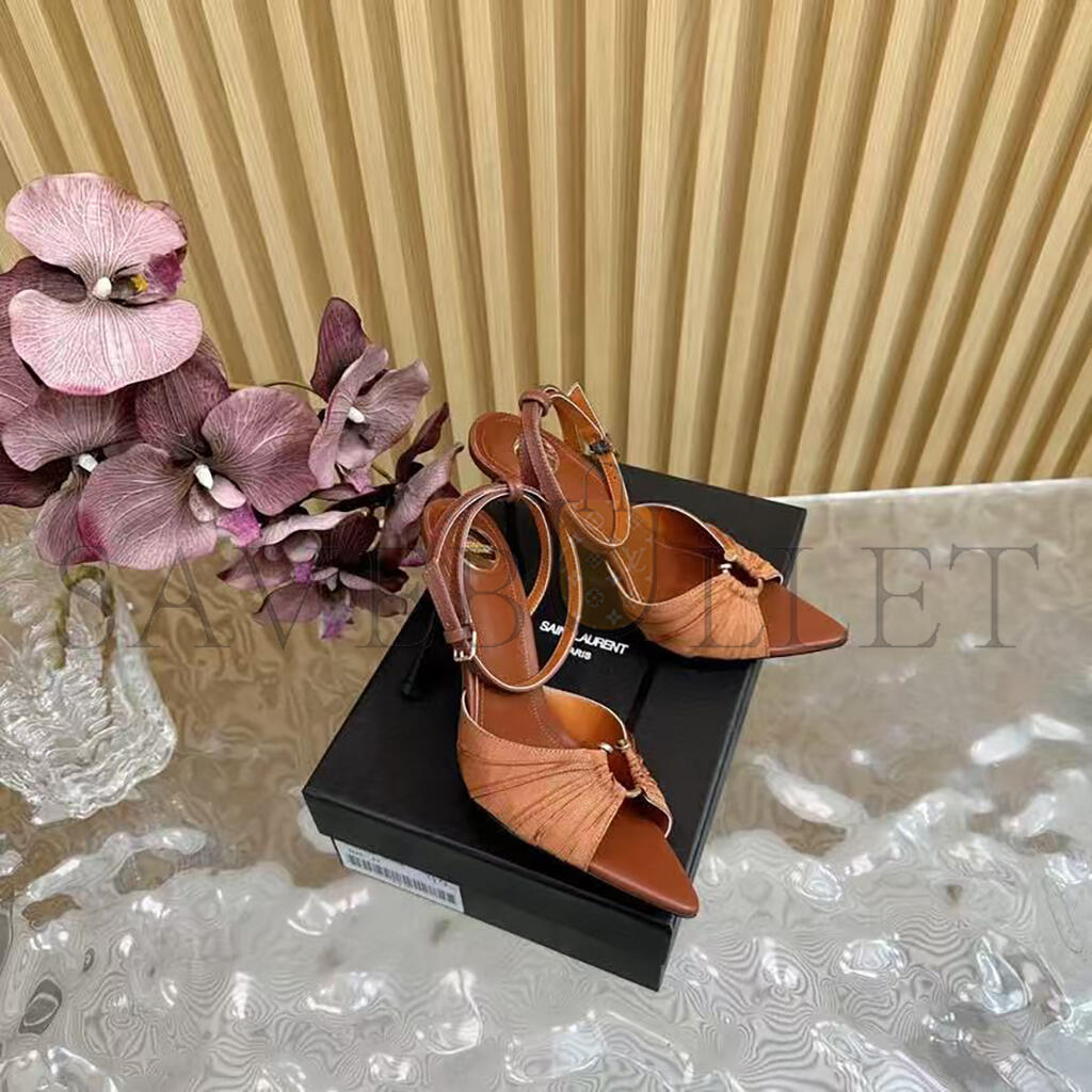 YSL BROWN SATIN AND STRETCH FABRIC LOLA ANKLE STRAP SANDALS