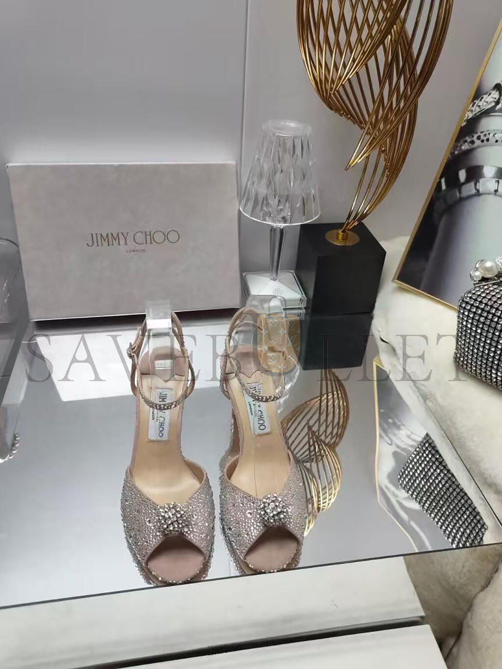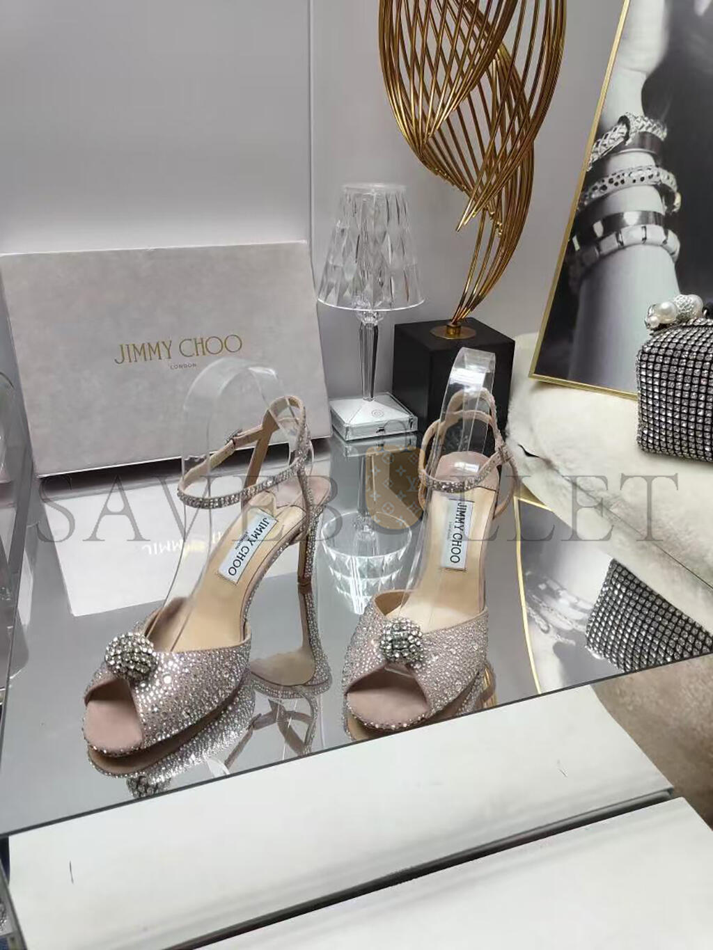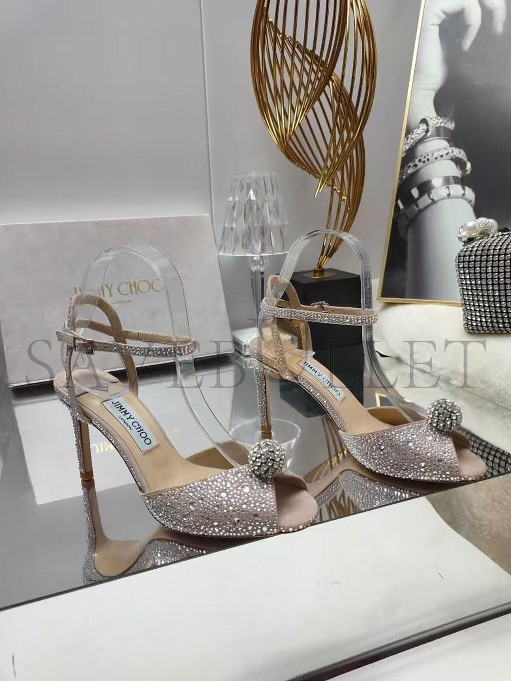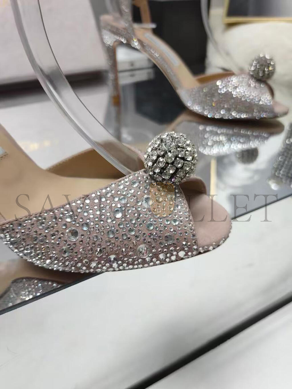 JIMMY CHOO NUDE SUEDE SANDALS WITH HOTFIX CRYSTALS AND SPHERE DETAIL SACORA100PHZ