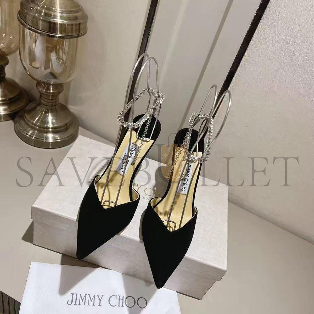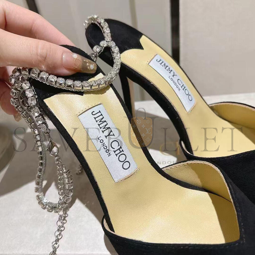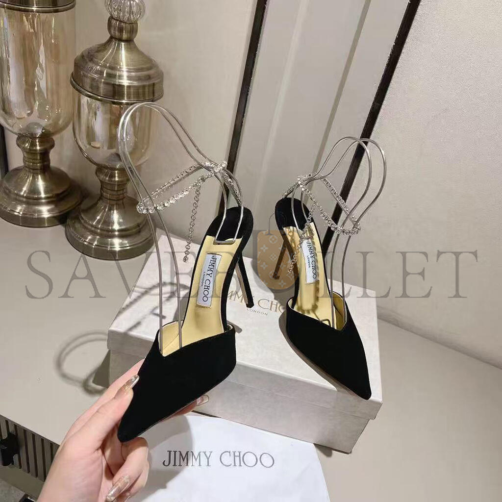 JIMMY CHOO SAEDA 100 BLACK SUEDE PUMPS WITH CRYSTAL EMBELLISHMENT SAEDA100EWA