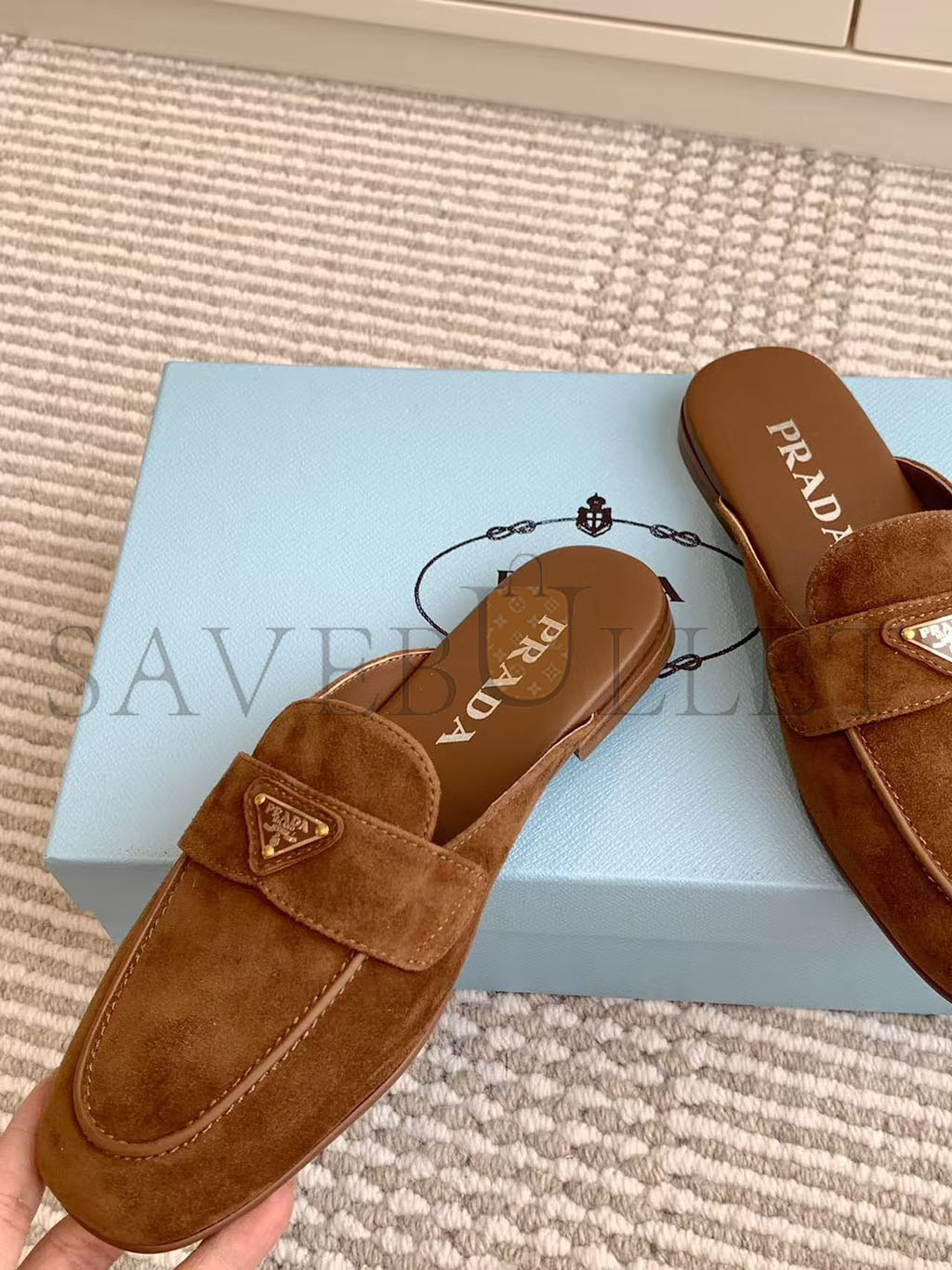 PRADA COCOA BROWN SUEDE SLIPPERS