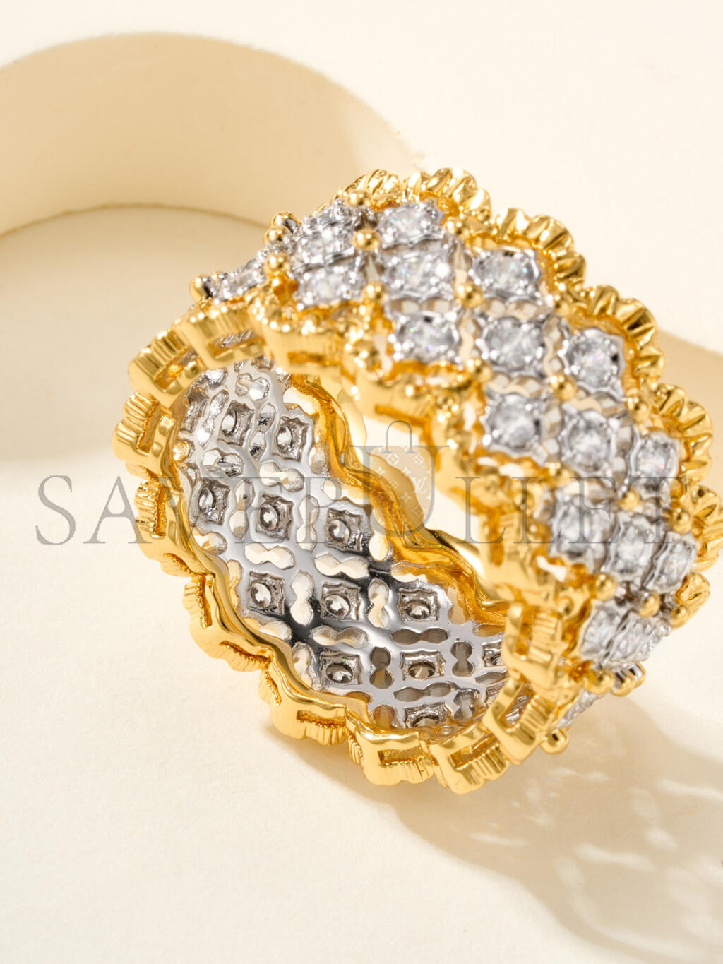 BUCCELLATI ROMBI WHITE AND YELLOW GOLD ETERNELLE RING JAUETE005788