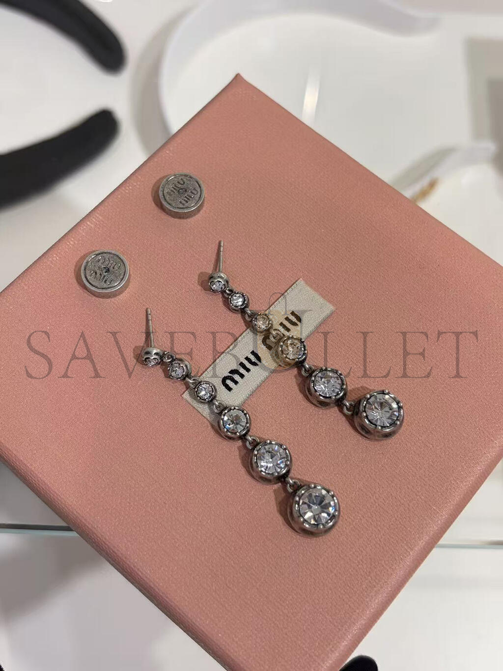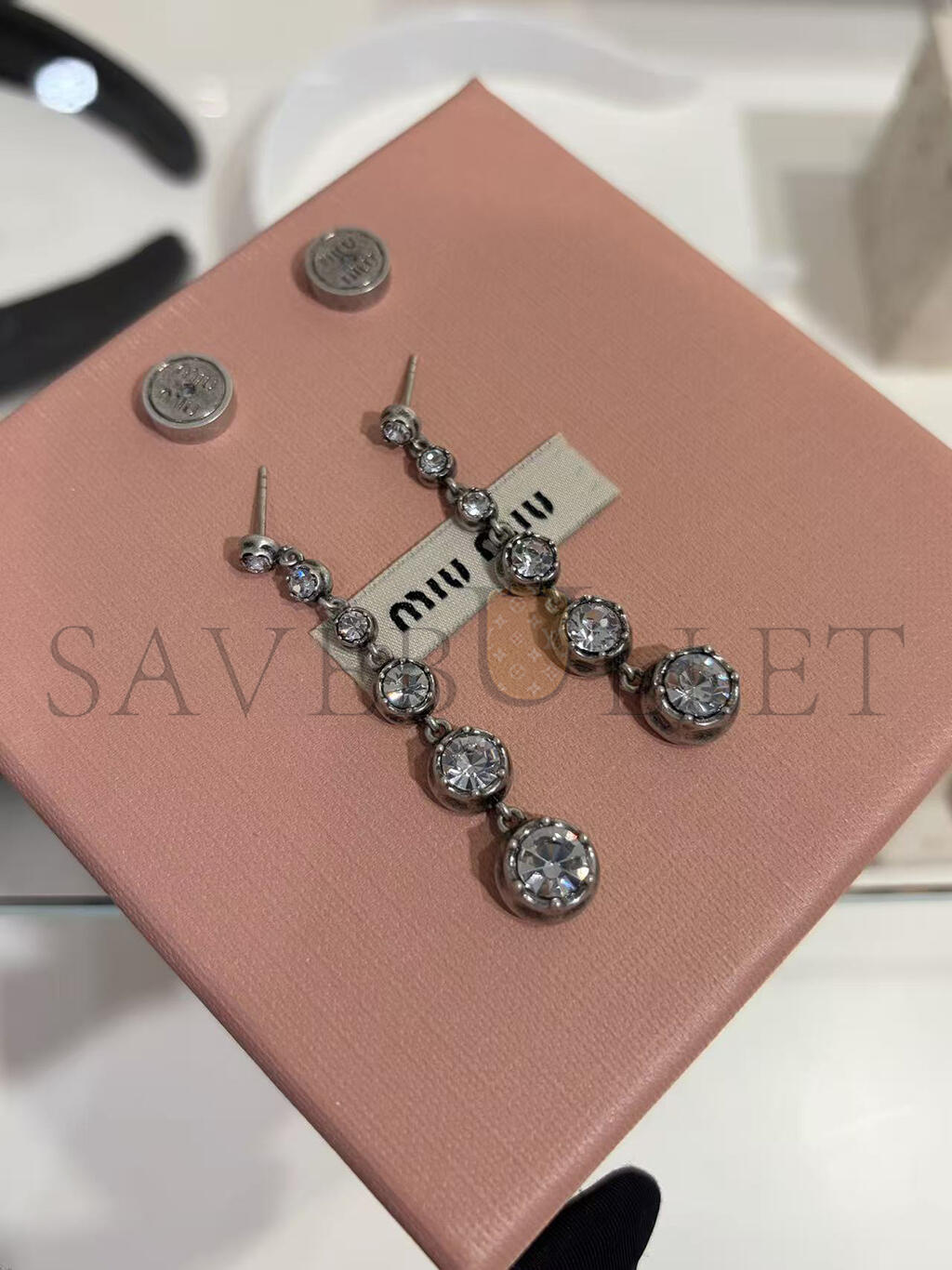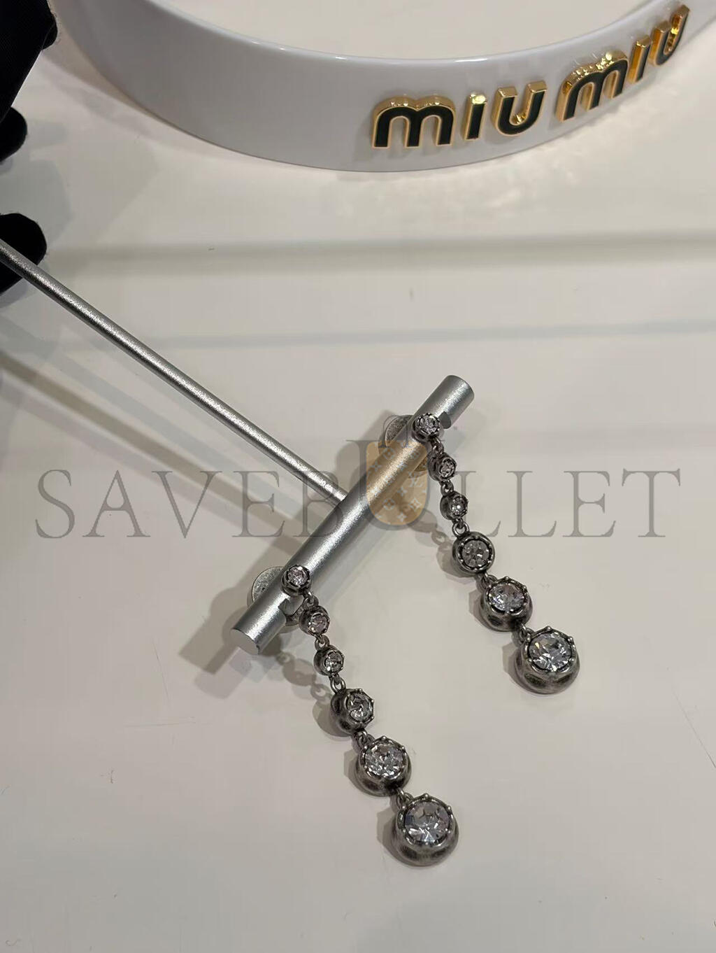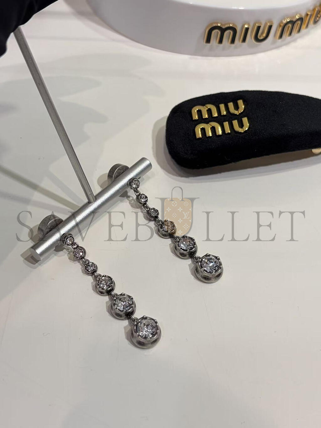MIU MIU METAL PENDANT EARRINGS WITH CRYSTALS 5IO327