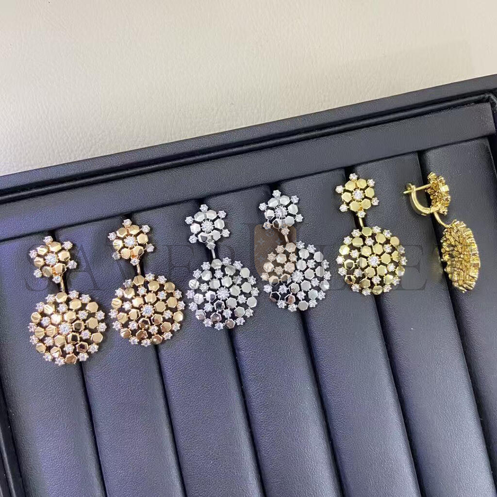 Symbolising vibrant and spirited nature. Reinterpreting the bee motif. Encapsulating light. One of a kind, the Bee de Chaumet collection arises from the fusion of these components. Graphic and irresistible creations whose connected honeycomb cells follow one another to infinity. Diffusing light like no other, allowing those who wear them to shine, together.