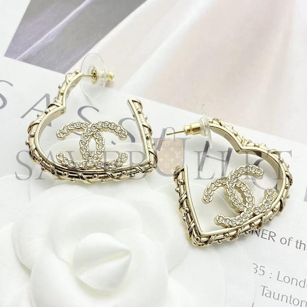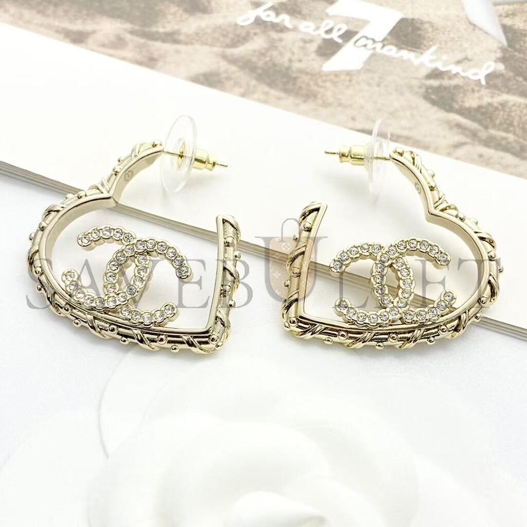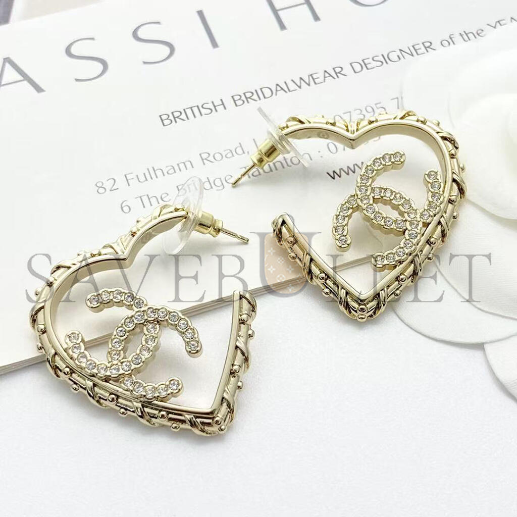 CHANEL COCO MARK HEART HOOP EARRINGS GOLD STRASS AND CHAMPAGNE GOLD HARDWARE ABF267