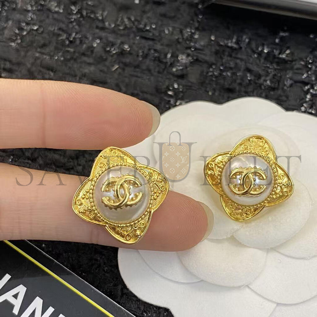 CHANEL CLOVER-SHAPED PEARL EARRINGS