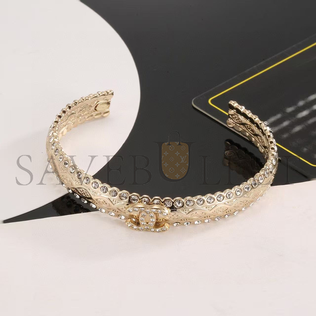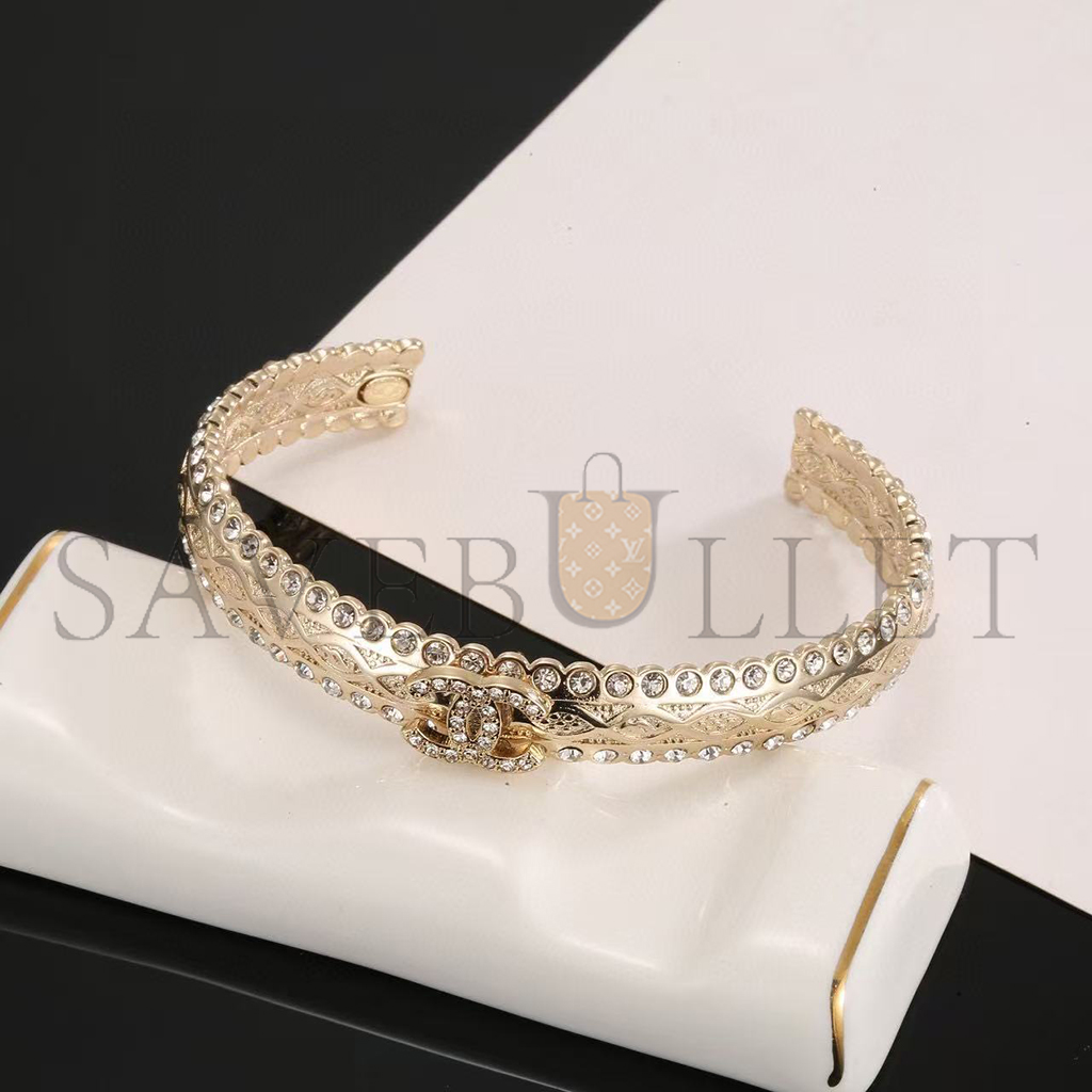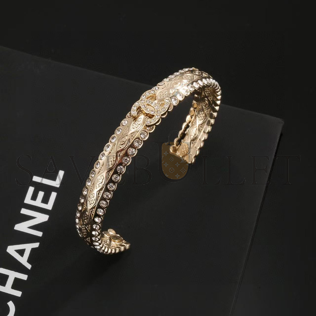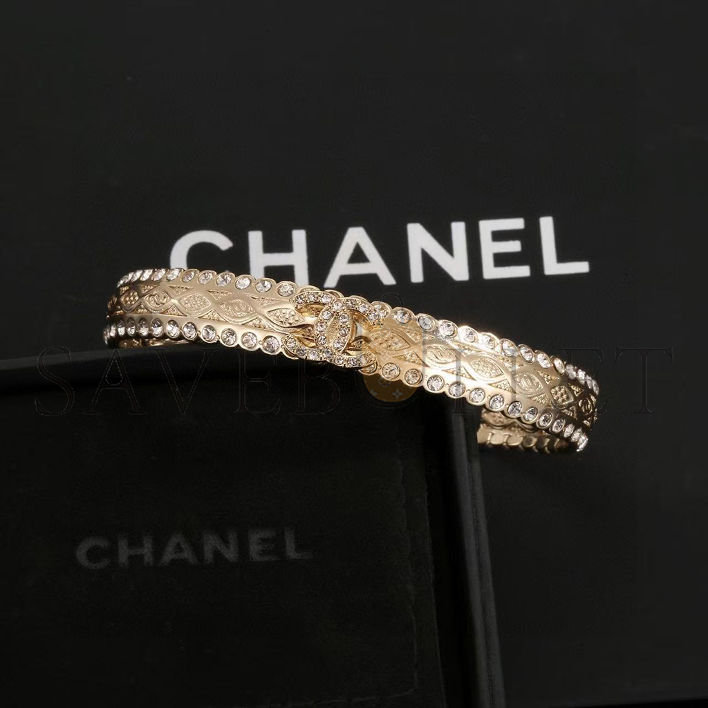CHANEL CRYSTAL MANCHETTE CC GOLD CUFF BRACELET AB5843