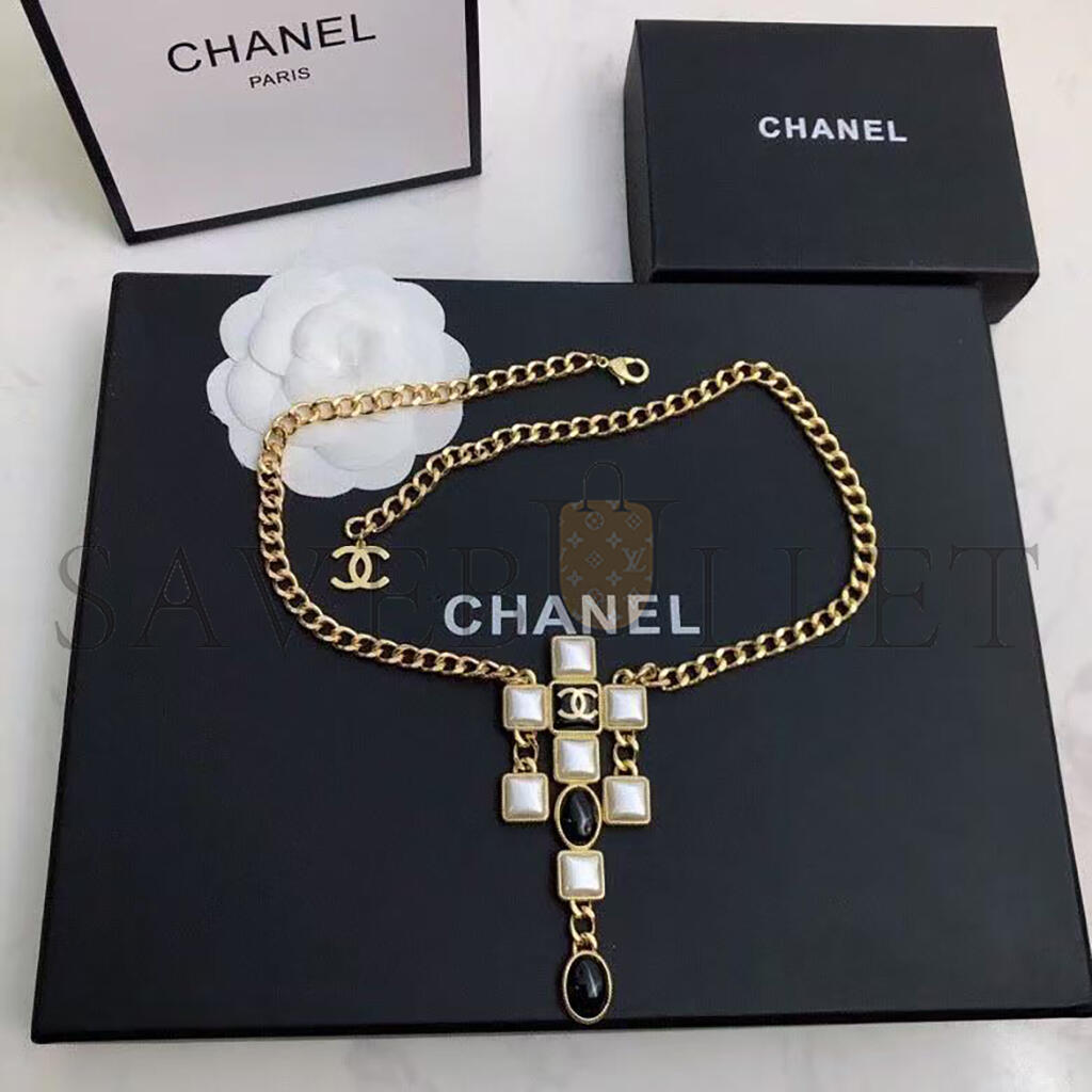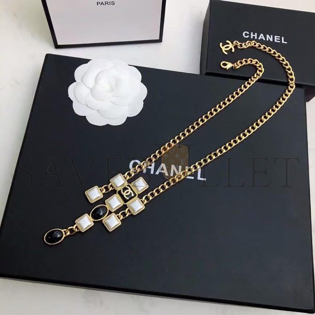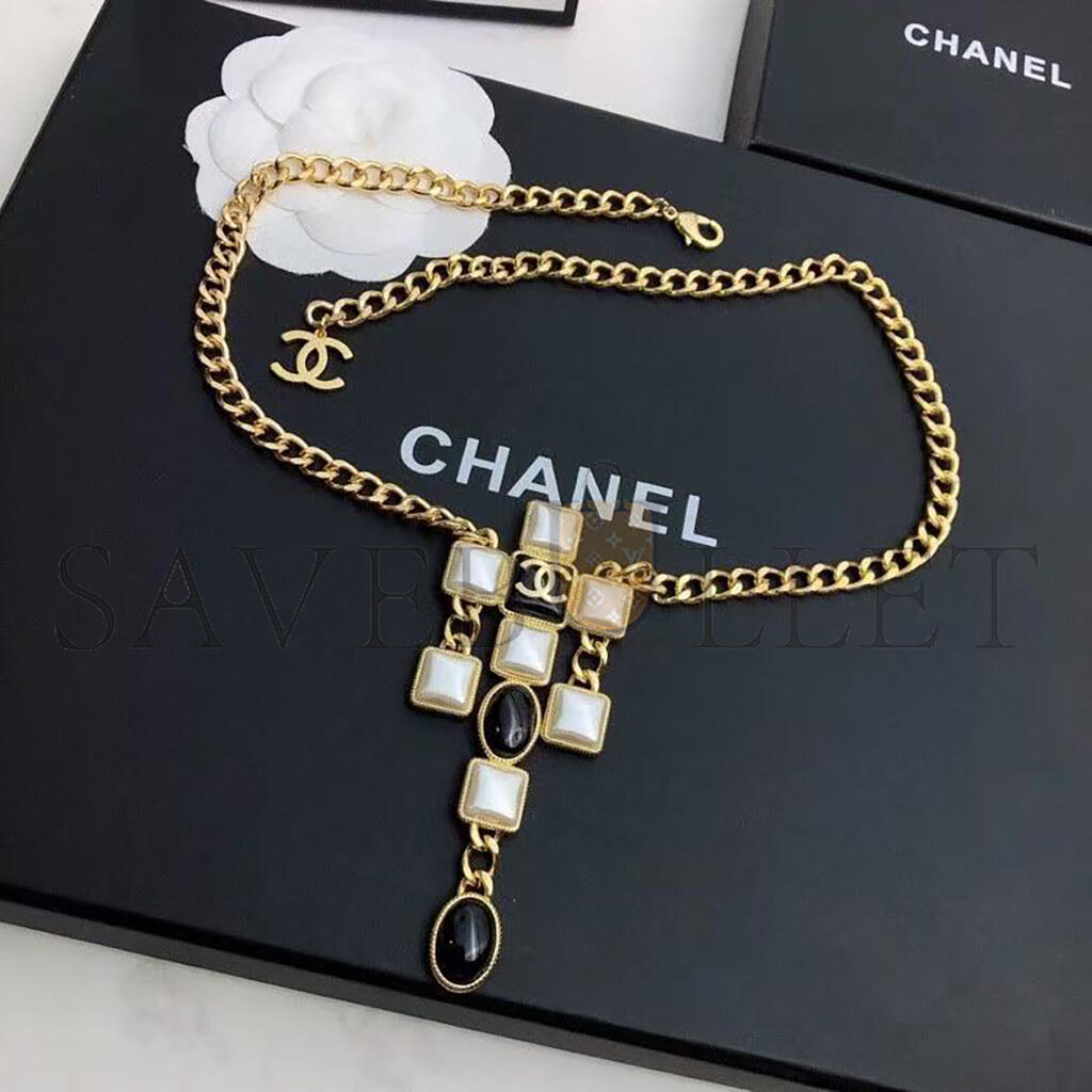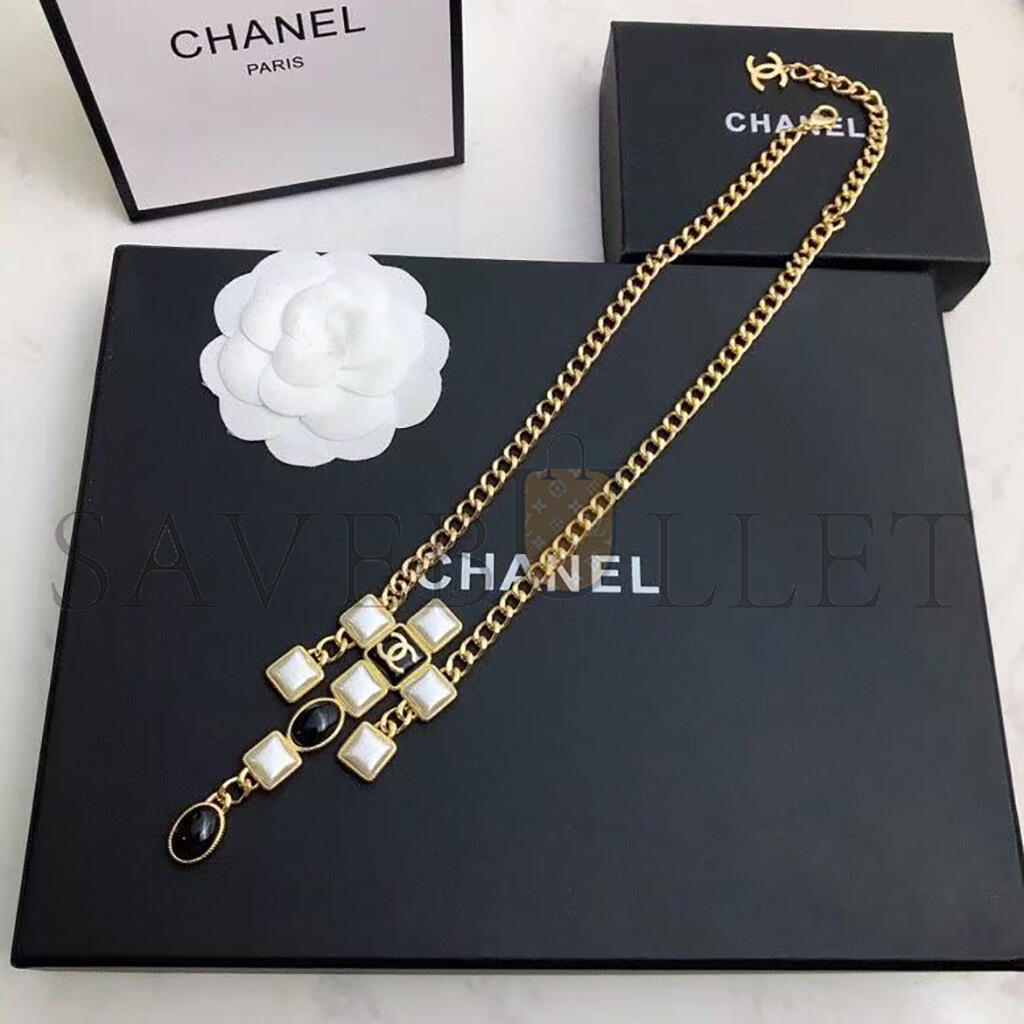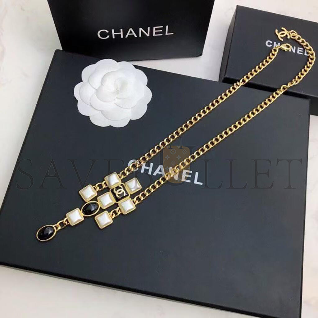 CHANEL NECKLACE WITH BLACK AND WHITE SQUARE AND OVAL ELEMENTS