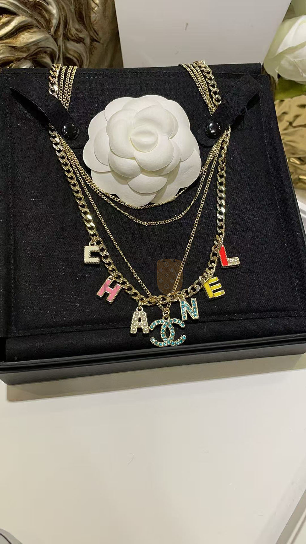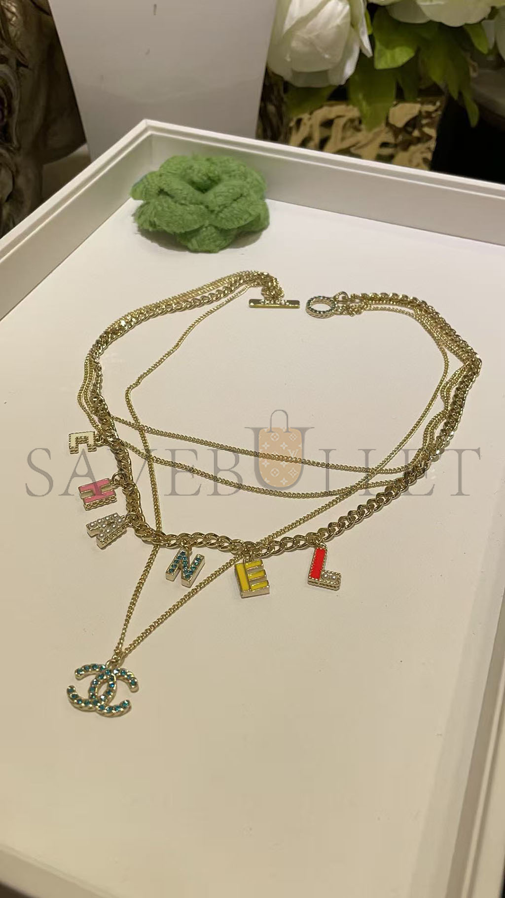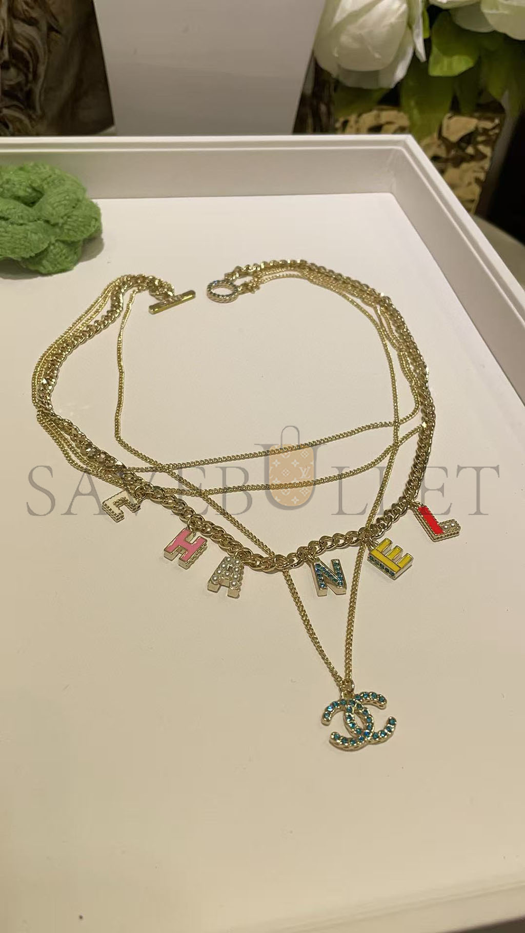 CHANEL COLORED LETTERING NECKLACE