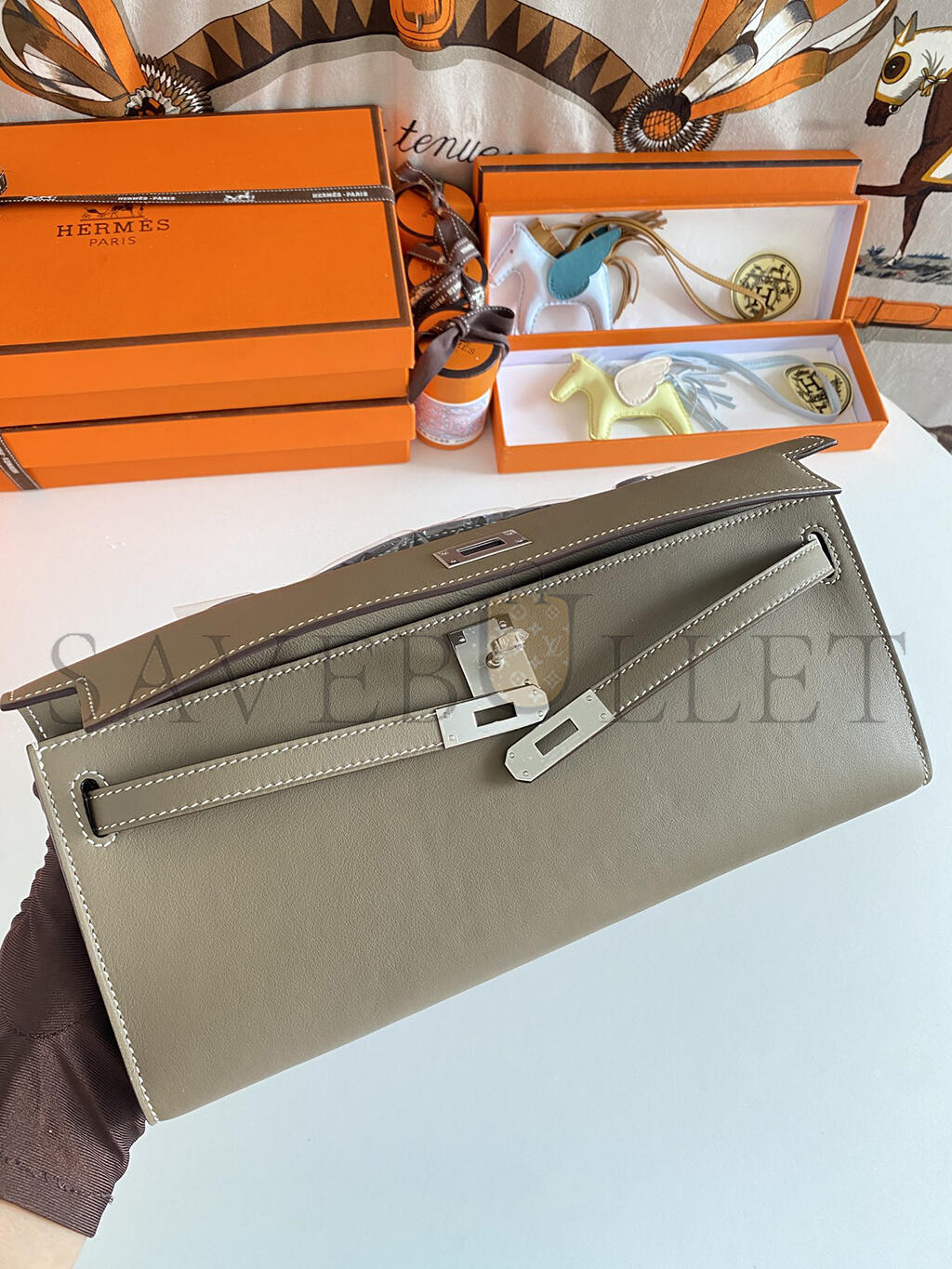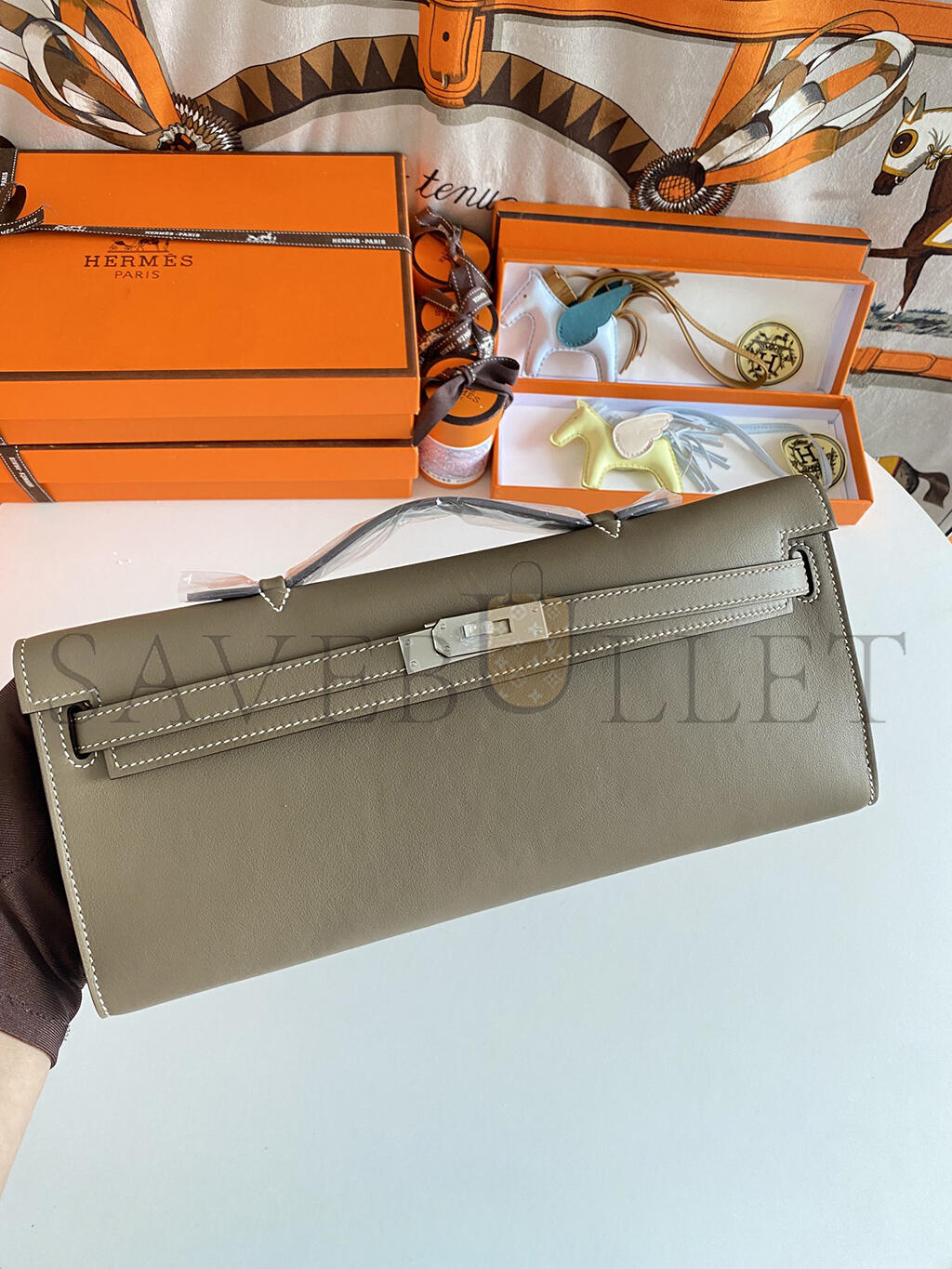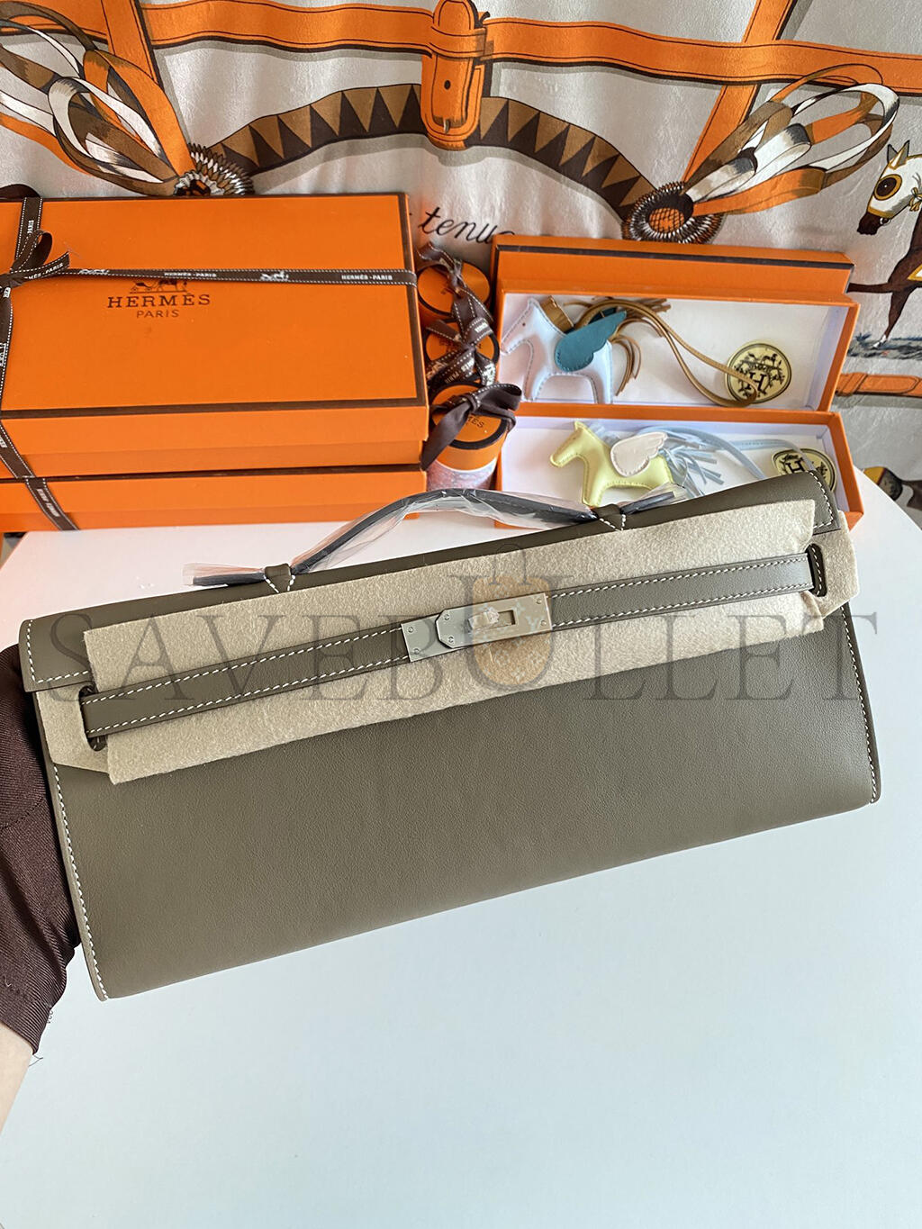HERMÈS KELLY CUT CLUTCH POCHETTE ETOUPE PALLADIUM SWIFT HARDWARE 371504 (31*12*2cm)