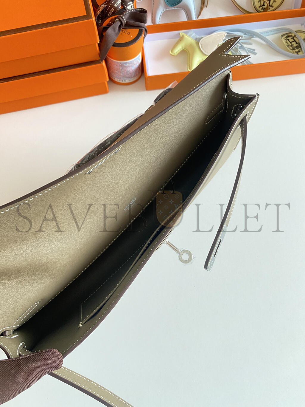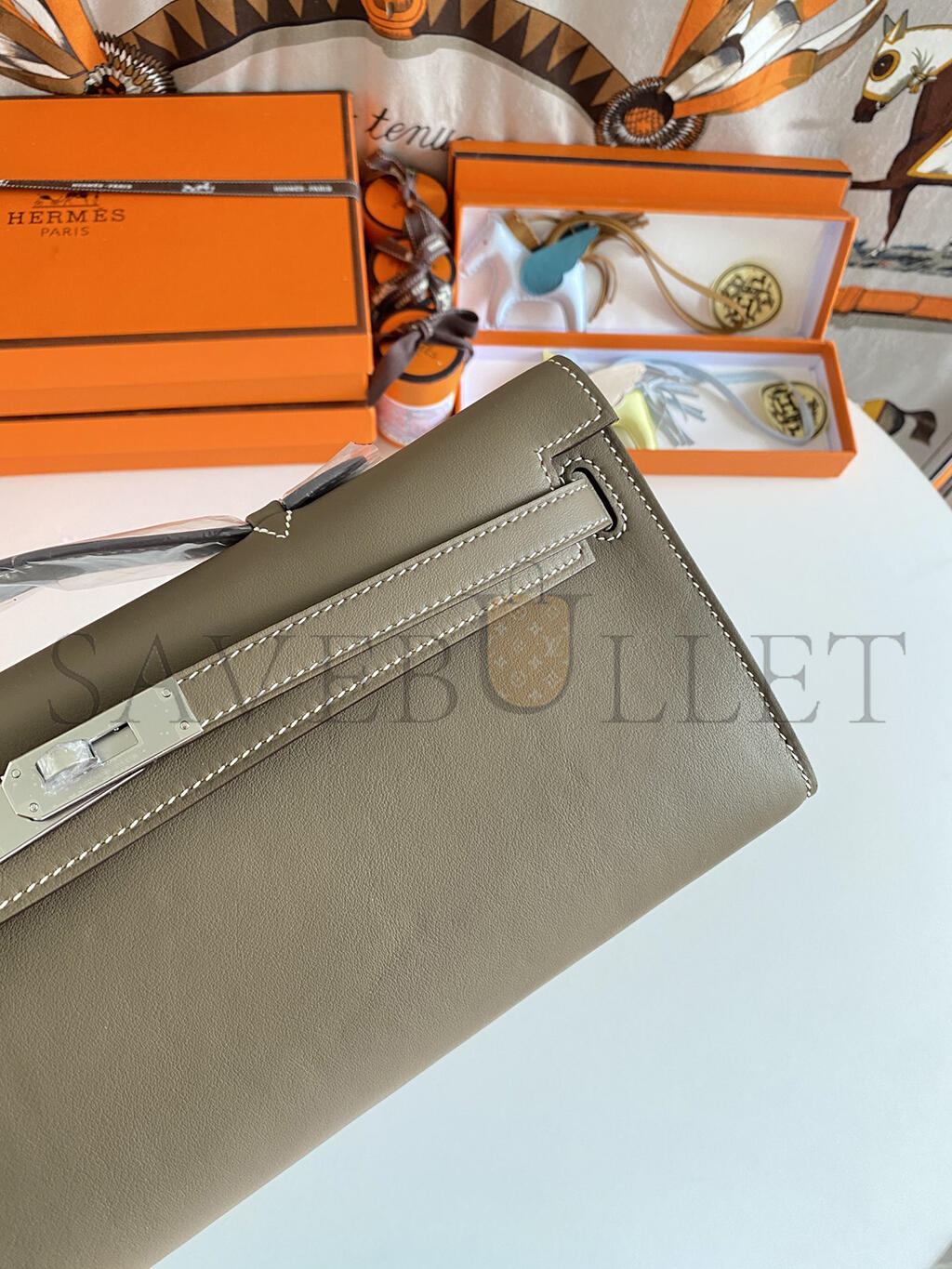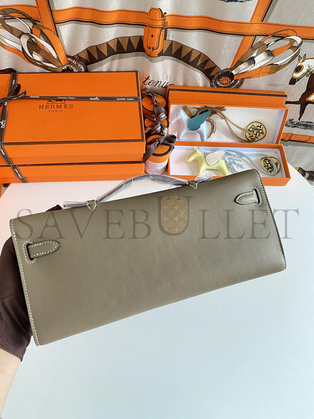 HERMÈS KELLY CUT CLUTCH POCHETTE ETOUPE PALLADIUM SWIFT HARDWARE 371504 (31*12*2cm)