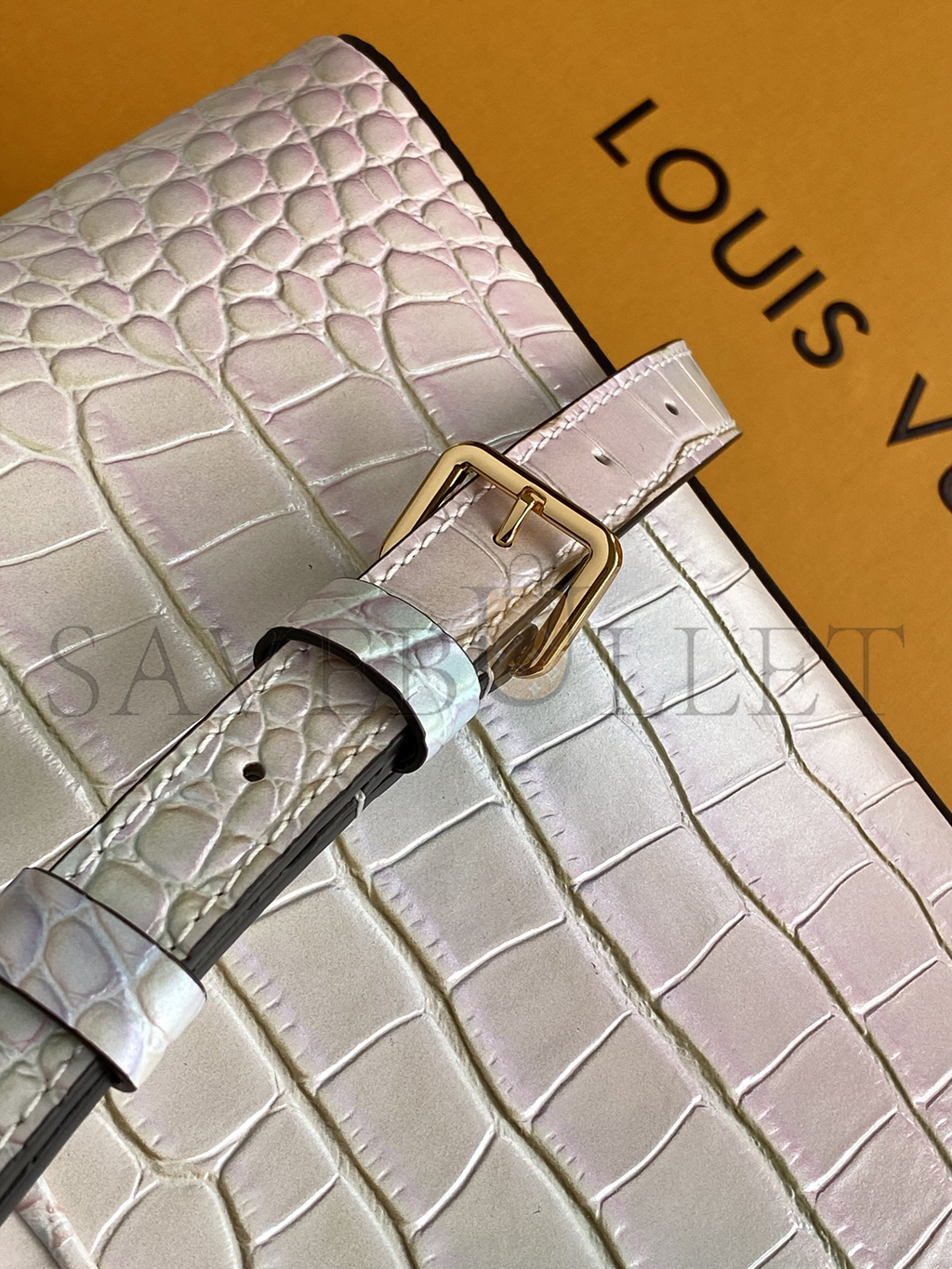 8.3 x 5.5 x 3.1 inches(length x Height x Width)Marshmallow PinkTaurillon leatherTaurillon-leather trimSmooth cowhide-leather liningEnamel, golden-colo..