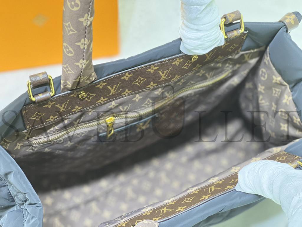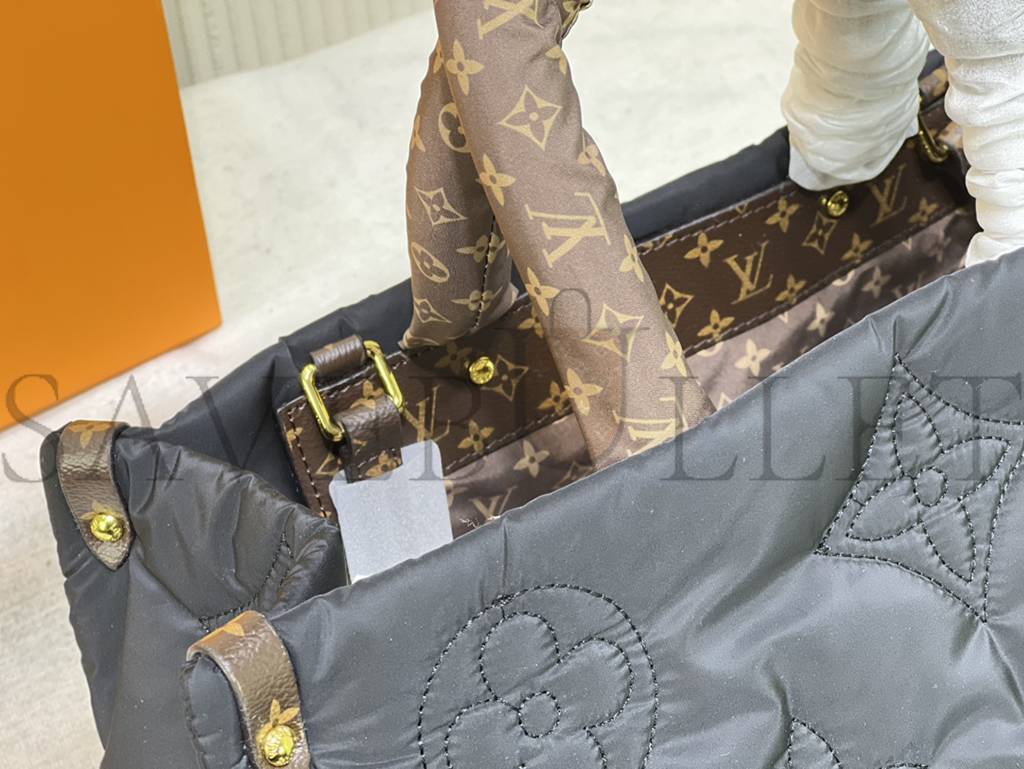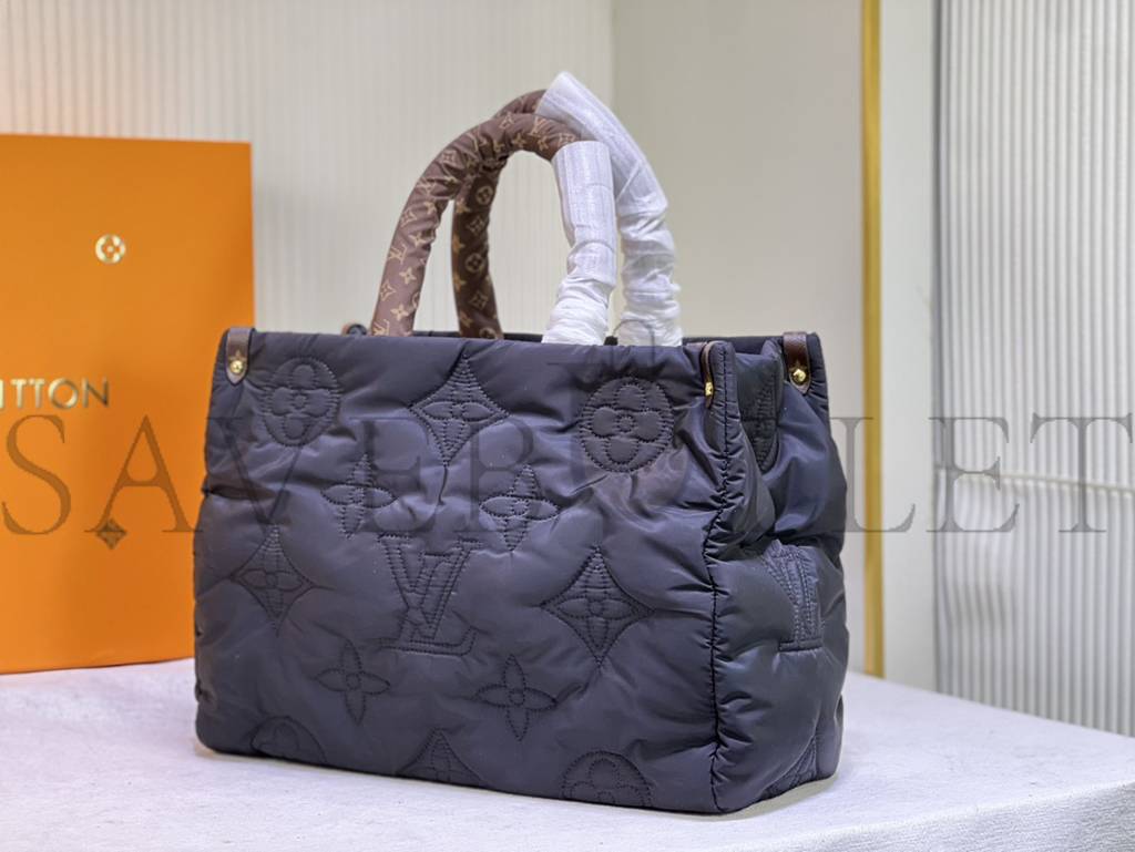 From the LV Pillow capsule collection for the 2022 winter season comes this OnTheGo MM tote. The bag’s eco-design integrates recycled and sustainable materials: the body is fashioned from recycled padded nylon, embroidered with Monogram motifs. Playful puffy top handles and long shoulder straps make this trendy carryall easy to style and wear.