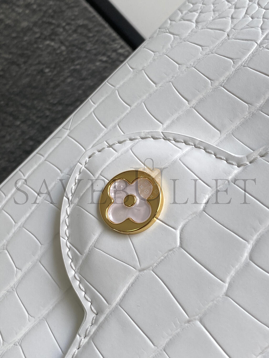 Light-gold color hardware with Mother of pearl on LV and Flower Crown