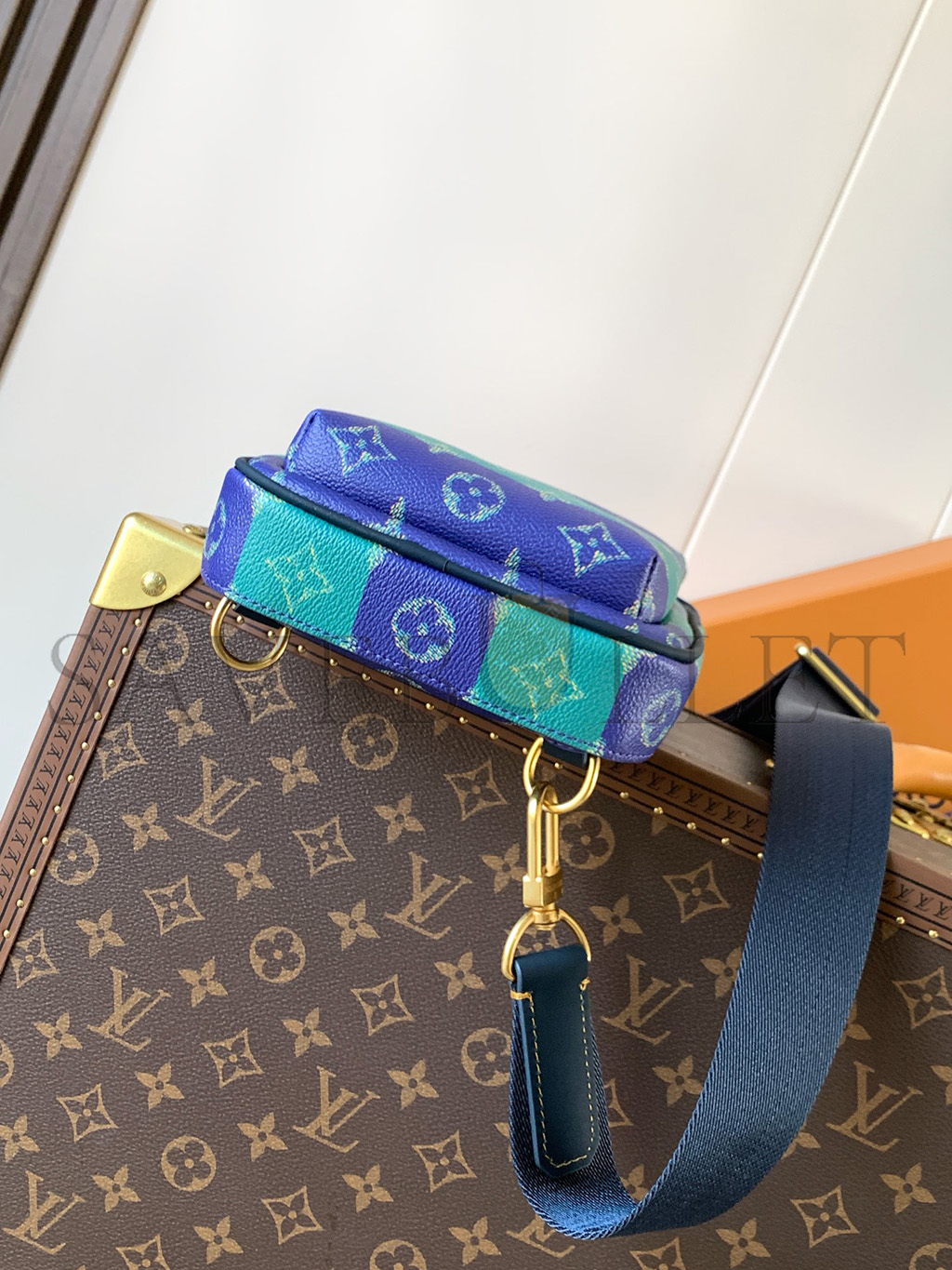 10.6 x 8.3 x 2.4 inches(Length x Height x Width)Gaston BlueMonogram Macassar coated canvasCowhide-leather trimTextile liningSilver-toned hardwareZippe..