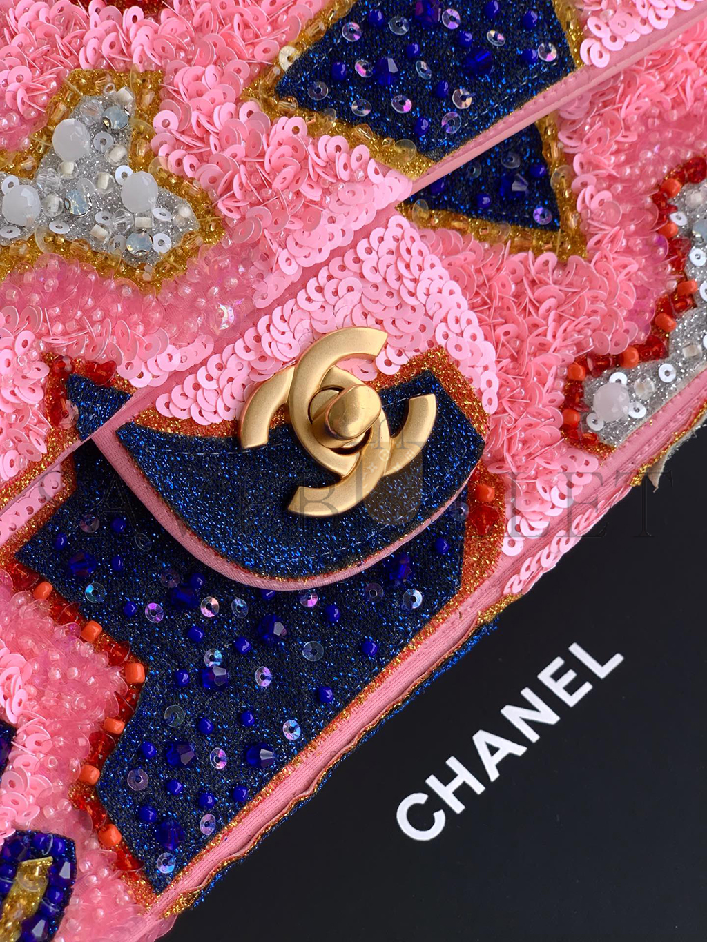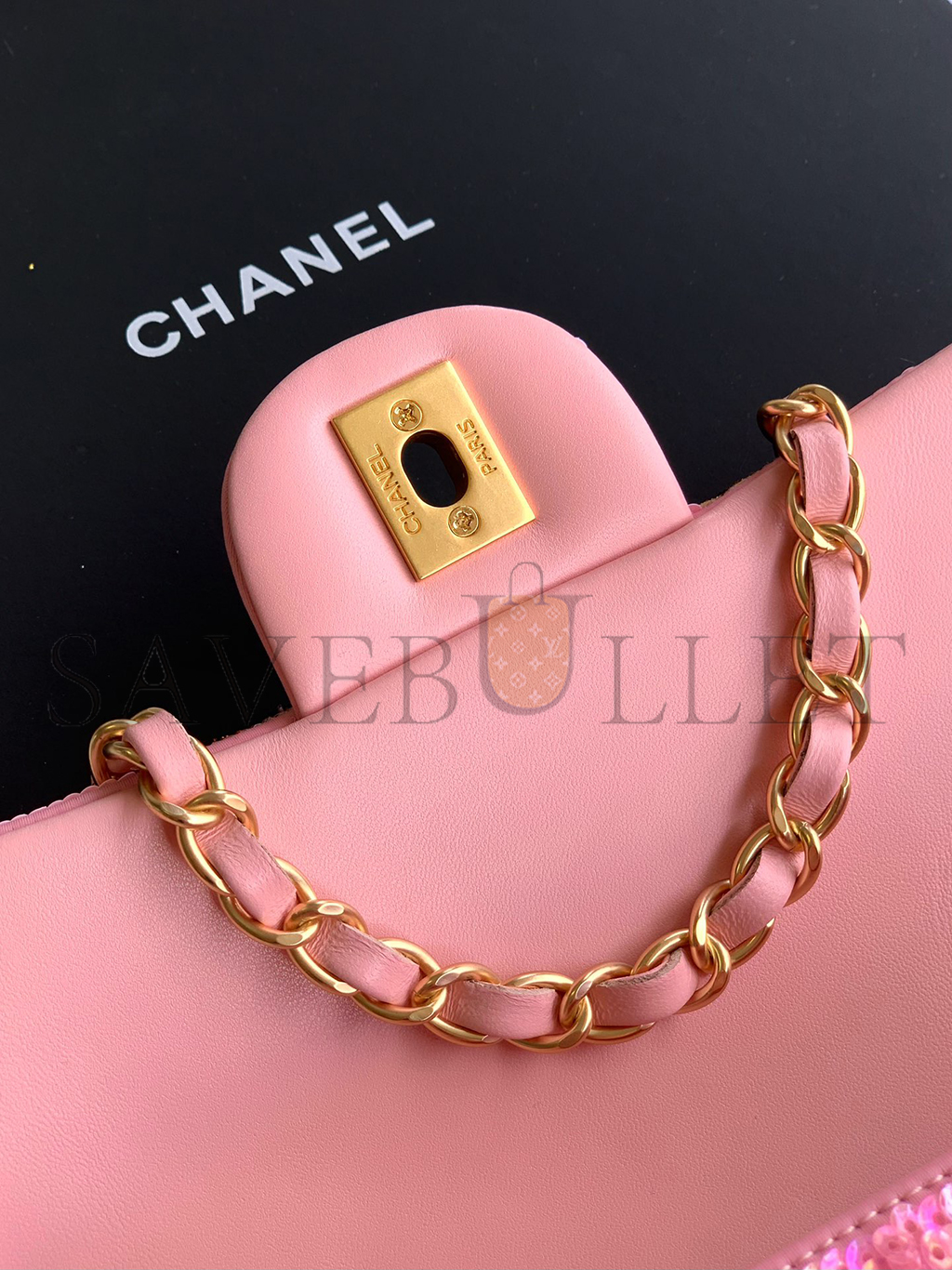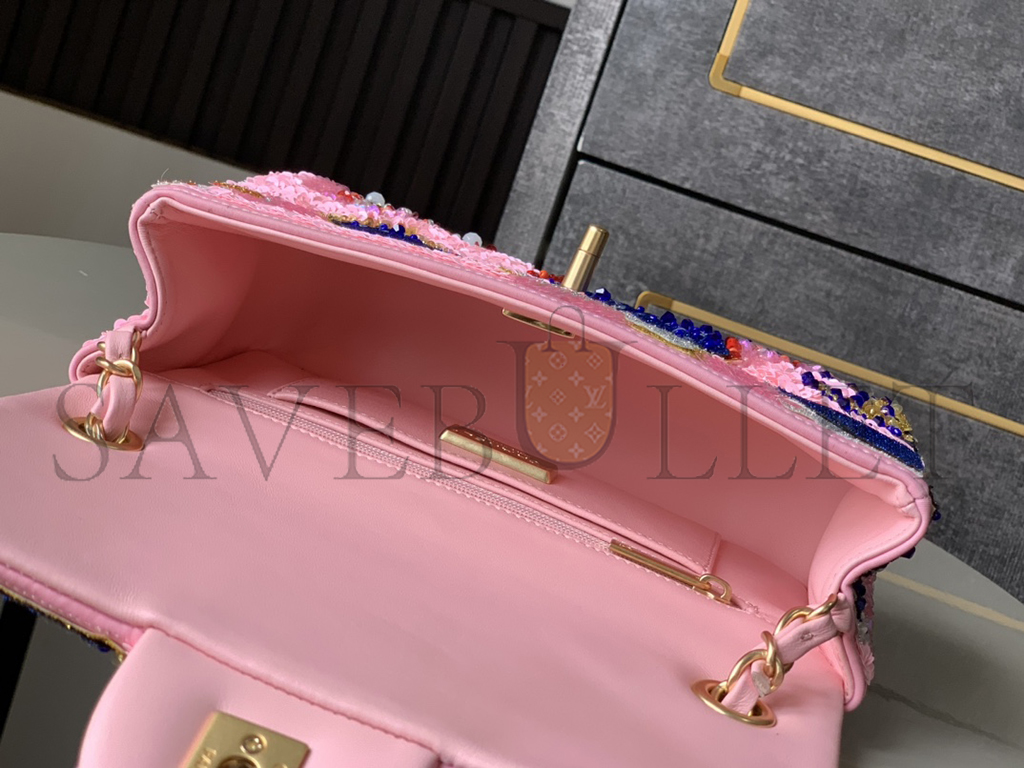 CHANEL 25P CLASSIC FLAP SEQUINS & GOLD-TONE METAL PINK (20*12*6cm)