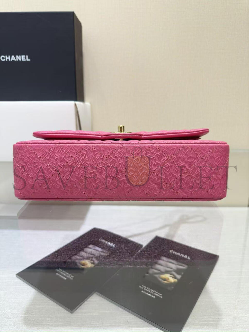 CHANEL 19C BARBIE PINK CAVIAR MEDIUM CLASSIC DOUBLE FLAP BAG (25.5*16*7.5cm)