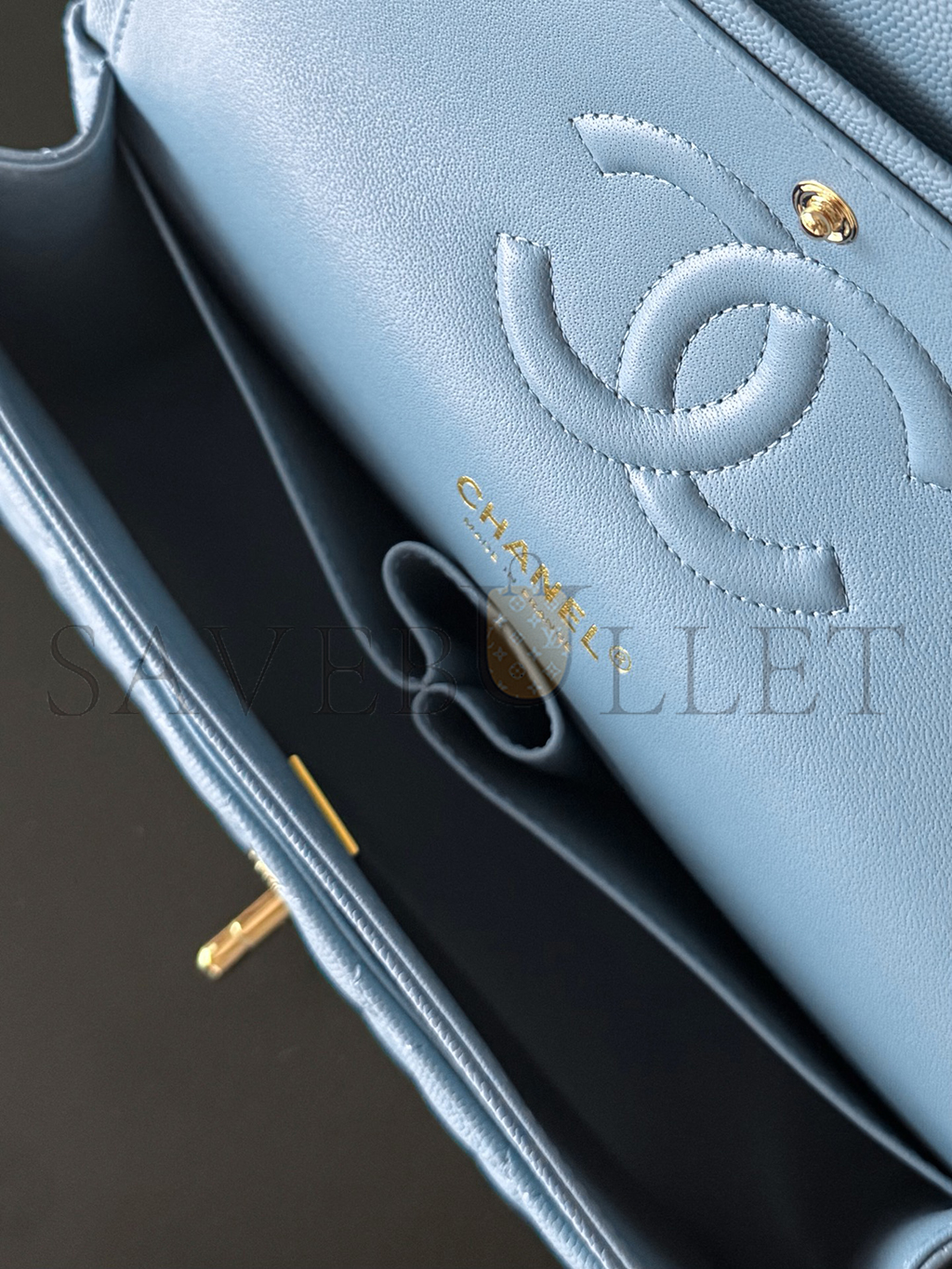 CHANEL MEDIUM CLASSIC DOUBLE FLAP BLUE CAVIAR GOLD HARDWARE A01112 (25.5*15.5*6.5cm)