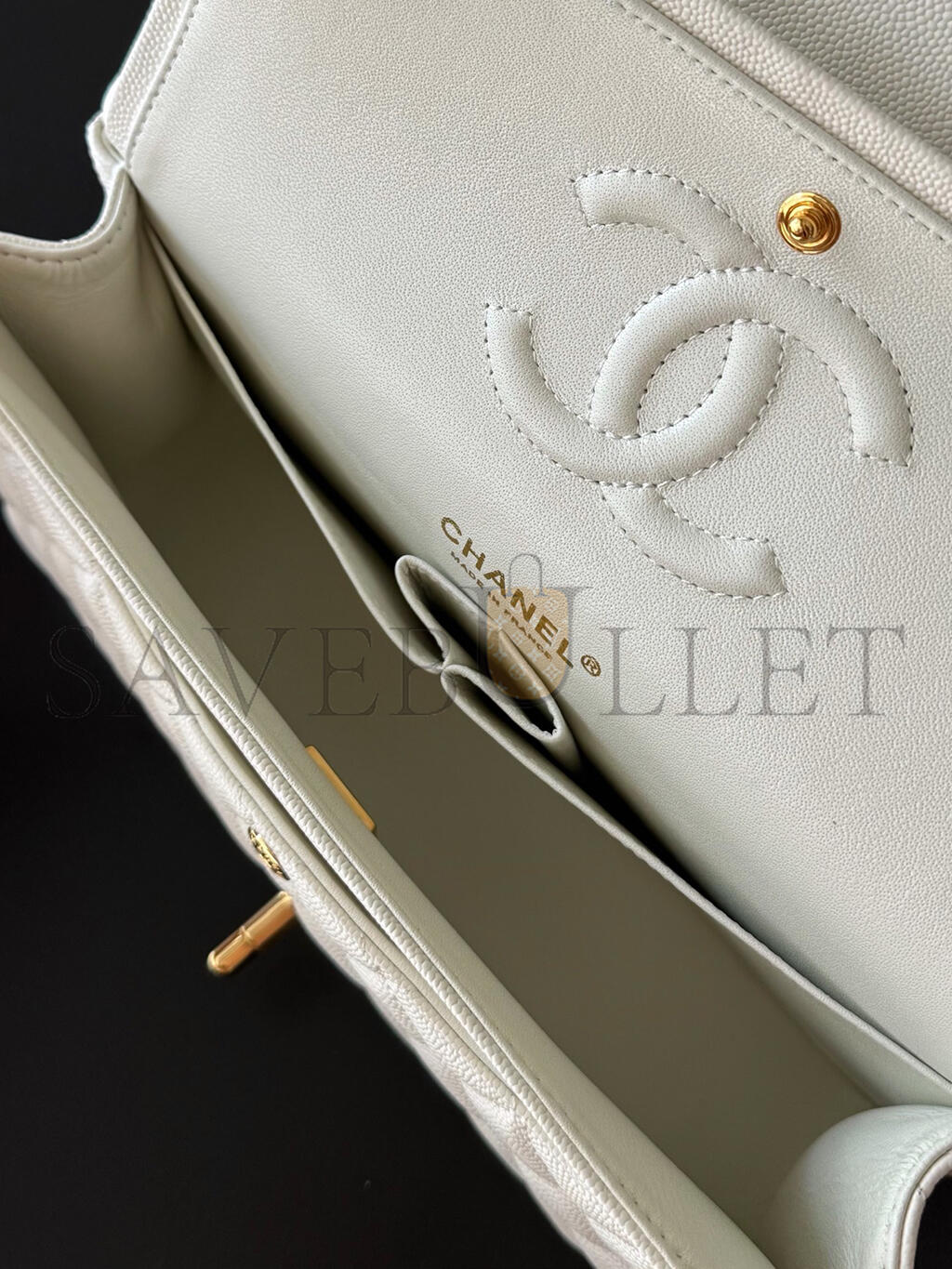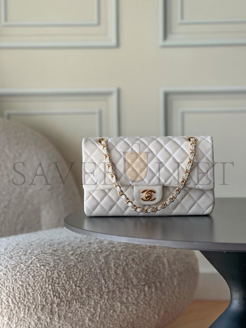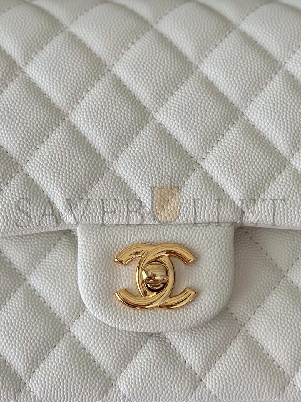 CHANEL WHITE CAVIAR MEDIUM CLASSIC DOUBLE FLAP BAG A01112 (25.5*15.5*6.5cm)
