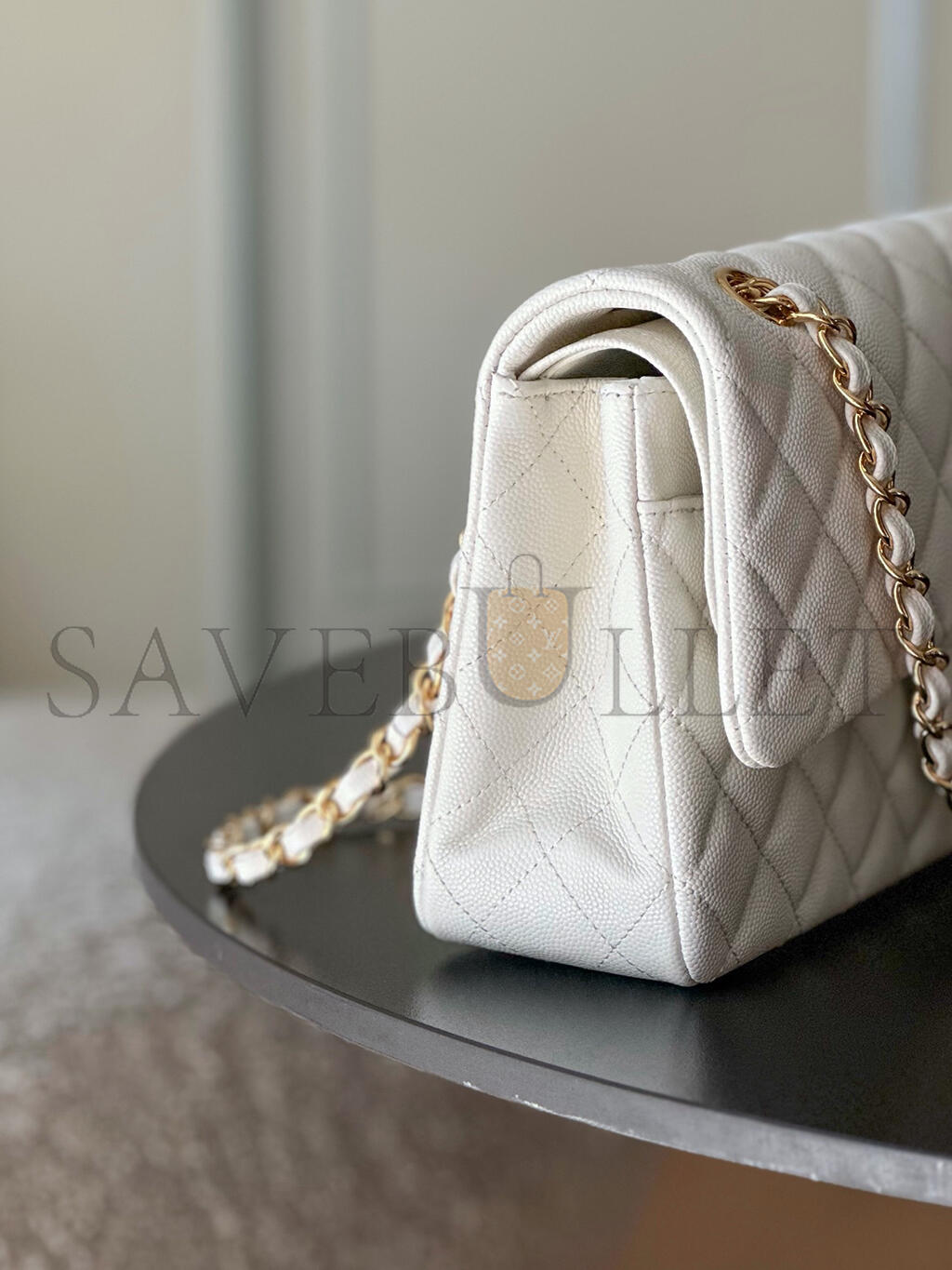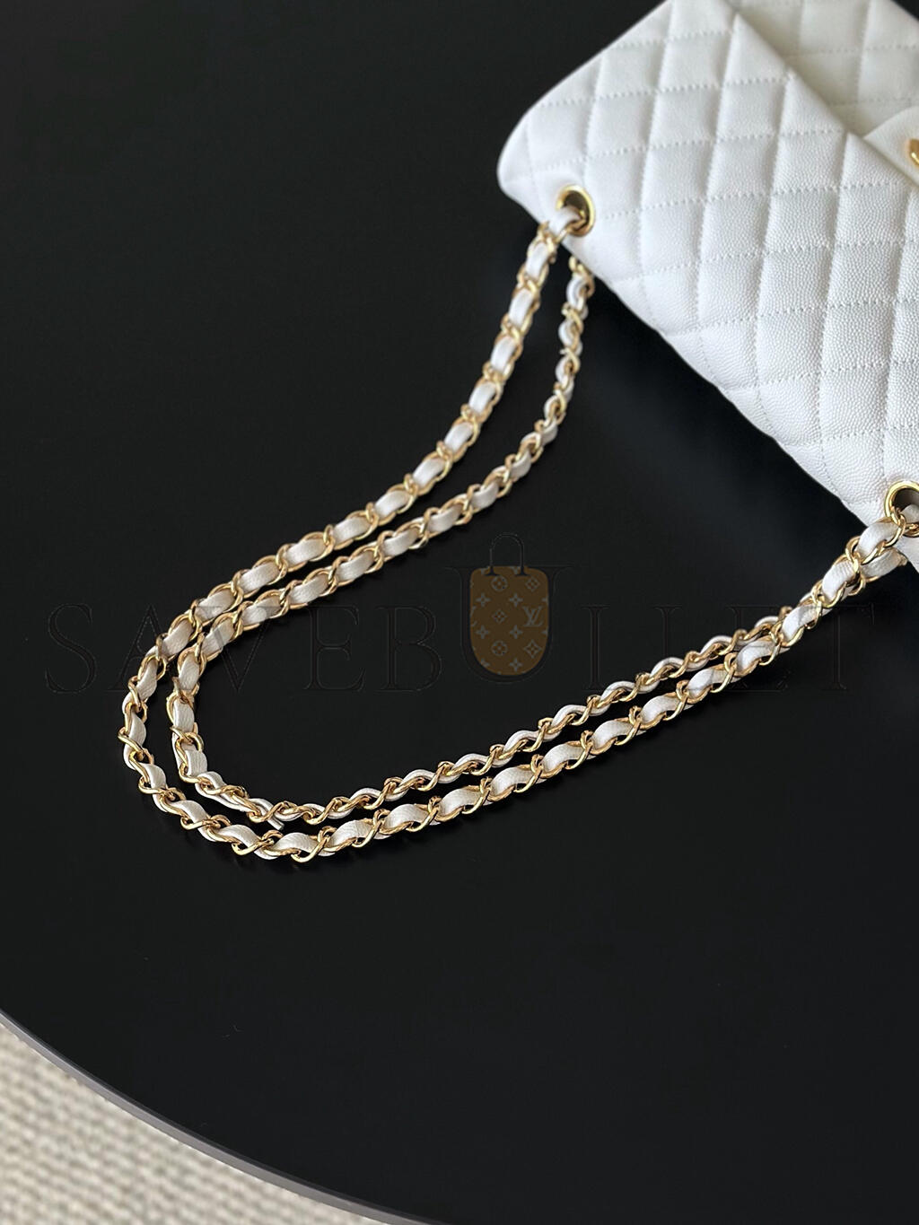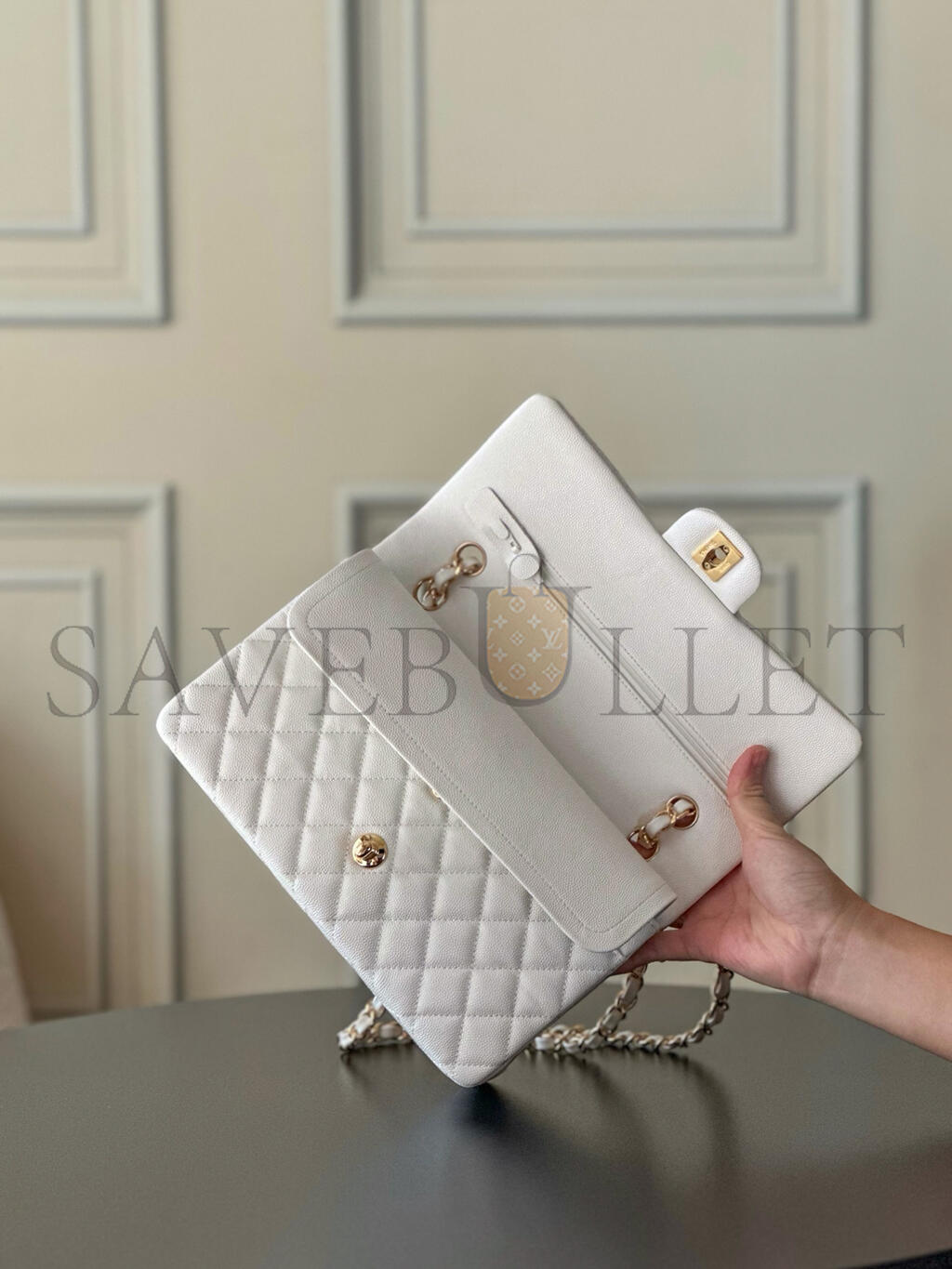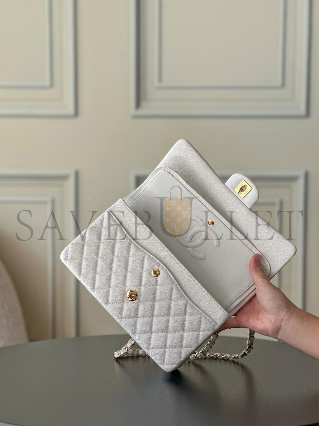 CHANEL WHITE CAVIAR MEDIUM CLASSIC DOUBLE FLAP BAG A01112 (25.5*15.5*6.5cm)