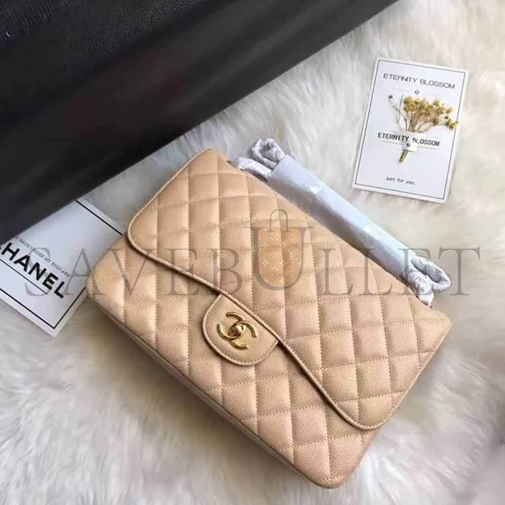 CHANEL JUMBO CLASSIC DOUBLE FLAP BAG BEIGE CAVIAR GOLD HARDWARE (30*21*9cm)